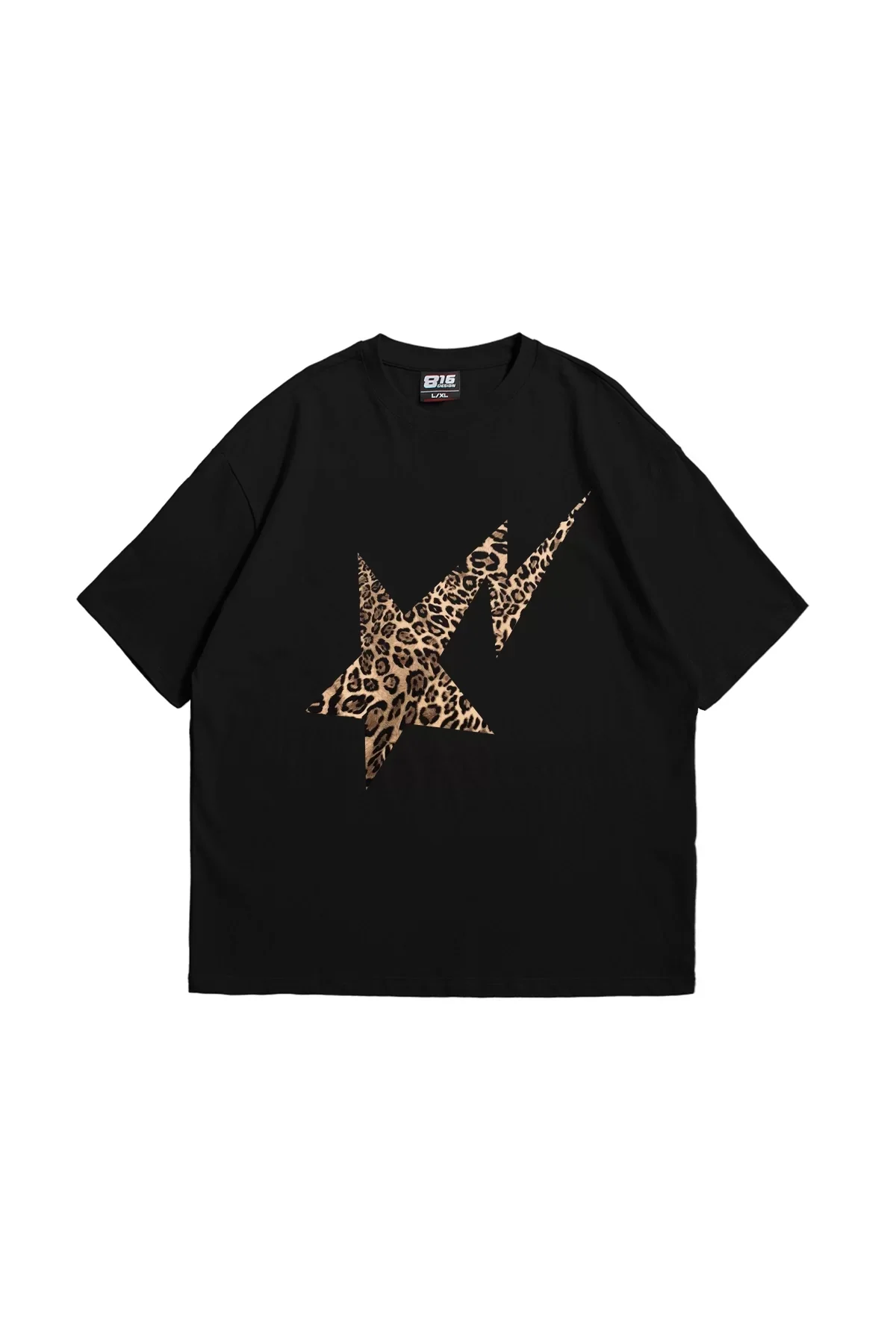 LEOPAR FALLİNG STAR OVERSİZE UNİSEX SİYAH TSHİRT