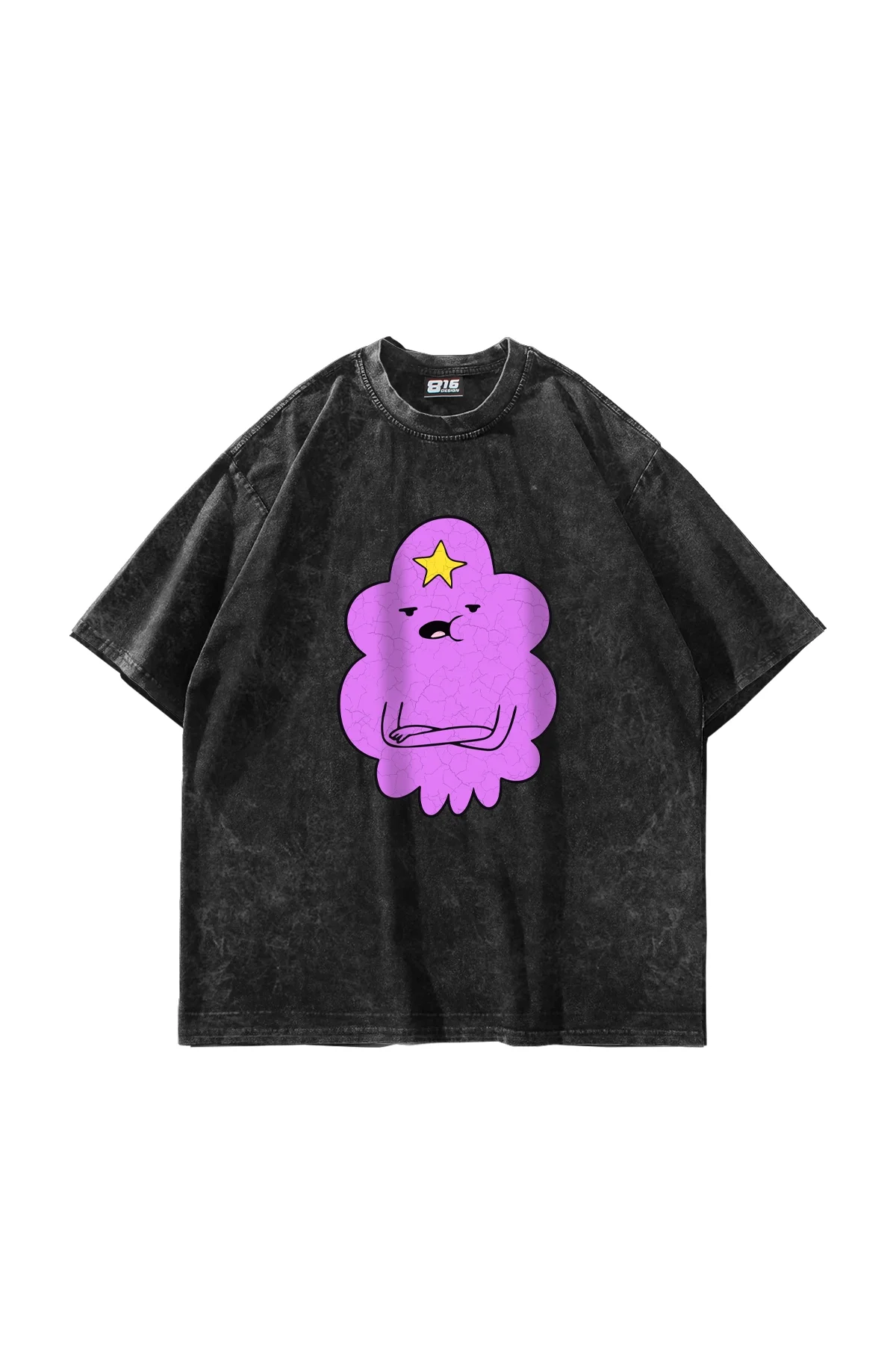LUMPY SPACE PRİNCESS BASKILI OVERSİZE UNİSEX YIKAMALI SİYAH TSHİRT