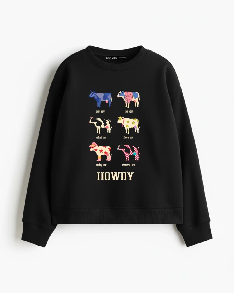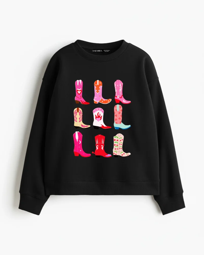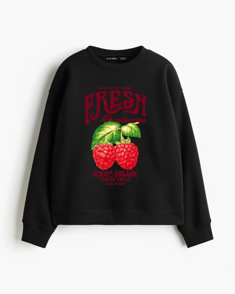Mango Tropical Delight Baskılı Kapüşonsuz Relaxed Fit Kadın Siyah Sweatshirt