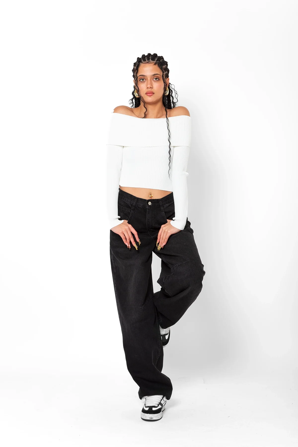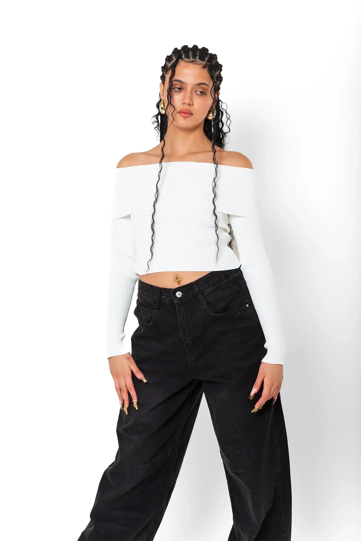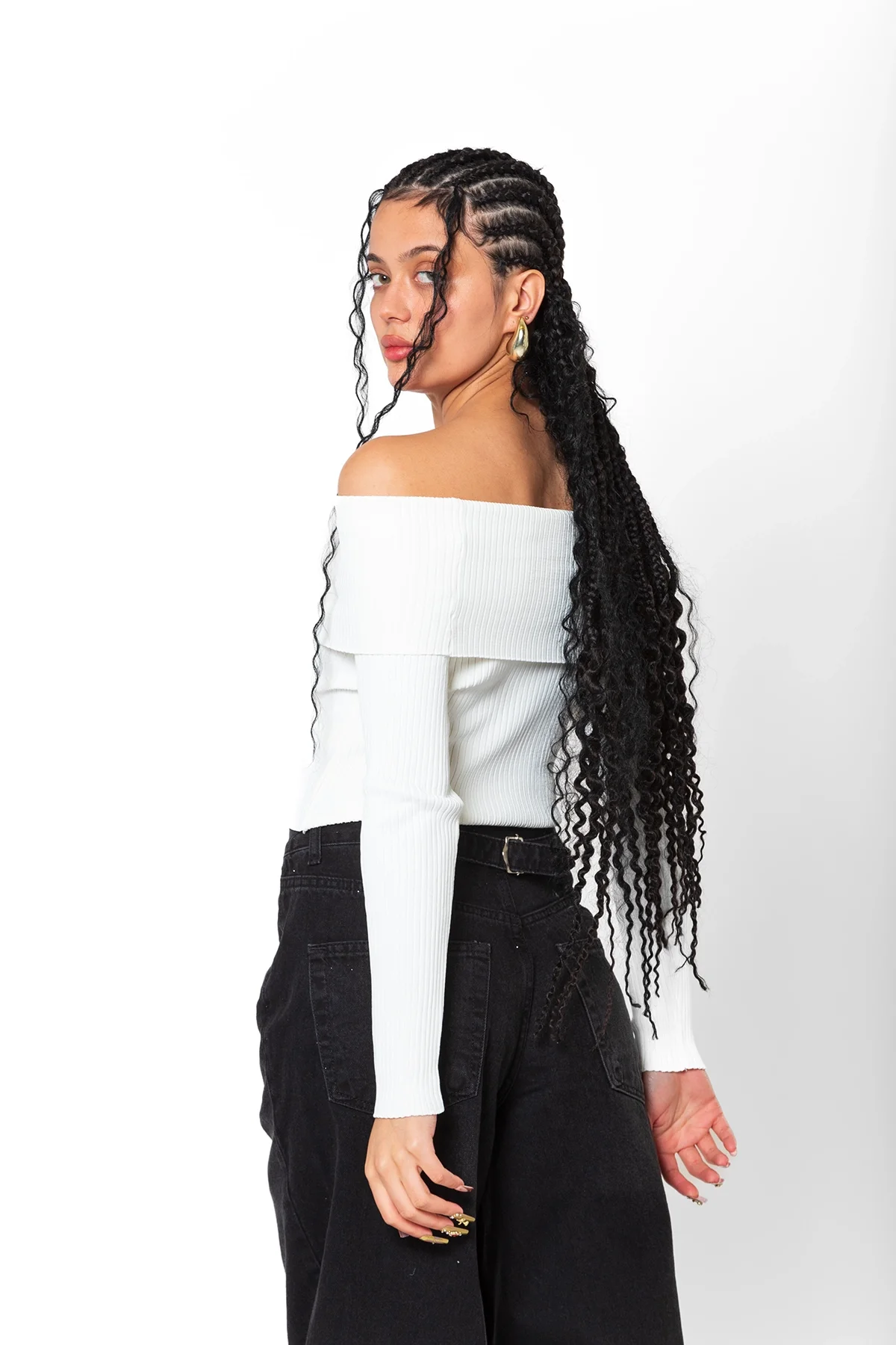 OMUZ KATLAMALI MADONNA YAKA TRİKO BEYAZ BODY