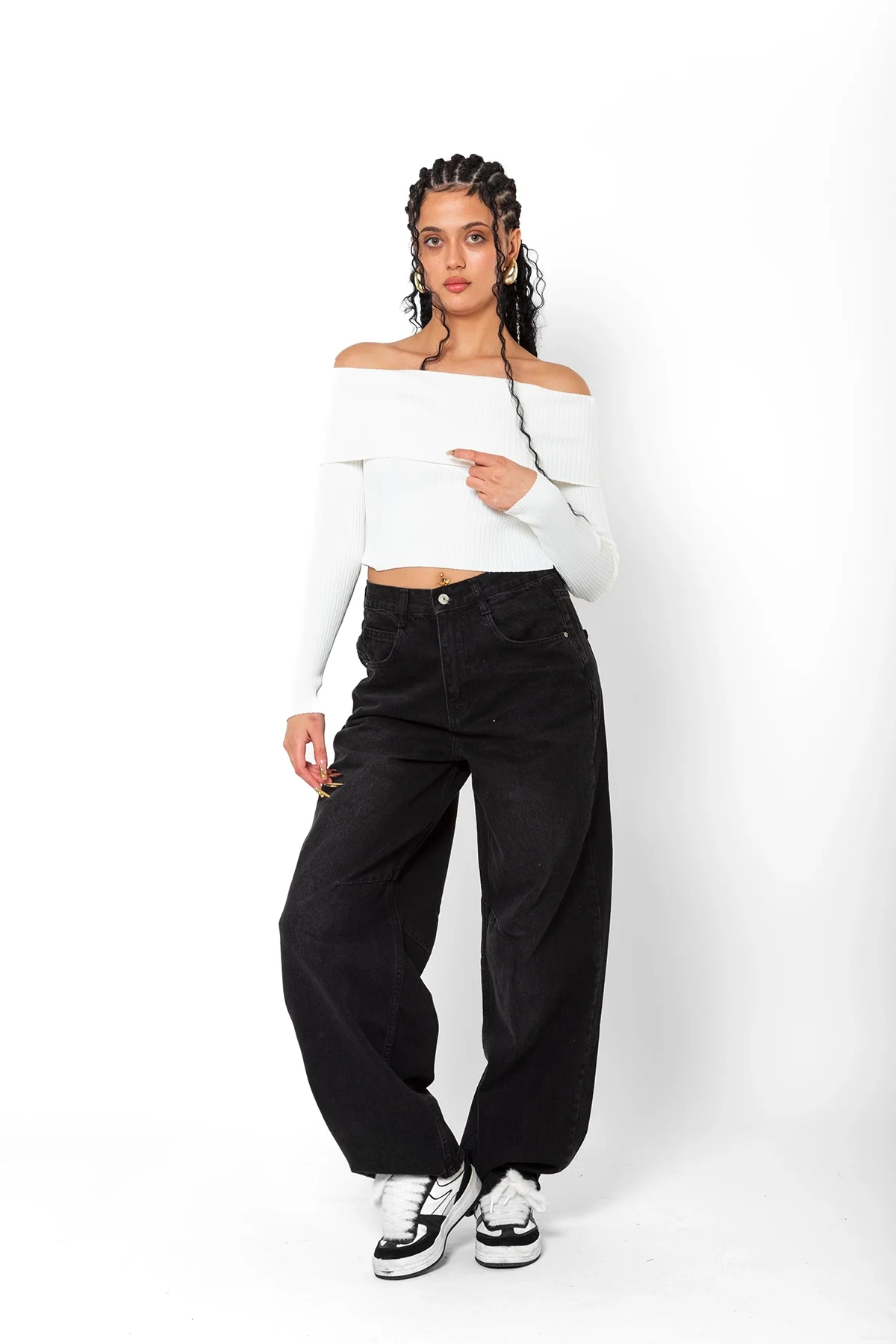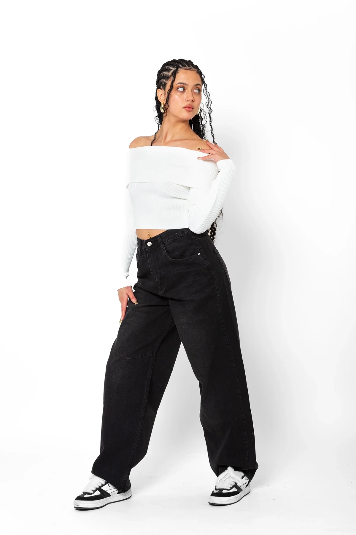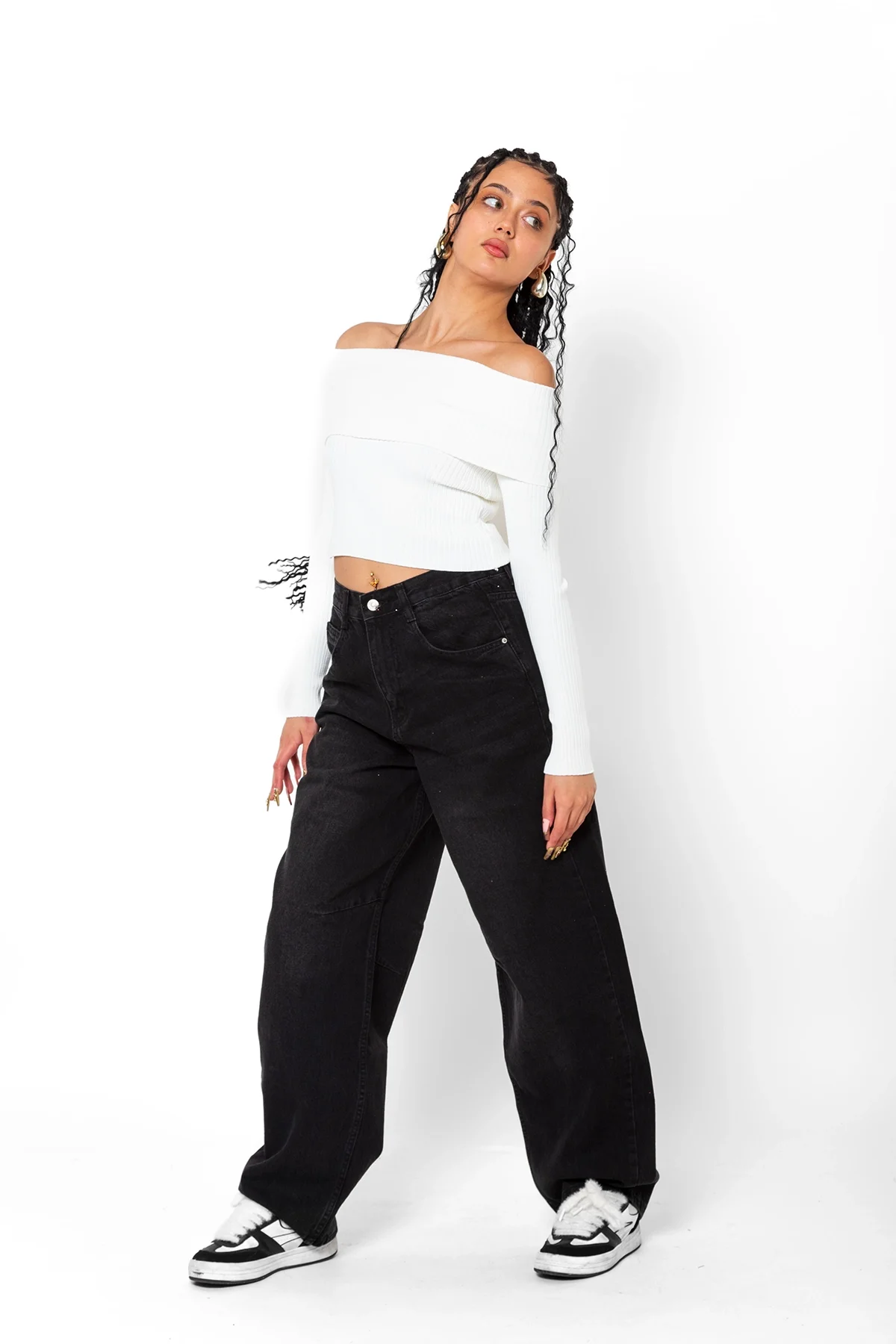 OMUZ KATLAMALI MADONNA YAKA TRİKO BEYAZ BODY