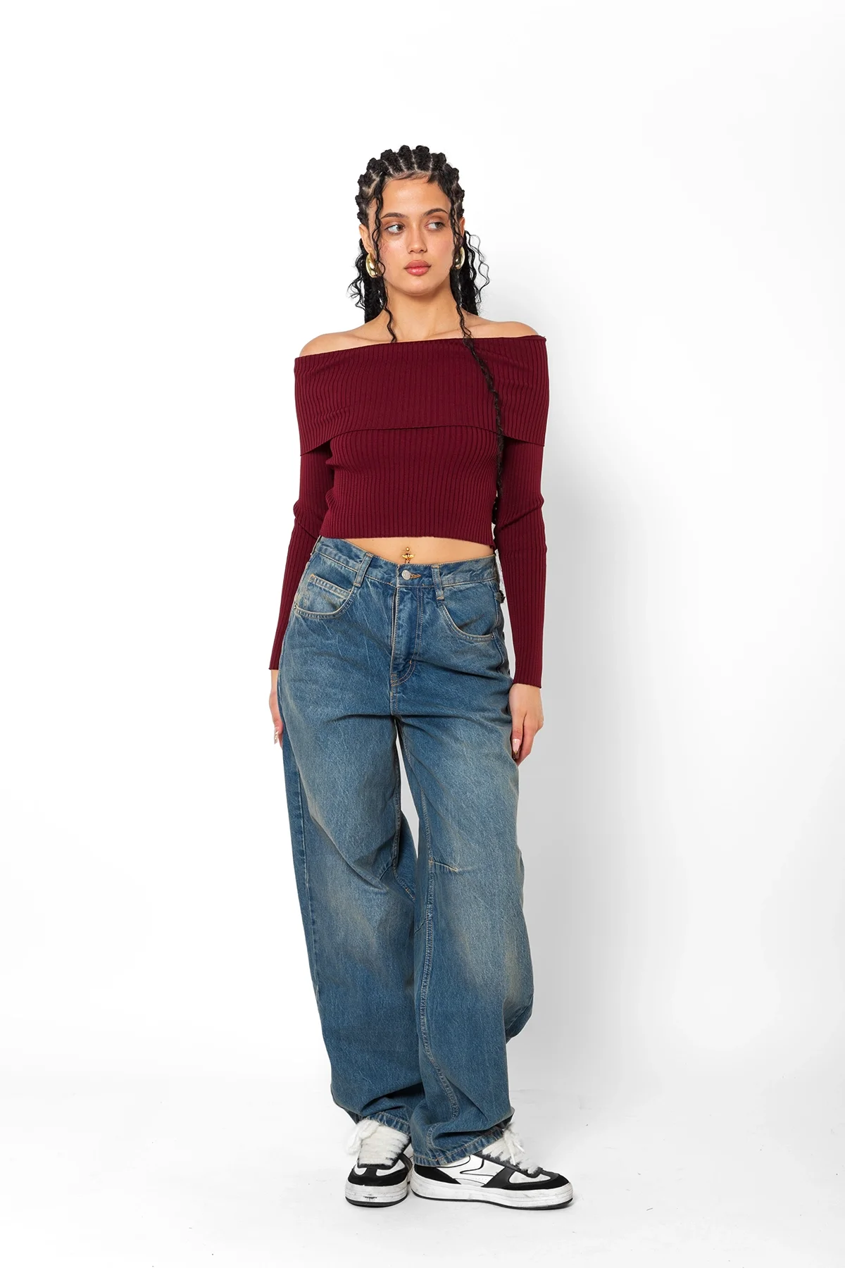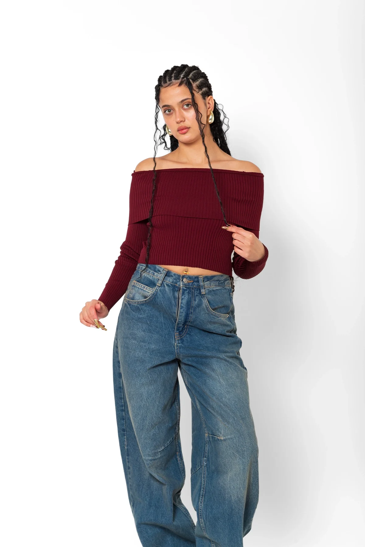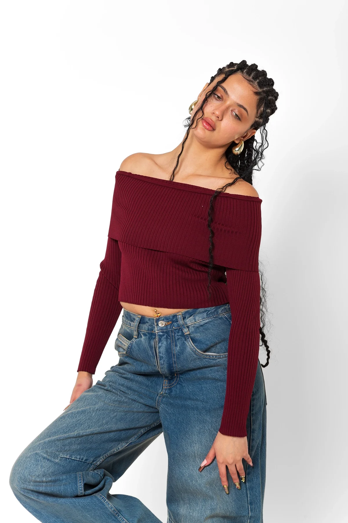 OMUZ KATLAMALI MADONNA YAKA TRİKO BORDO BODY