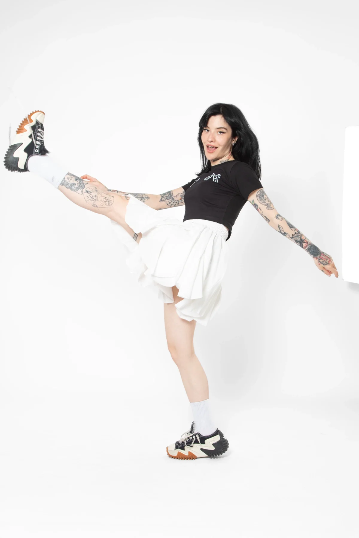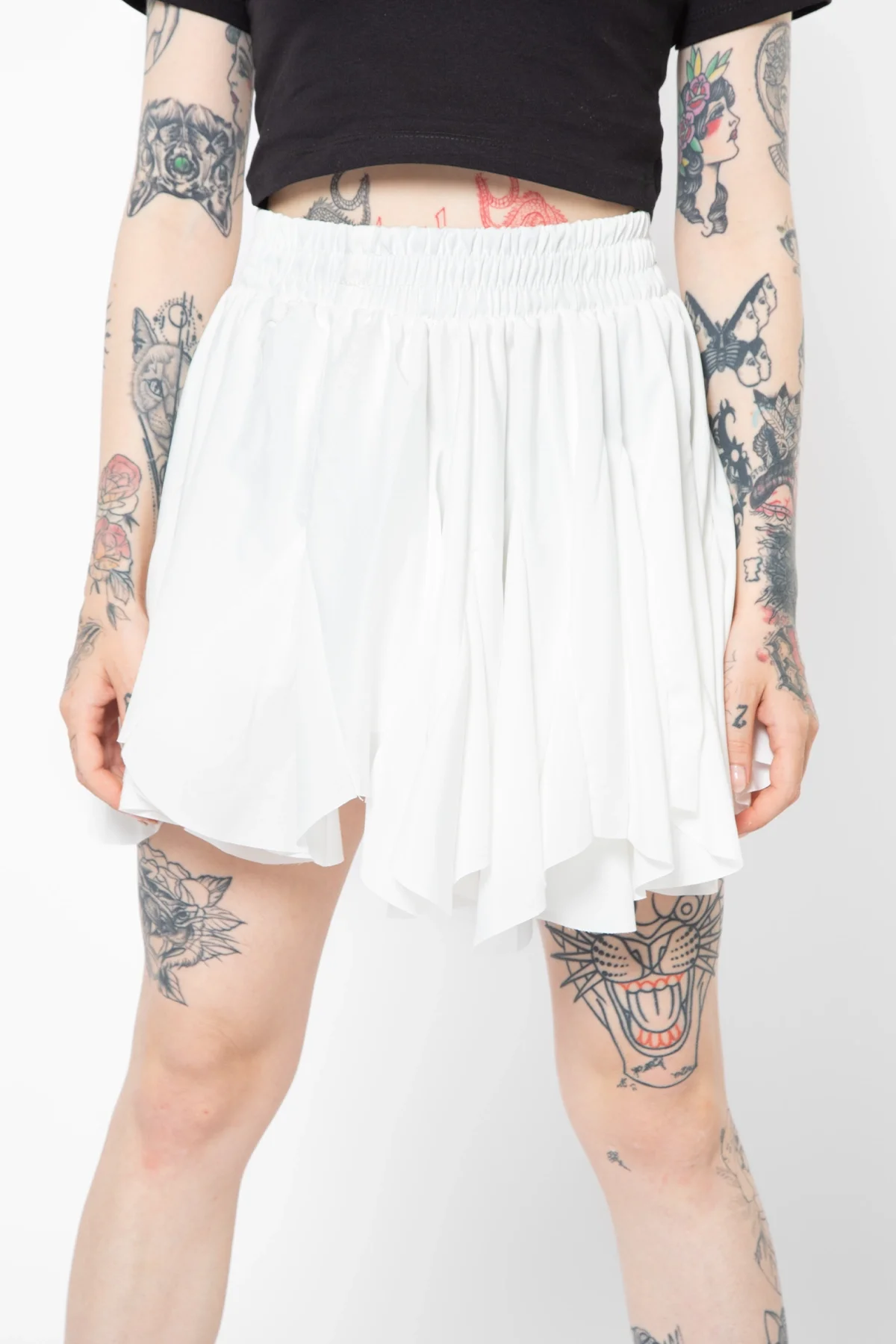 Klasik beyaz rengin asaleti, modern fırfır detaylarıyla buluşarak sade ama iddialı bir görünüm sunuyor. Hafif yapısı ve dökümlü formu sayesinde her adımda zarif bir hareket kazandıran bu etek, ister günlük stilinize şıklık katmak, ister gece kombinlerinize elegan bir dokunuş eklemek için ideal bir tercih.