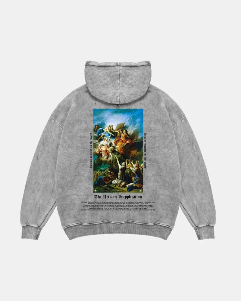 Art Is Supplication Baskılı Oversize Unisex Premium Yıkamalı Beyaz Hoodie