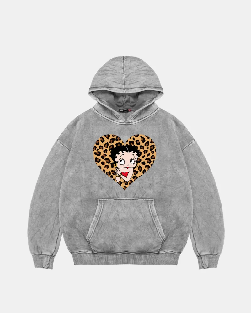 B. Boops Baskılı Oversize Unisex Premium Yıkamalı Beyaz Hoodie