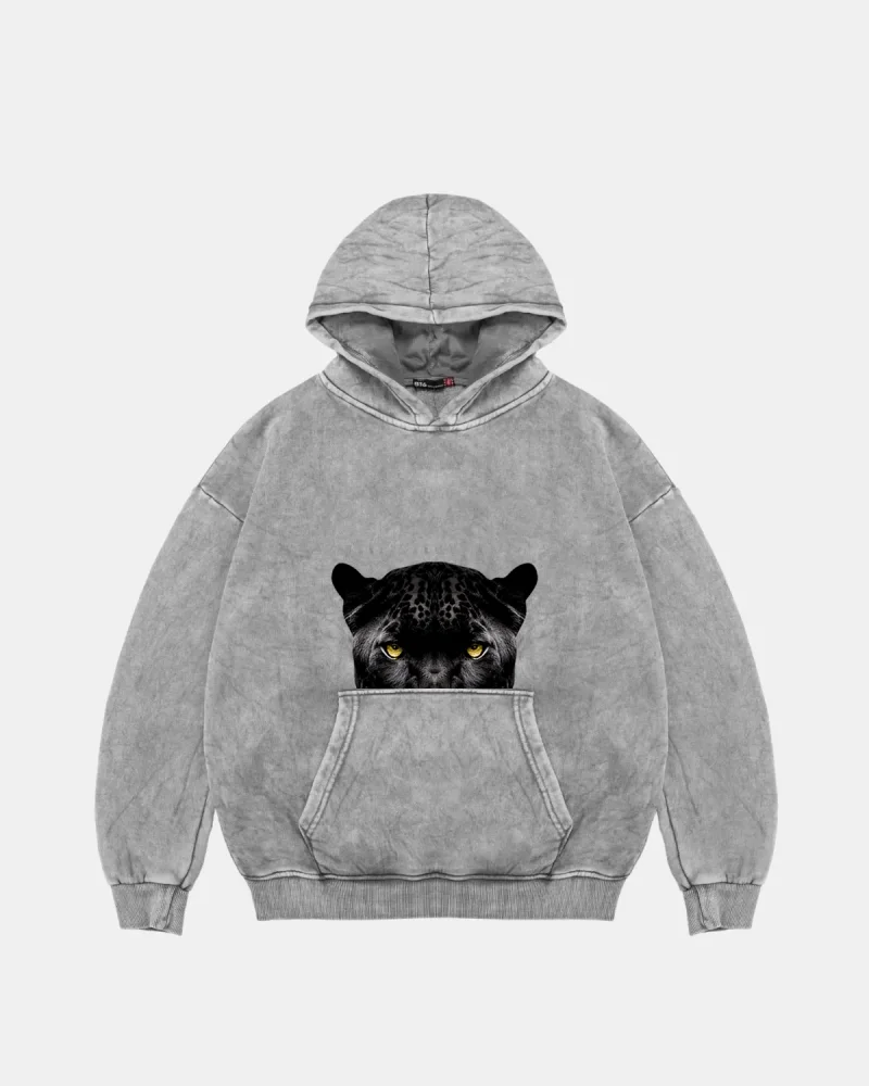 Black Panter Eyes Baskılı Oversize Unisex Premium Yıkamalı Beyaz Hoodie