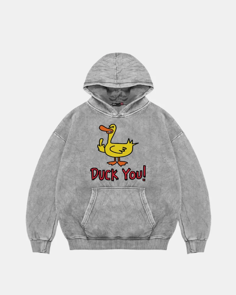 Duck You Baskılı Oversize Unisex Premium Yıkamalı Beyaz Hoodie