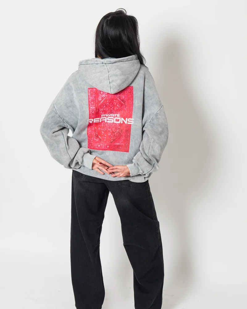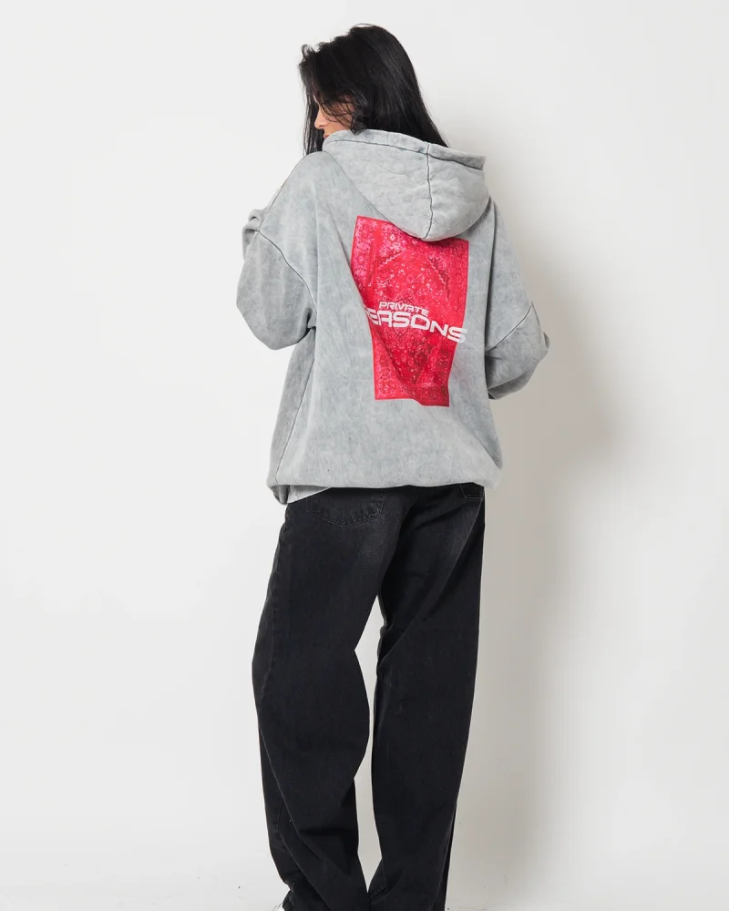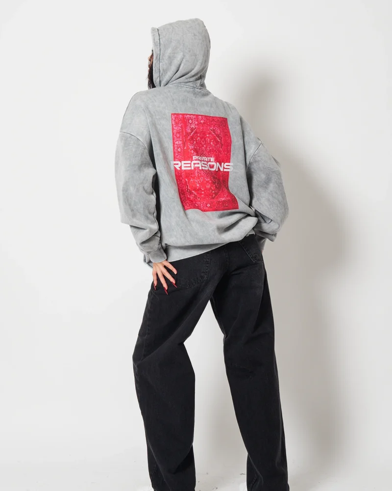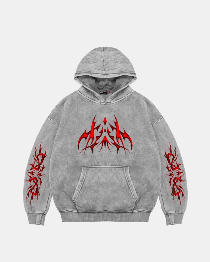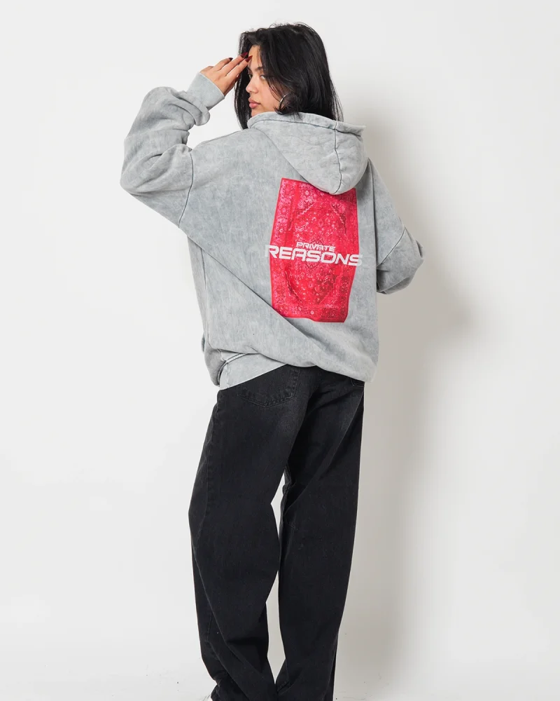 Holographic Red Baskılı Oversize Unisex Premium Yıkamalı Beyaz Hoodie