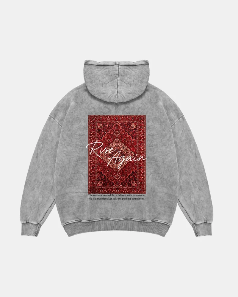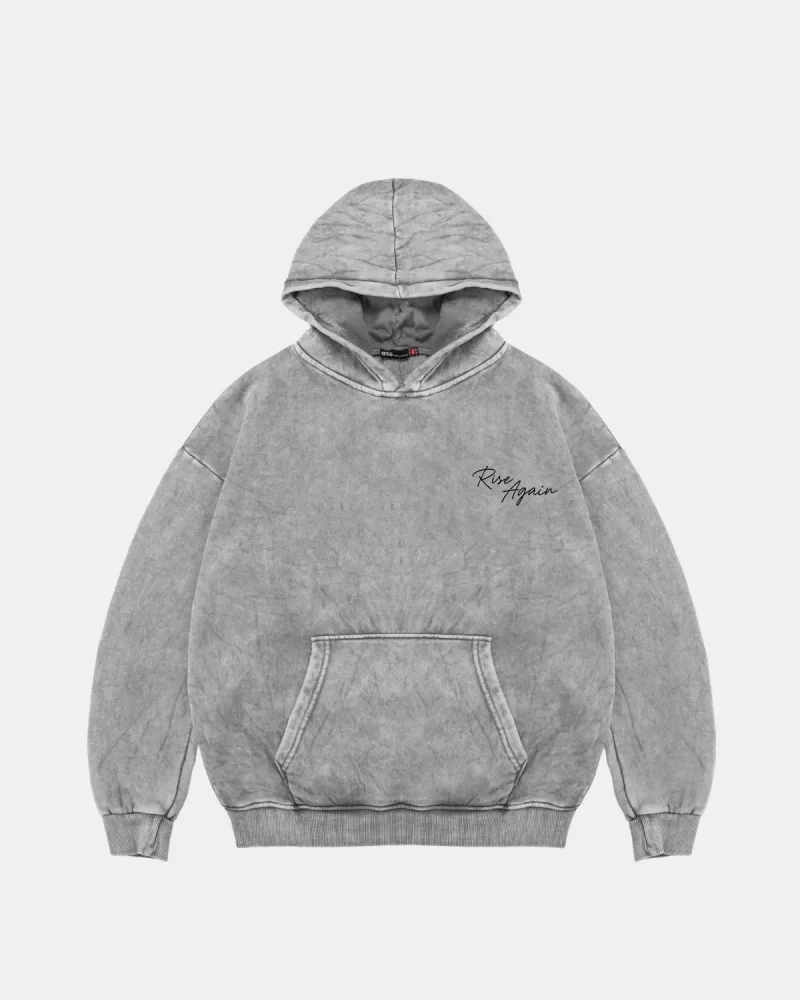 Rise Again Baskılı Oversize Unisex Premium Yıkamalı Beyaz Hoodie