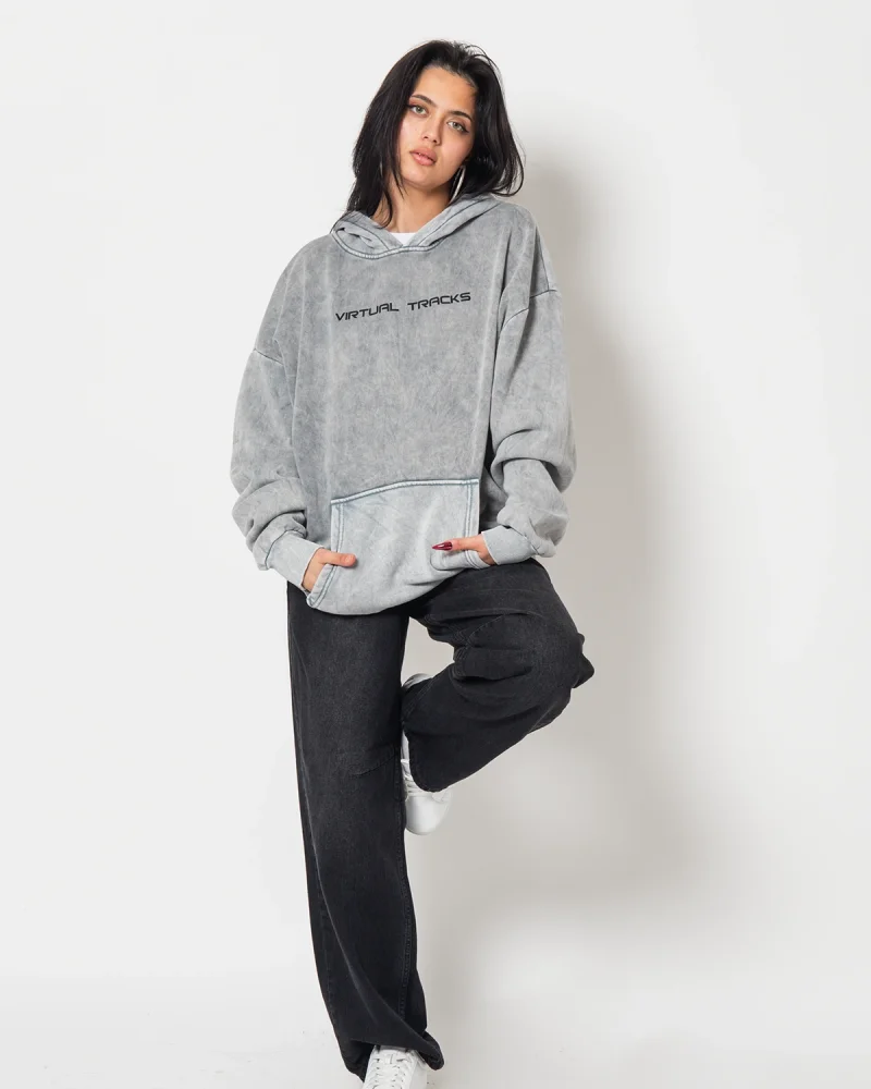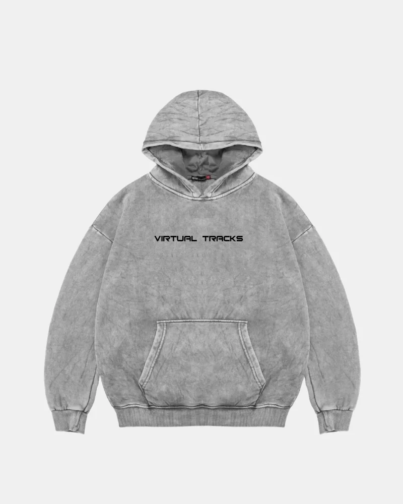 Vırtual Tracks Baskılı Oversize Unisex Premium Yıkamalı Beyaz Hoodie