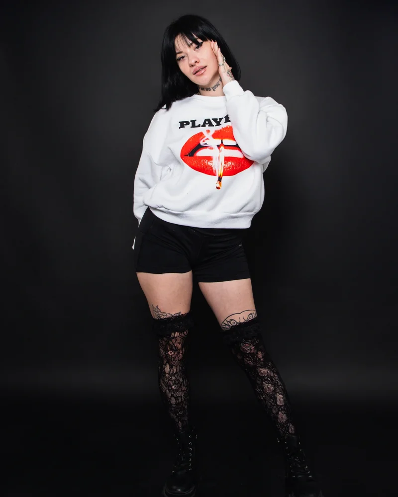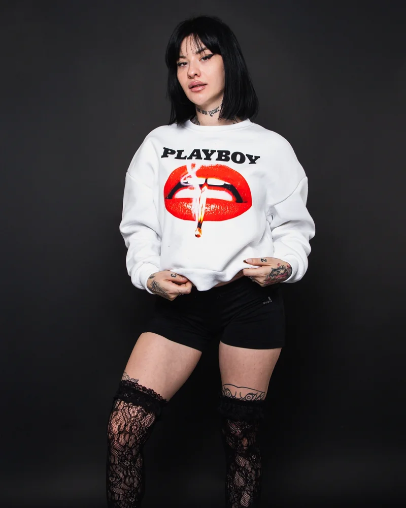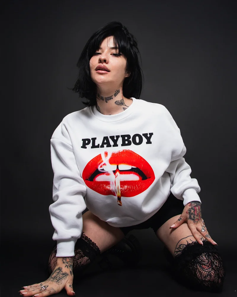 Playboy Baskılı Kapüşonsuz Relaxed Fit Kadın Beyaz Sweatshirt
