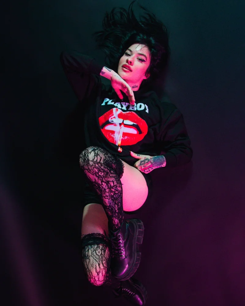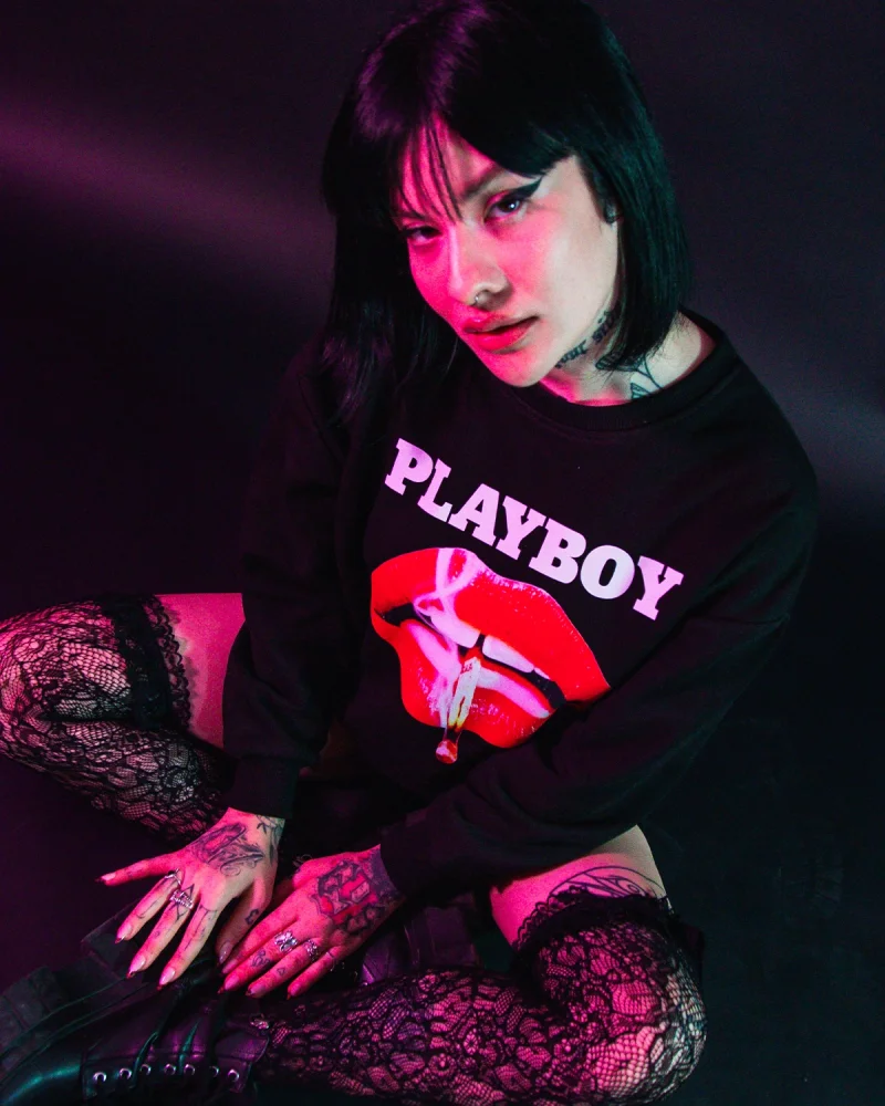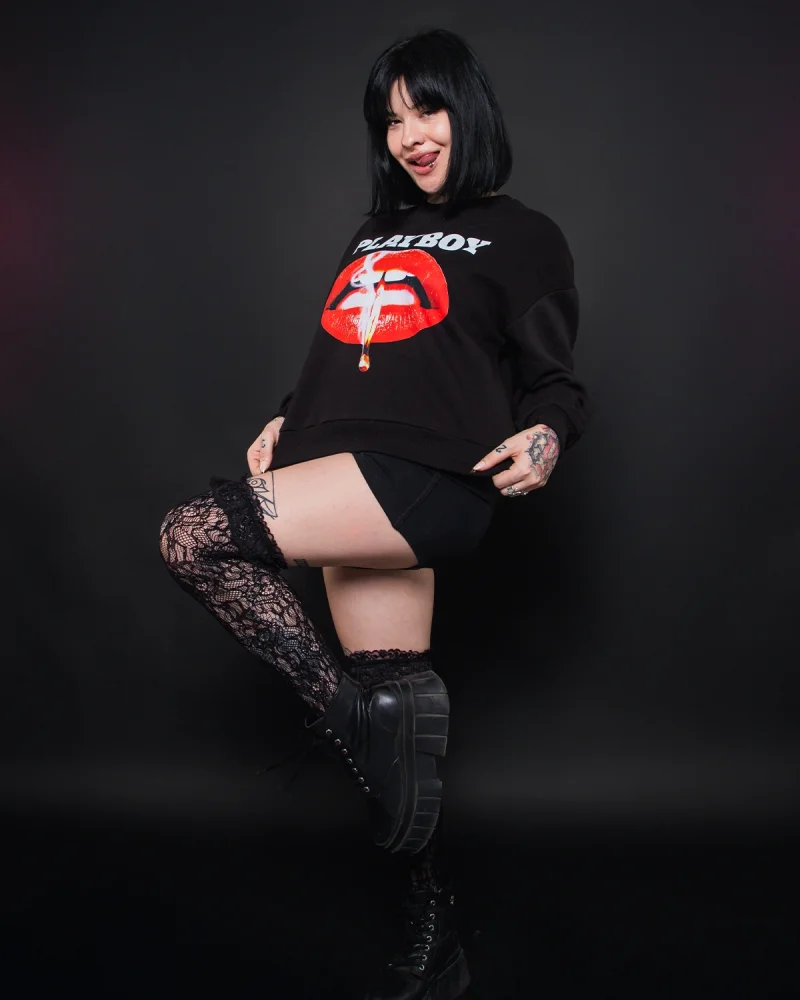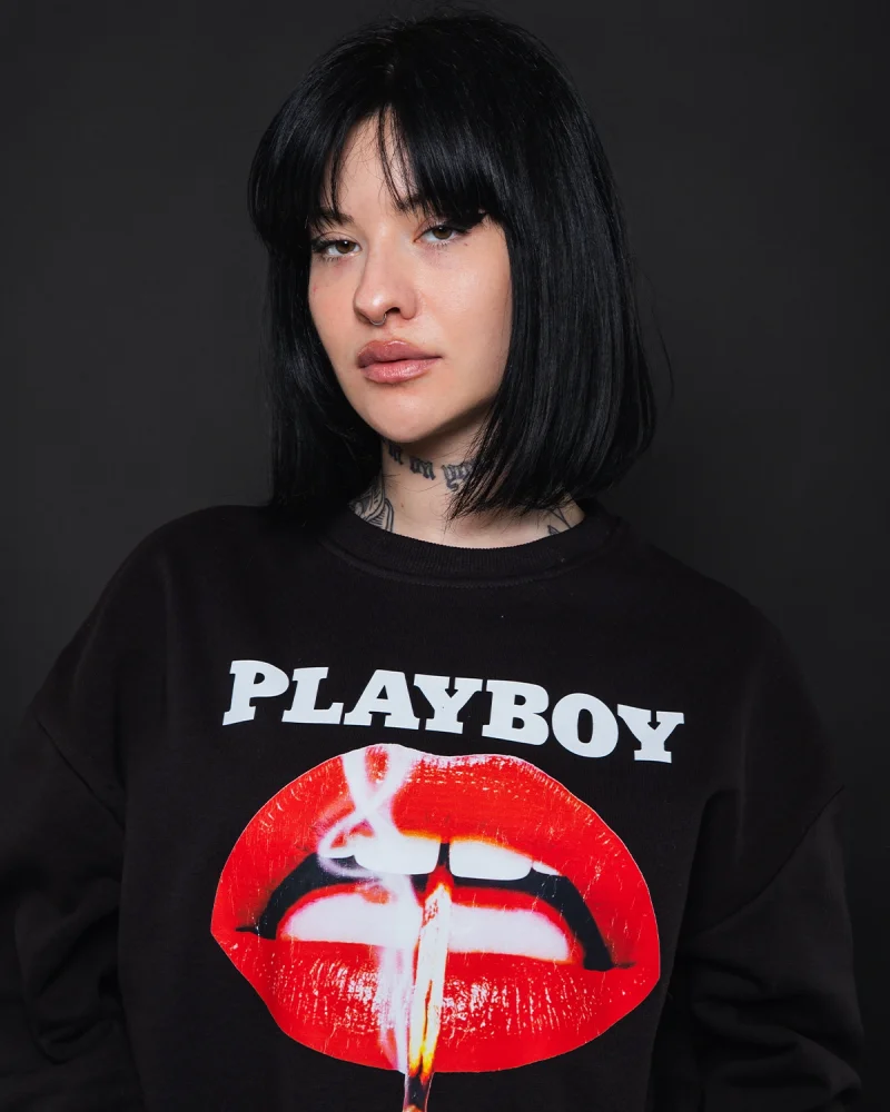 Playboy Baskılı Kapüşonsuz Relaxed Fit Kadın Siyah Sweatshirt