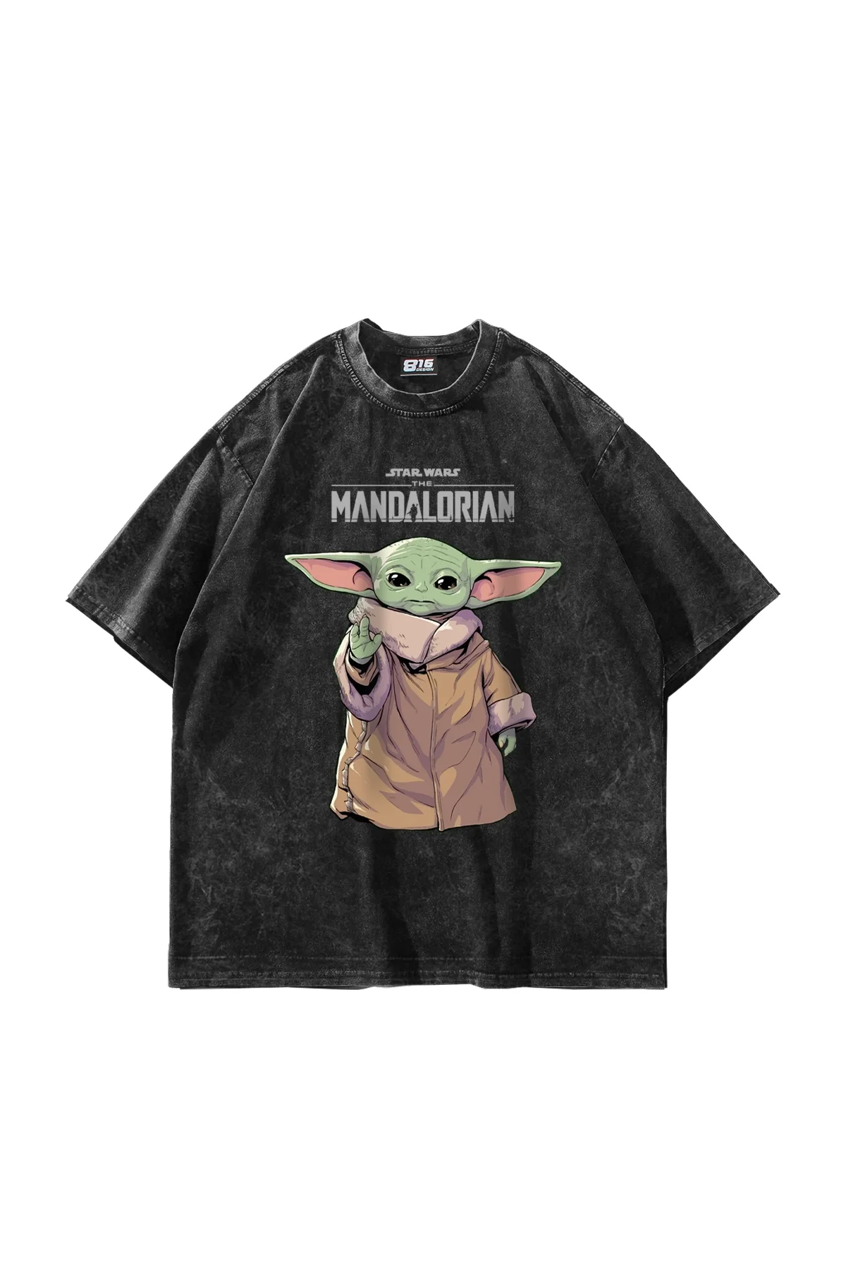 THE MANDALORİAN YODA BASKILI 24/1 OVERSİZE UNİSEX YIKAMALI SİYAH TSHİRT