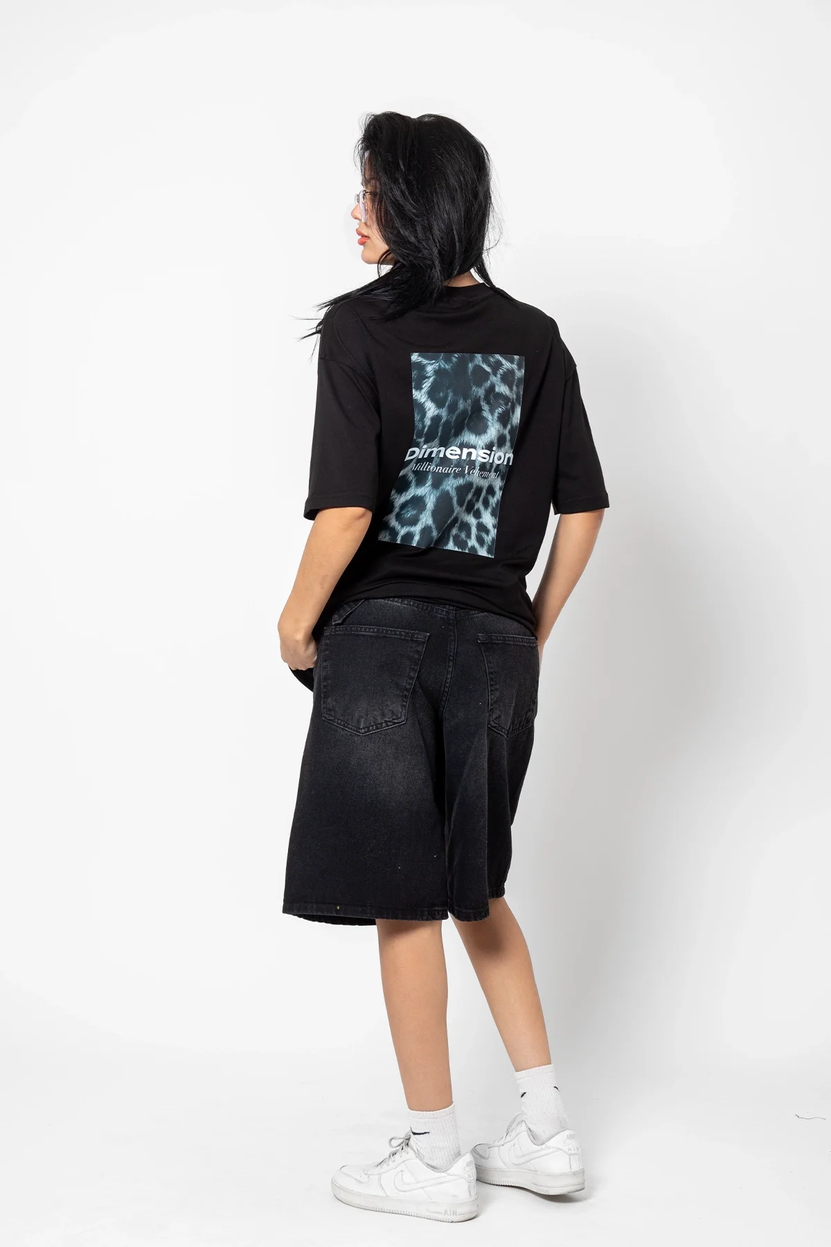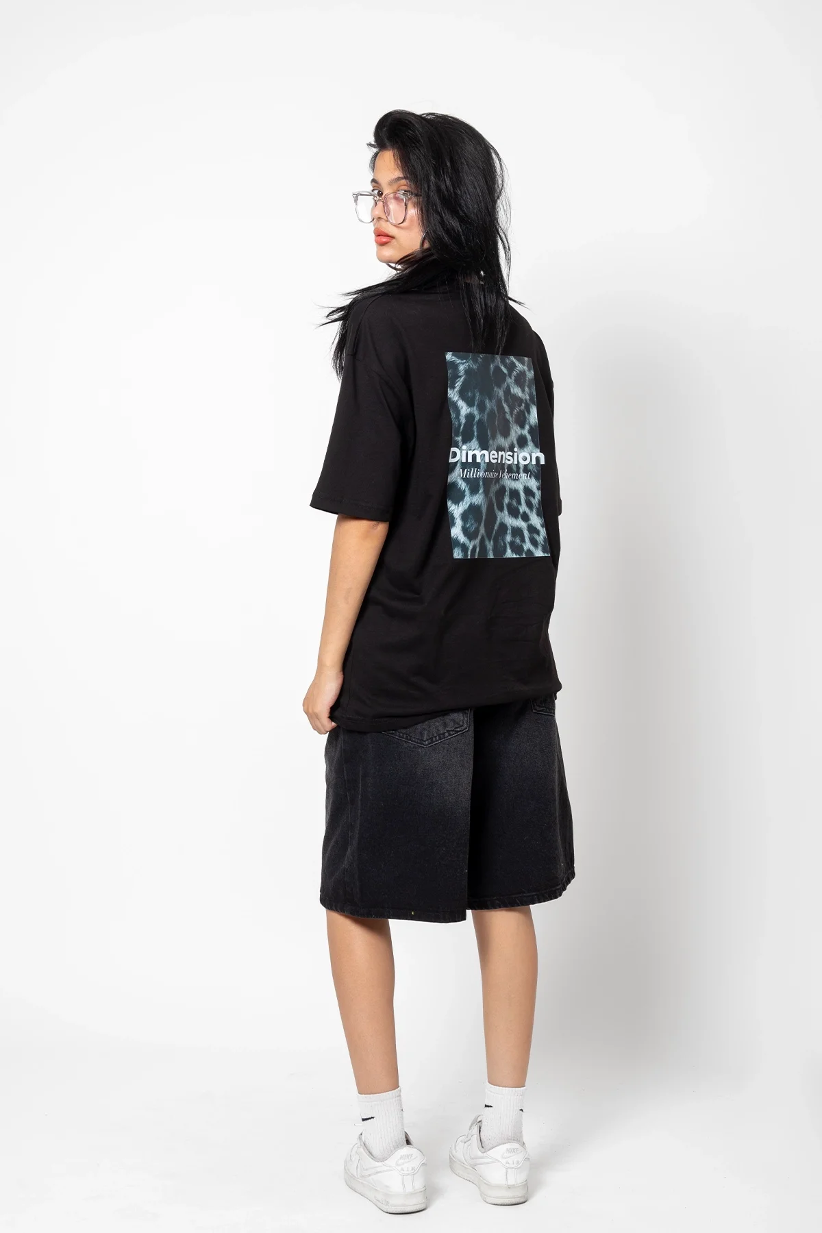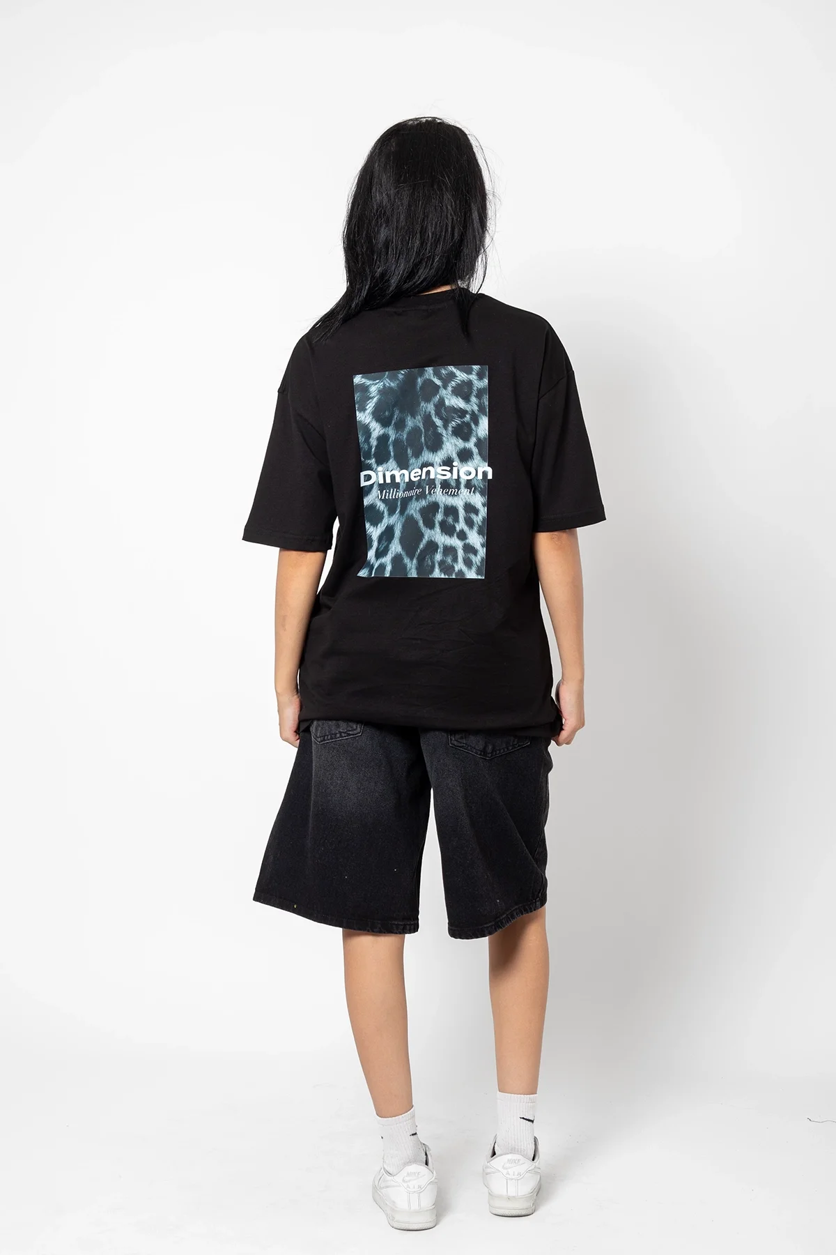 "V2" DİMENSİON BASKILI HAYVAN DESENLİ 24/1 OVERSİZE UNİSEX SİYAH TSHİRT
