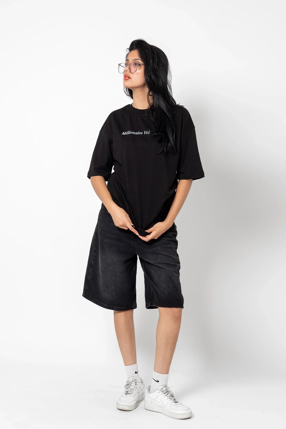 777 Lucky Baskılı Oversize Unisex Siyah Tshirt