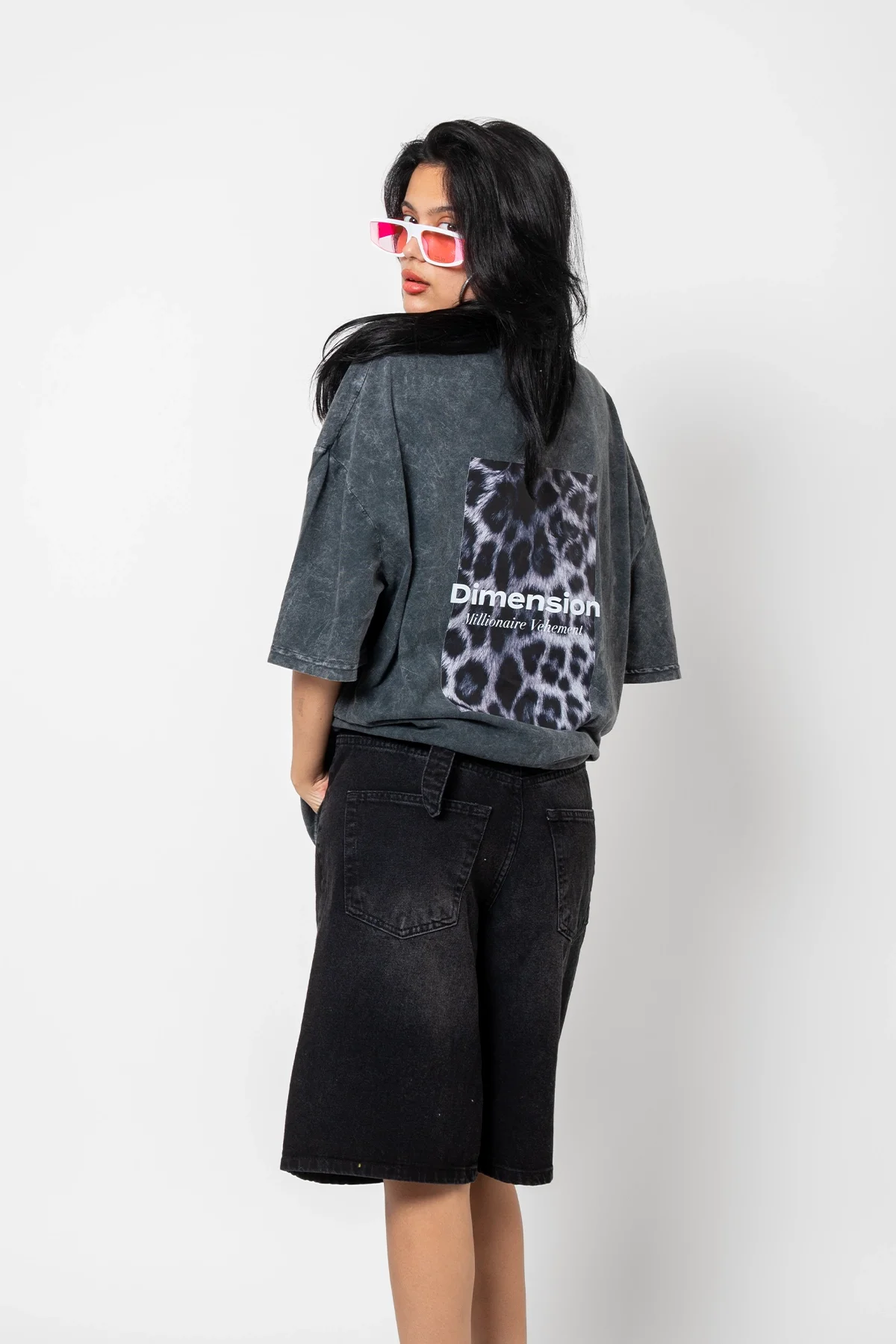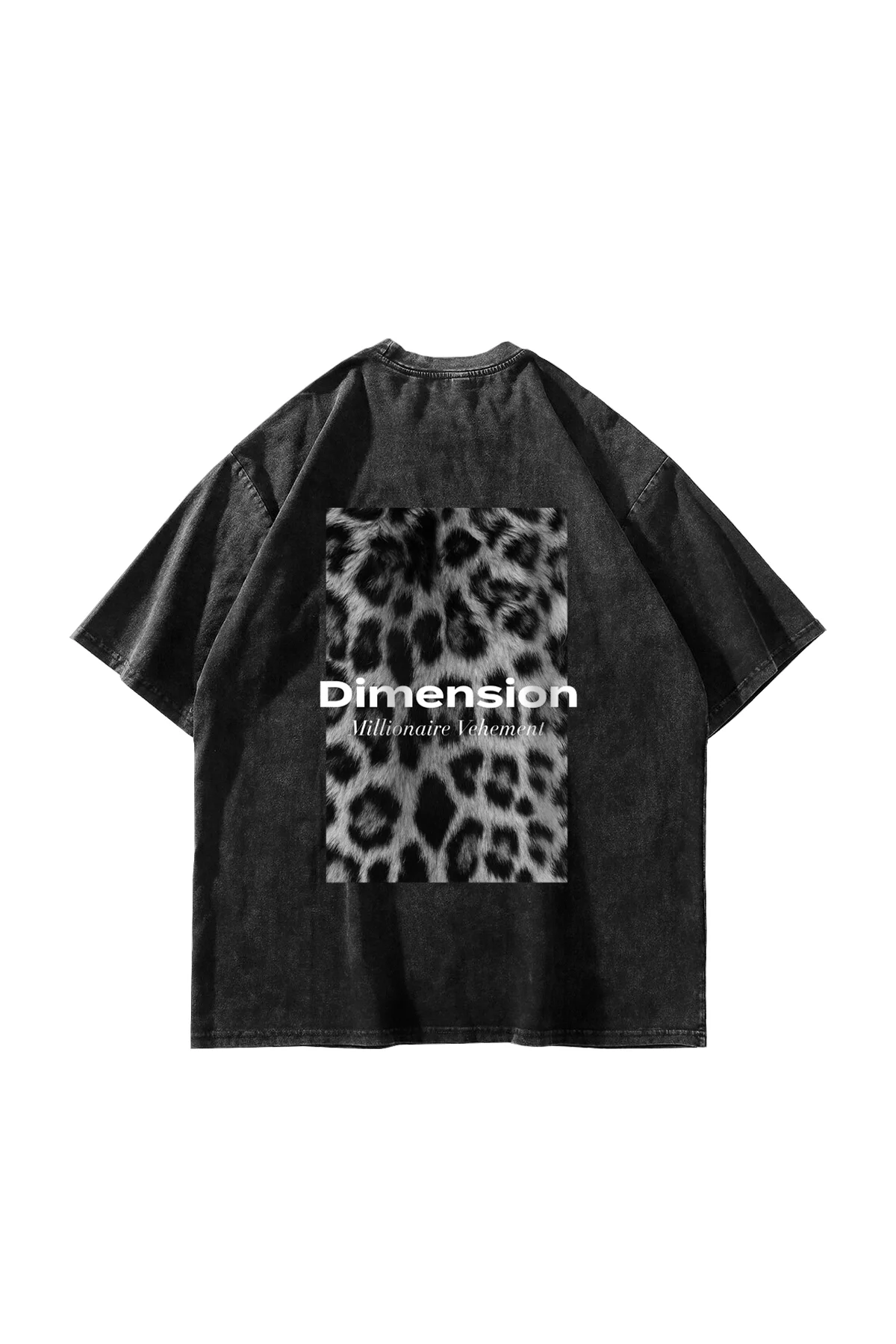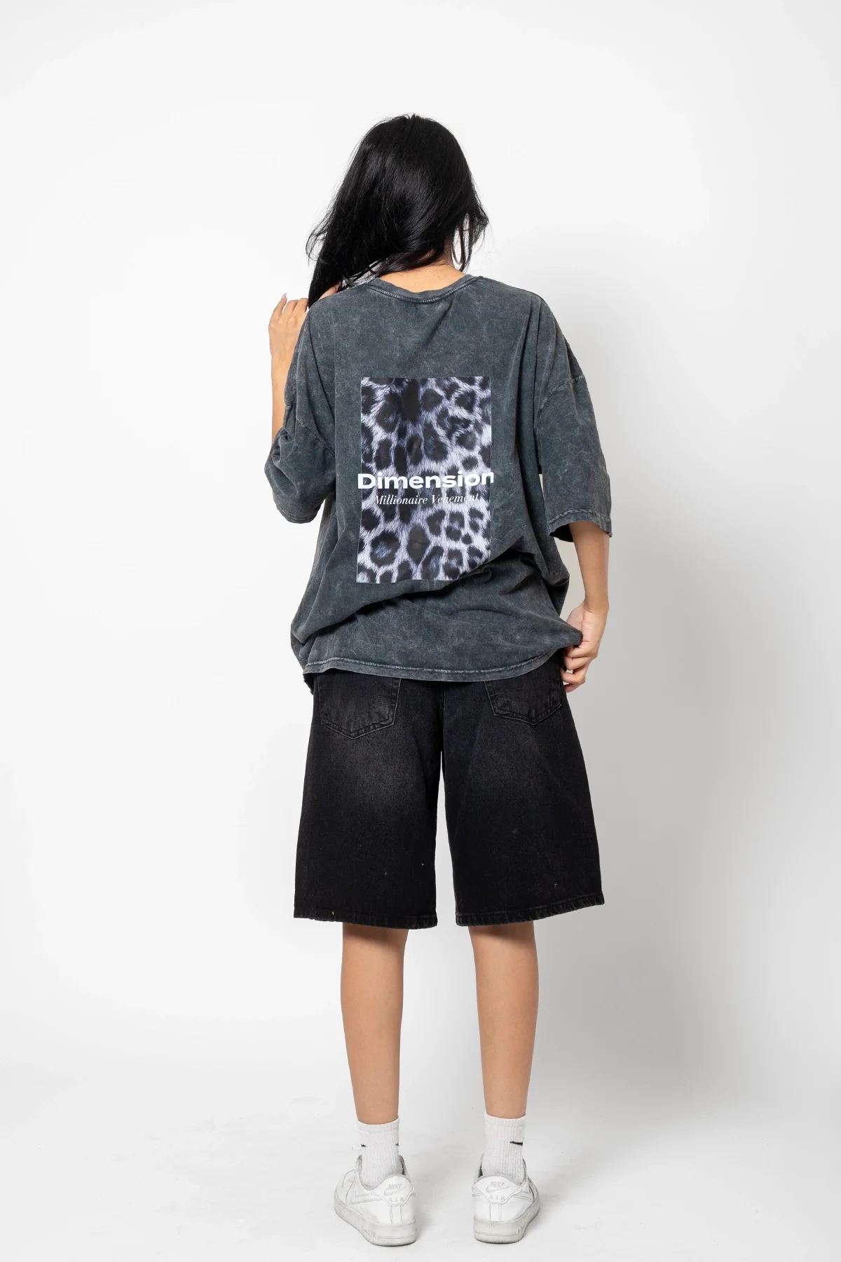 "V2" DİMENSİON BASKILI HAYVAN DESENLİ 24/1 OVERSİZE UNİSEX YIKAMALI SİYAH TSHİRT