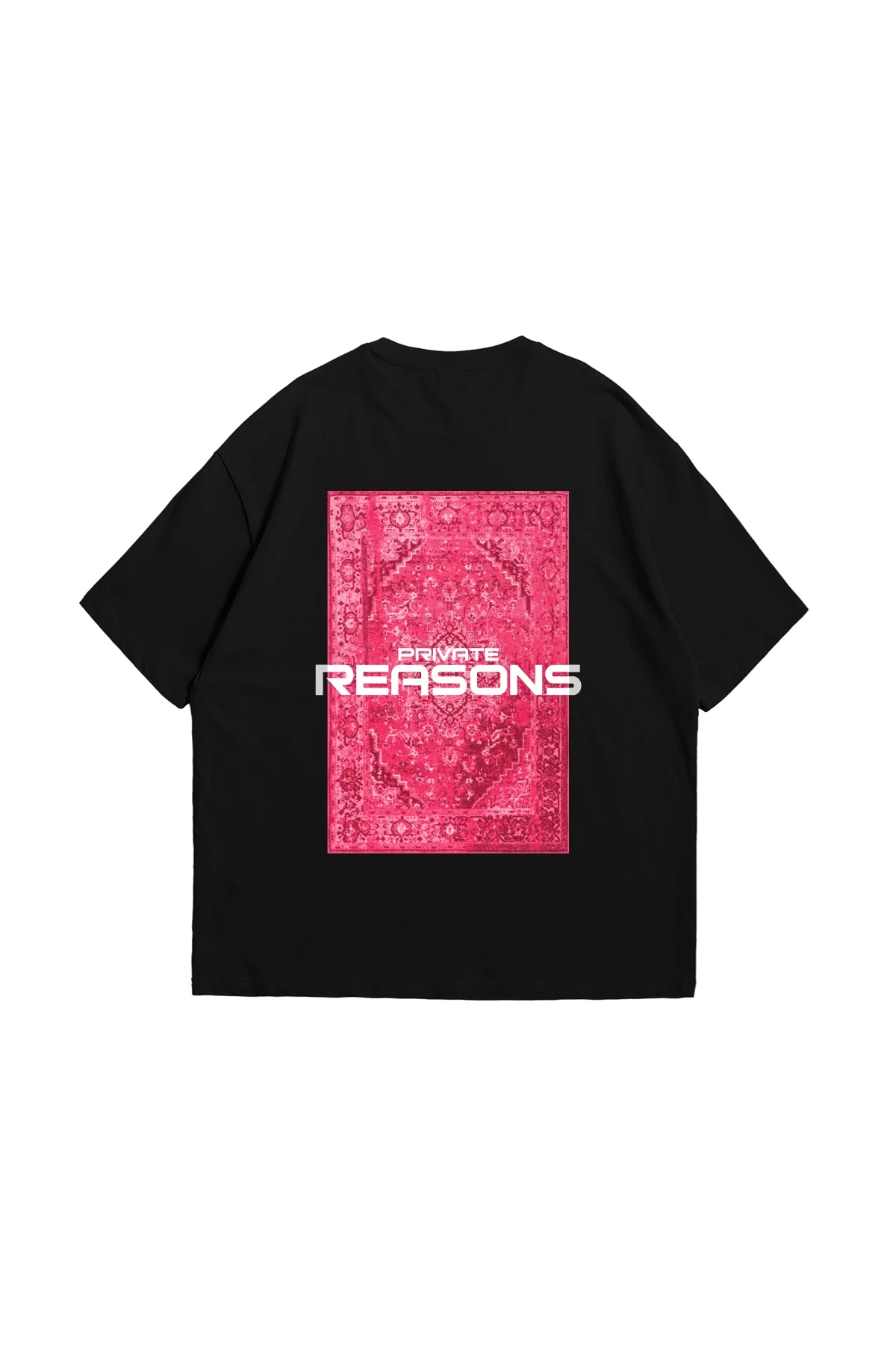 Crimson Reverie Baskılı Oversize Unisex Siyah Tshirt