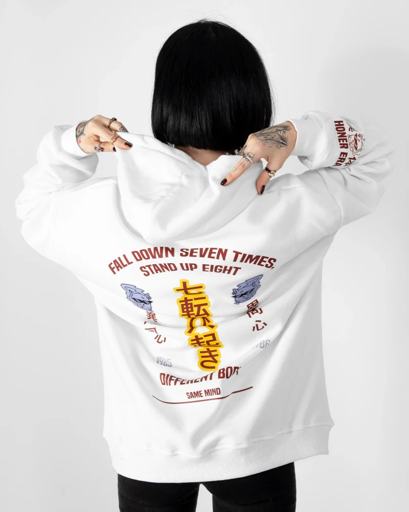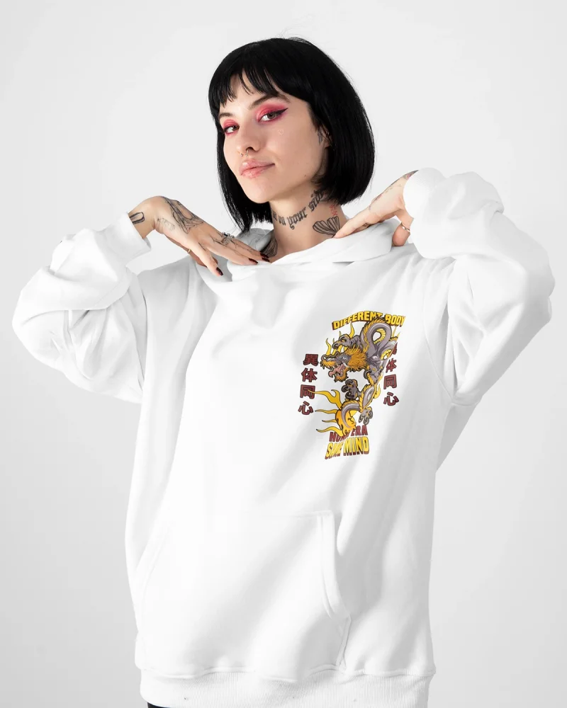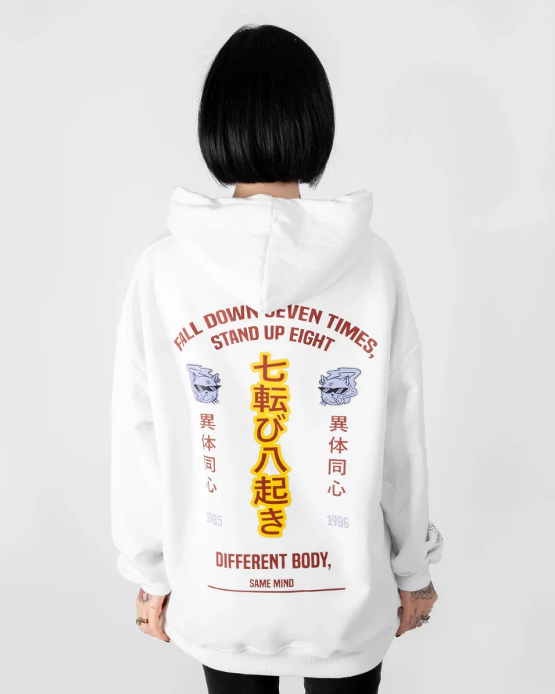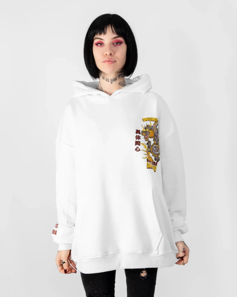 Diffrent Body Sırt Baskılı Oversize Unisex Beyaz Hoodie