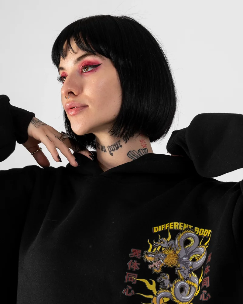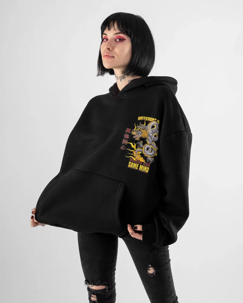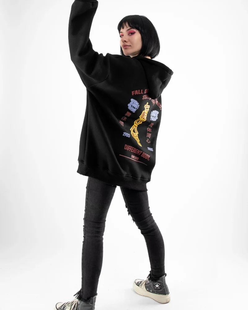 Diffrent Body Sırt Baskılı Oversize Unisex Siyah Hoodie