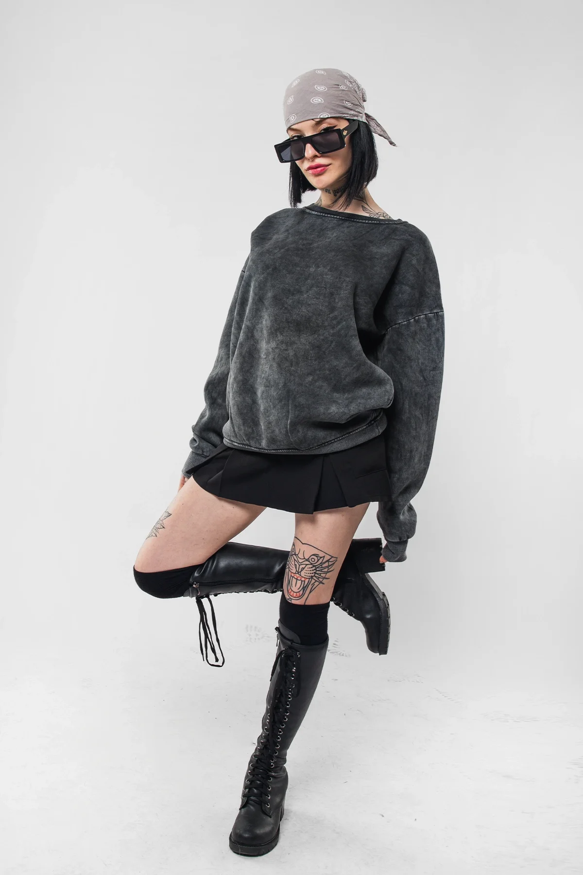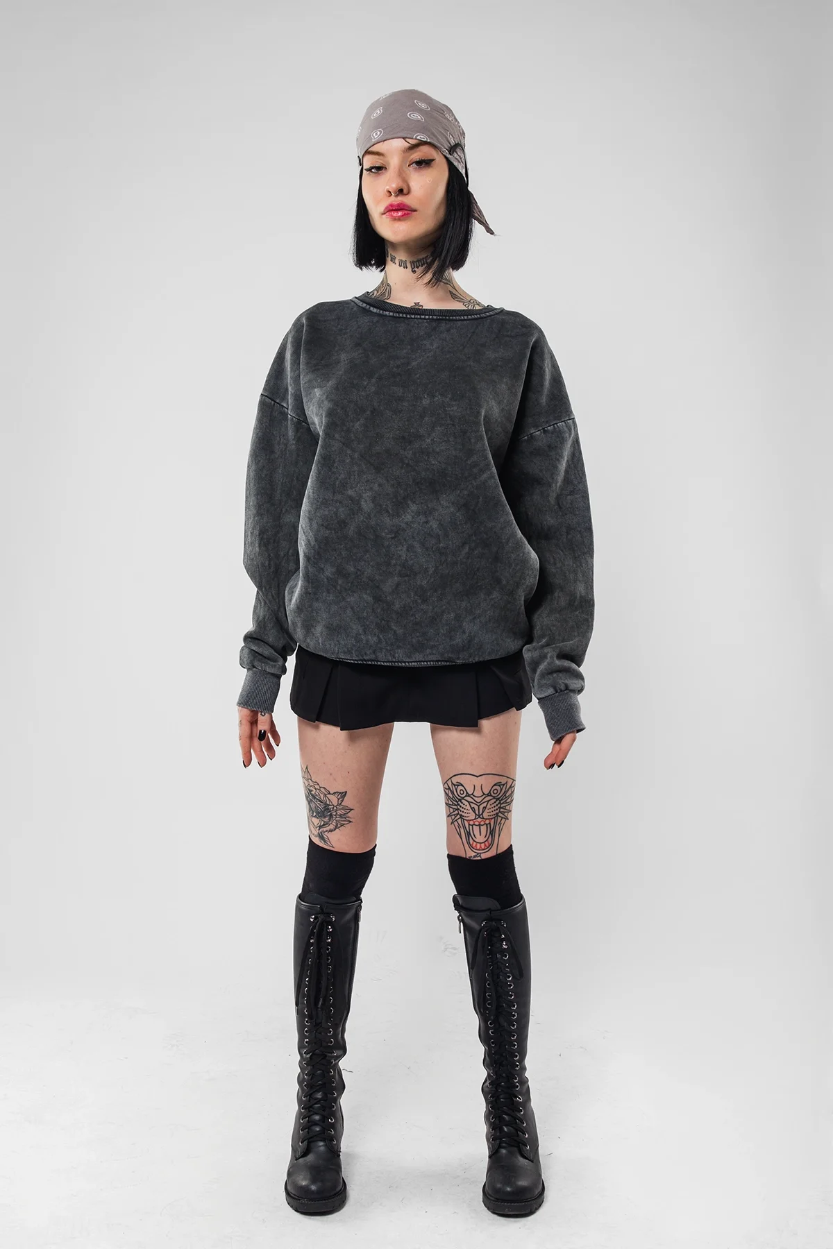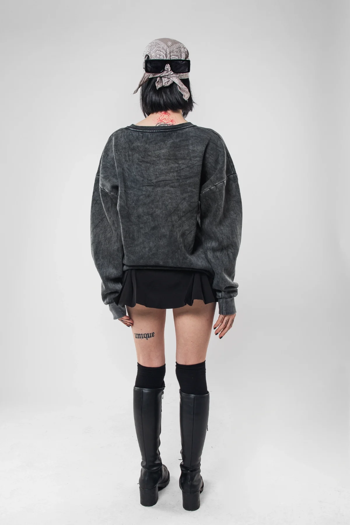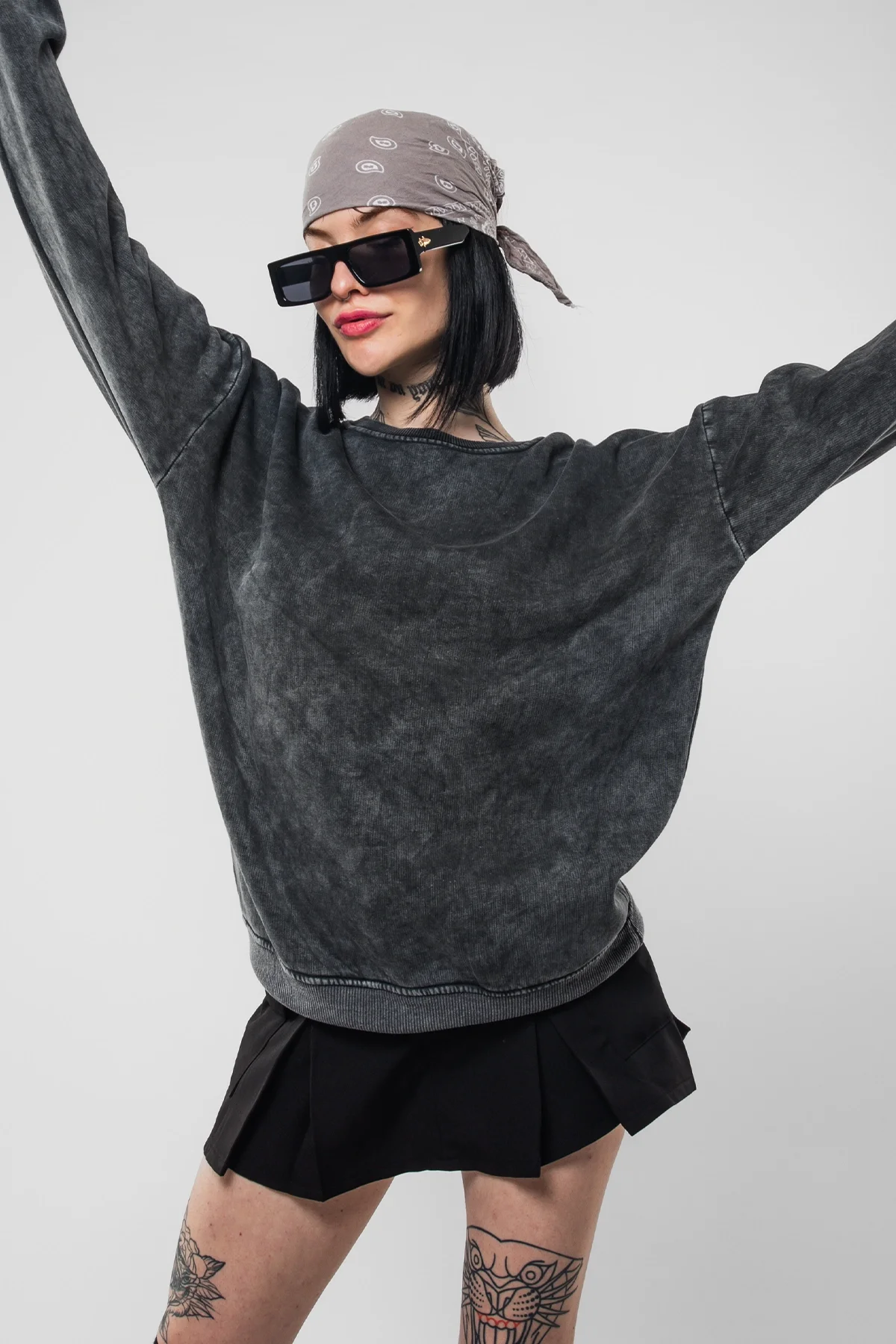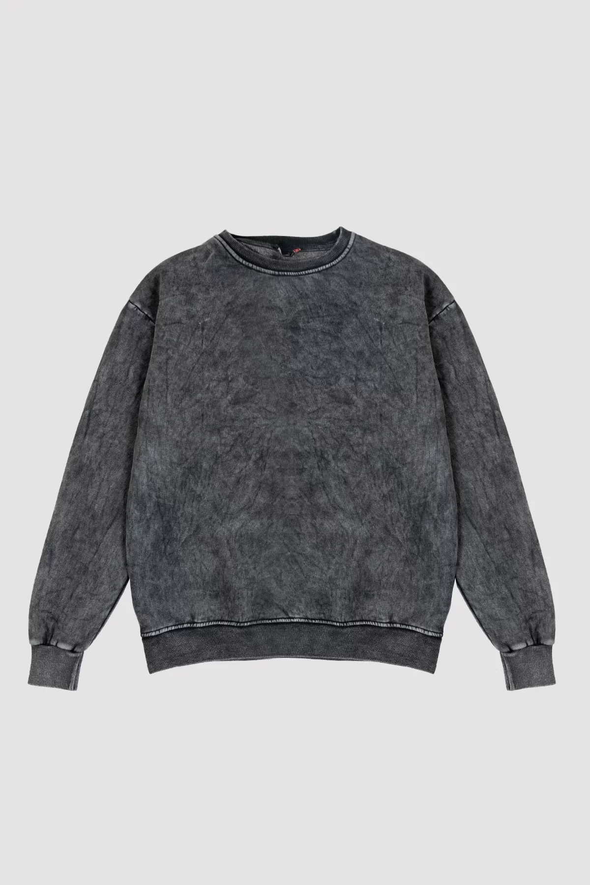 YIKAMALI KAPÜŞONSUZ BASİC OVERSİZE UNİSEX SİYAH SWEATSHİRT
