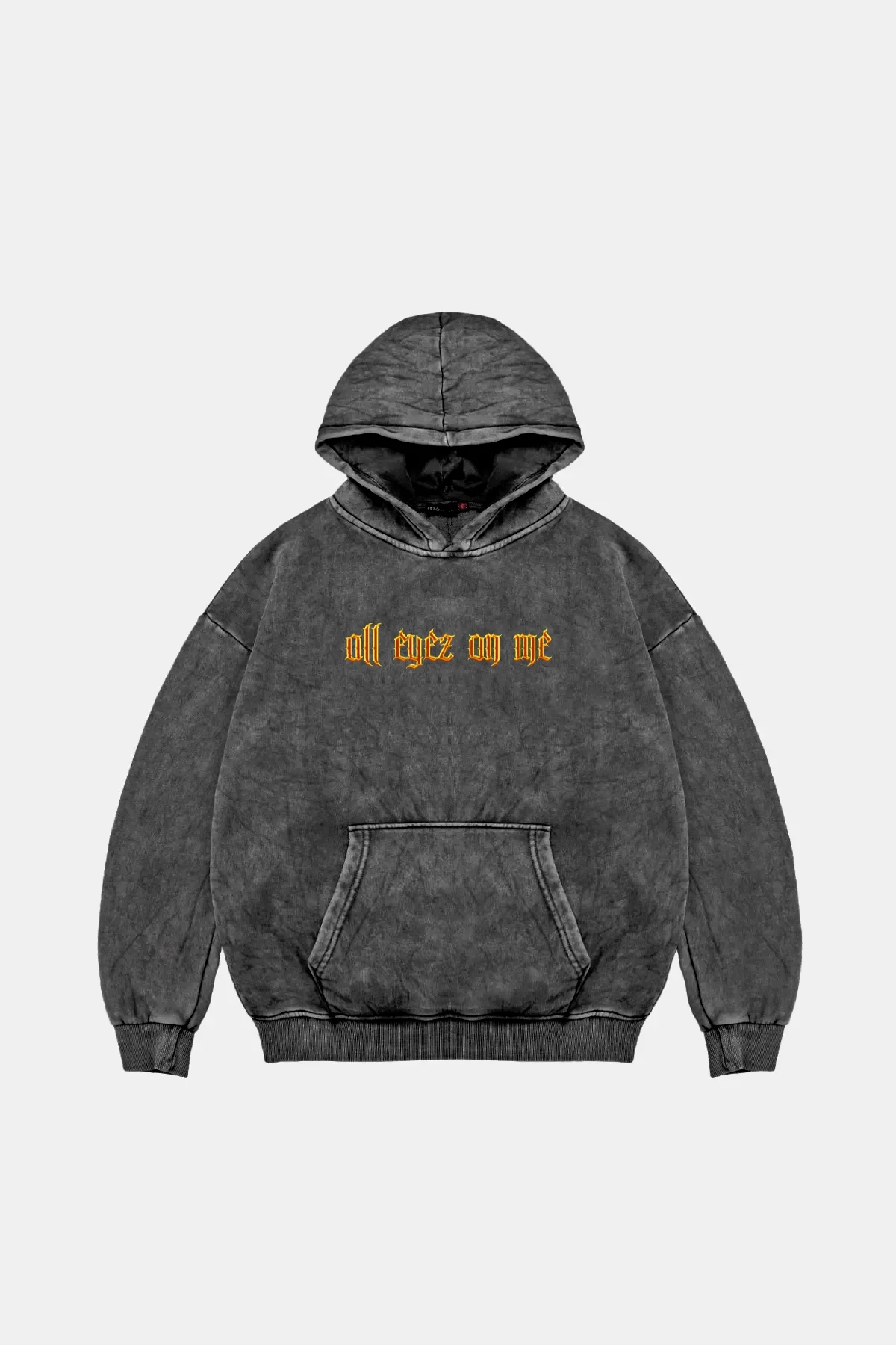 2PAC ALL EYEZ ON ME BASKILI OVERSİZE UNİSEX PREMİUM YIKAMALI SİYAH HOODİE