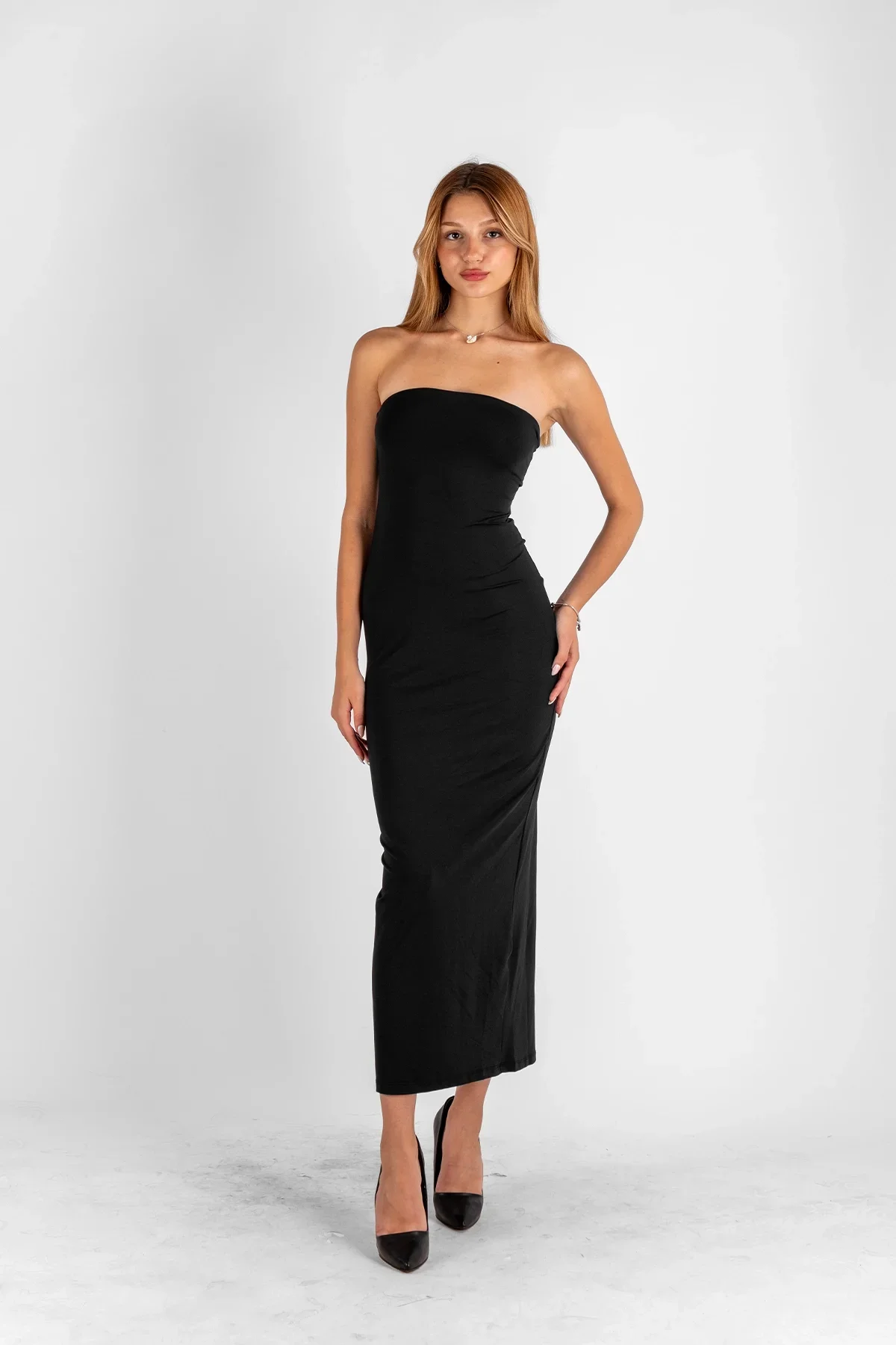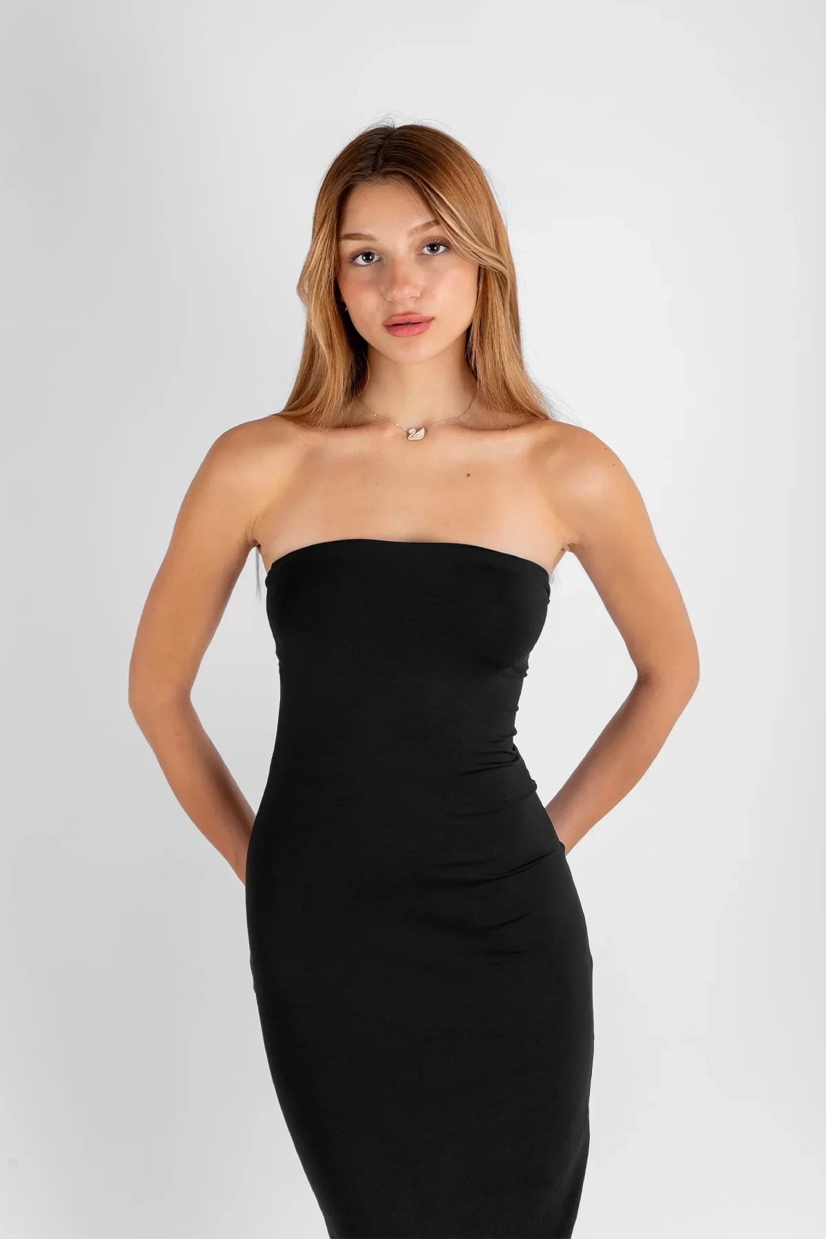 Zamansız şıklığın anahtarı: Basic Uzun Straplez Elbise. Minimalist tasarımıyla dikkat çeken bu elbise, straplez kesimi ve uzun boyuyla zarafeti bir araya getiriyor. Esnek ve hafif kumaşı sayesinde gün boyu konfor sunarken, vücuda oturan yapısıyla feminen bir siluet oluşturur. Gündüzden geceye her ortamda rahatlıkla kullanabileceğiniz bu elbise, dolabınızın vazgeçilmez parçası olmaya aday.
