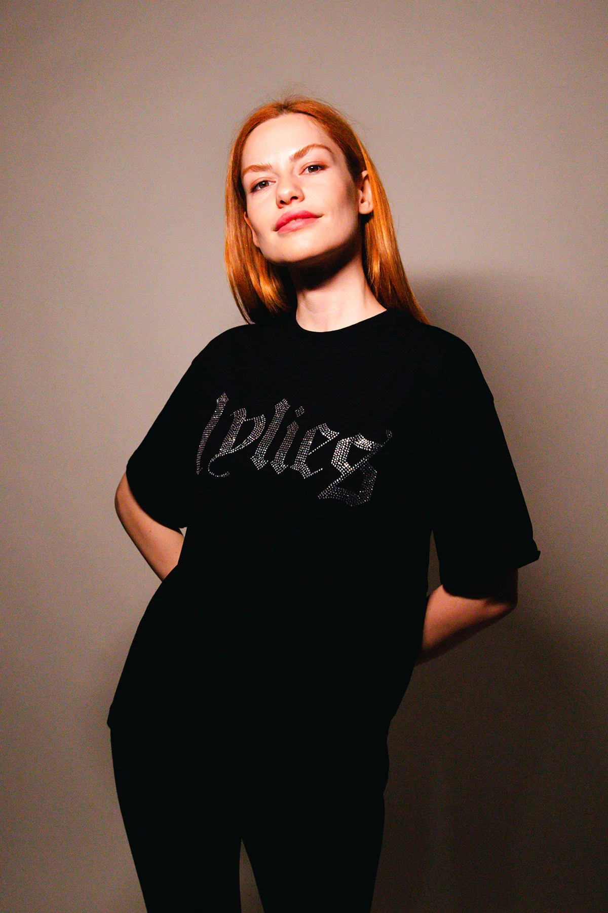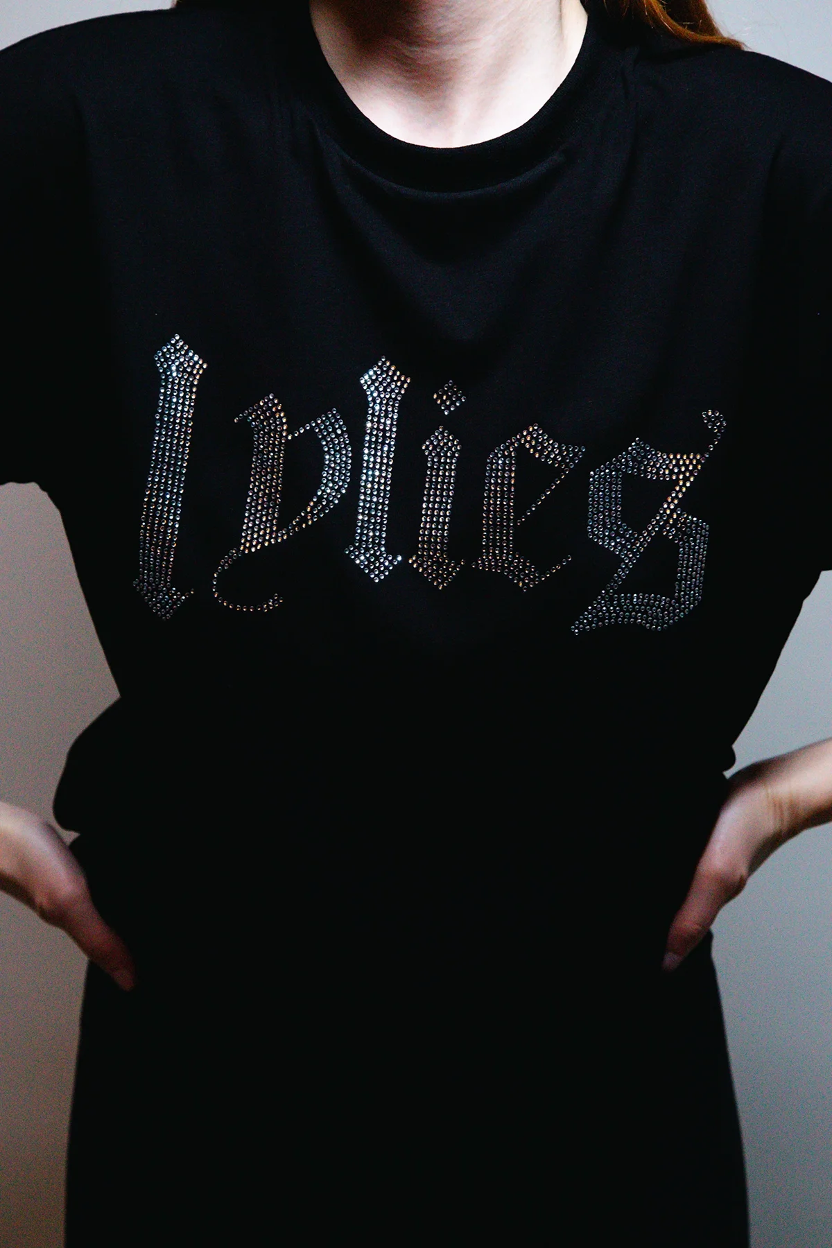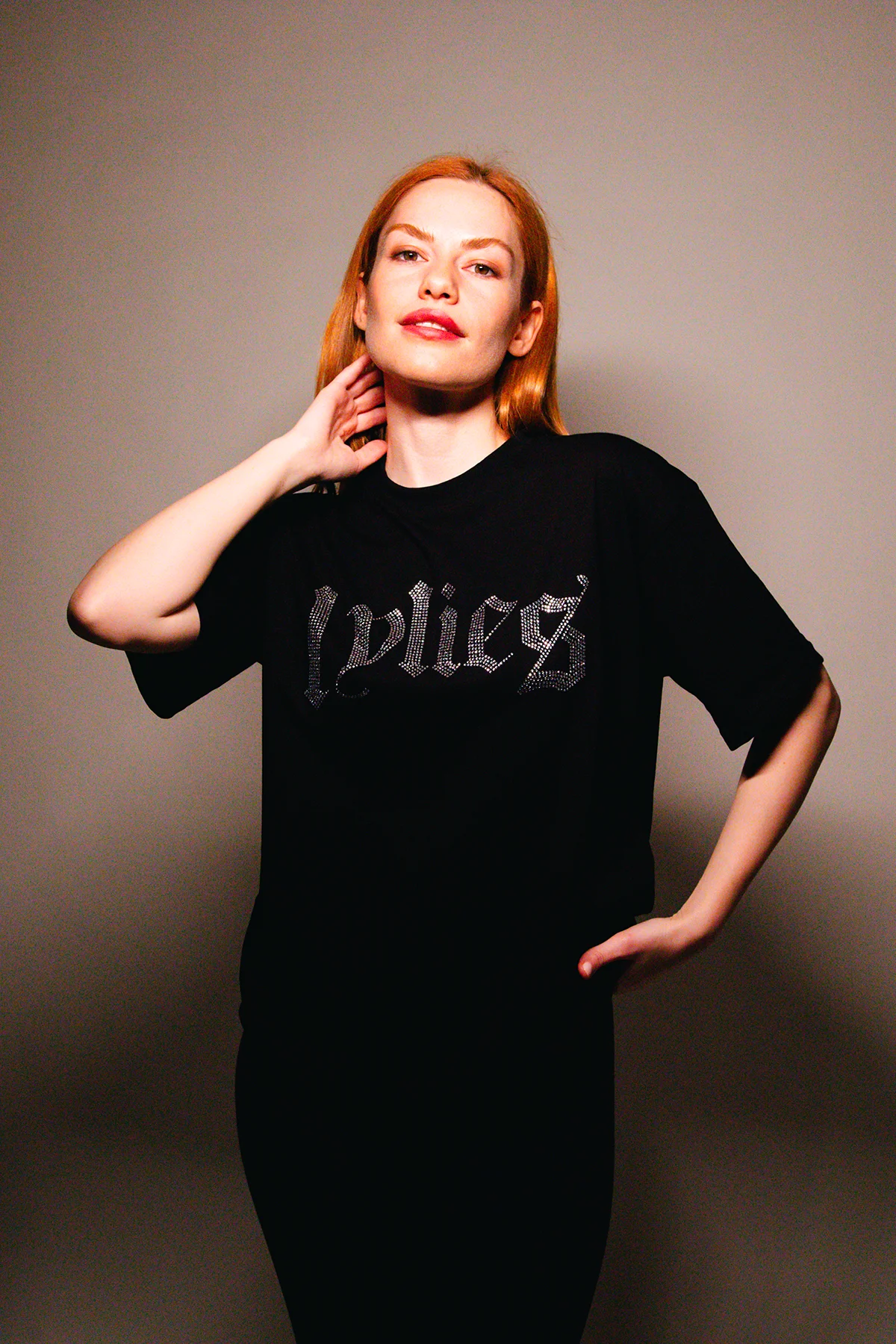LYLİES TAŞ BASKILI RELAXED FİT SİYAH KADIN TSHİRT