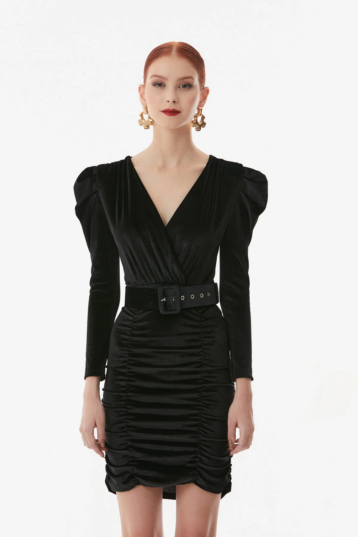 Zarafetin ve şıklığın buluştuğu Saten Kadife Kemer Detaylı Göğüs Dekolteli Uzun Kollu Elbise ile özel anlarınızda fark yaratın. İnce işçilikle tasarlanmış bu elbise, yumuşak saten dokusunun kadifeyle birleşimi sayesinde hem göz alıcı hem de konforlu bir kullanım sunar. Göğüs dekoltesiyle feminen bir hava katan model, kemer detayıyla belinizi vurgulayarak kusursuz bir siluet yaratır. Uzun kollu yapısı sayesinde mevsim geçişlerinde rahatlıkla tercih edilebilir. Düğün, davet veya özel buluşmalar için ideal olan bu elbise, gardırobunuzun vazgeçilmez parçalarından biri olacak.