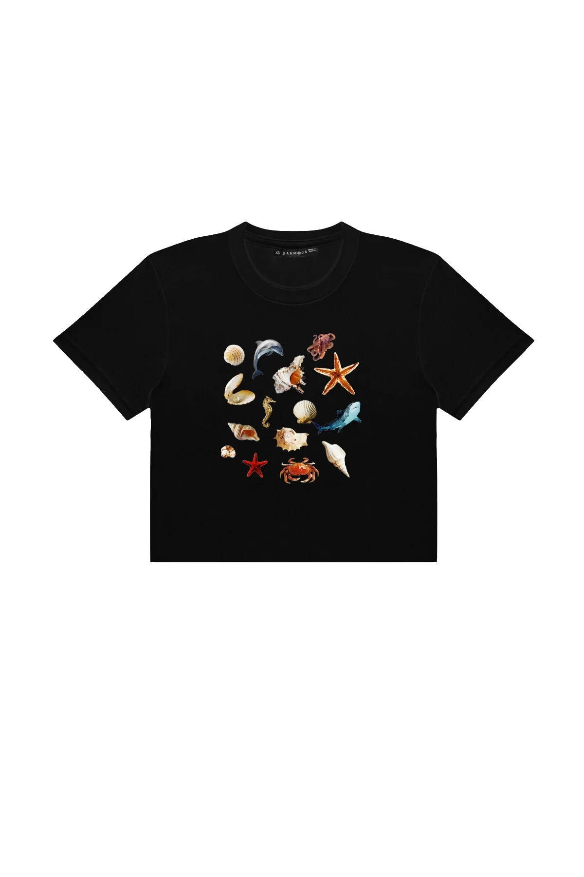 SEASHELL BASKILI SİYAH CROP TOP