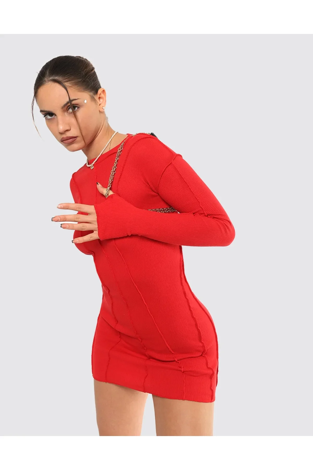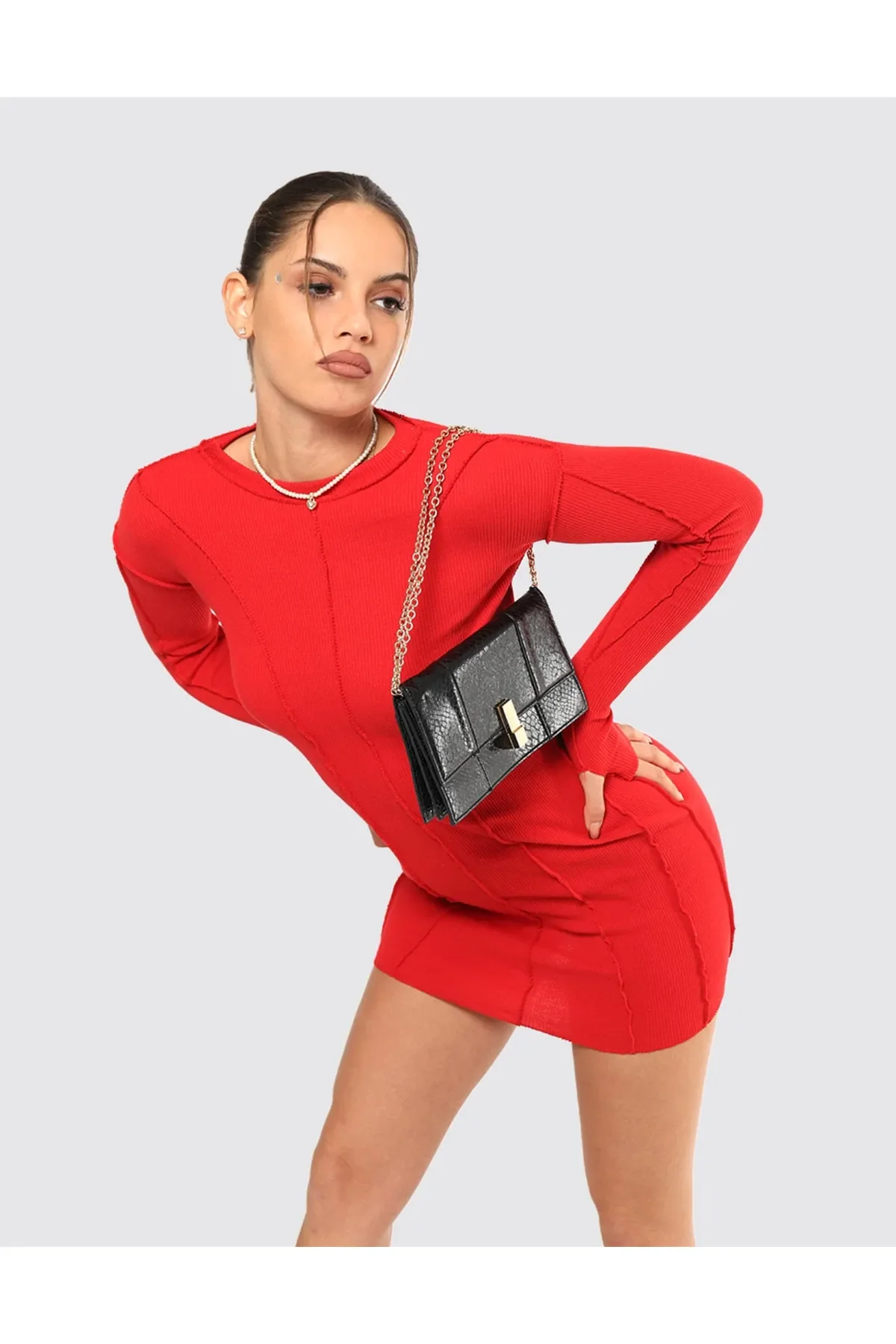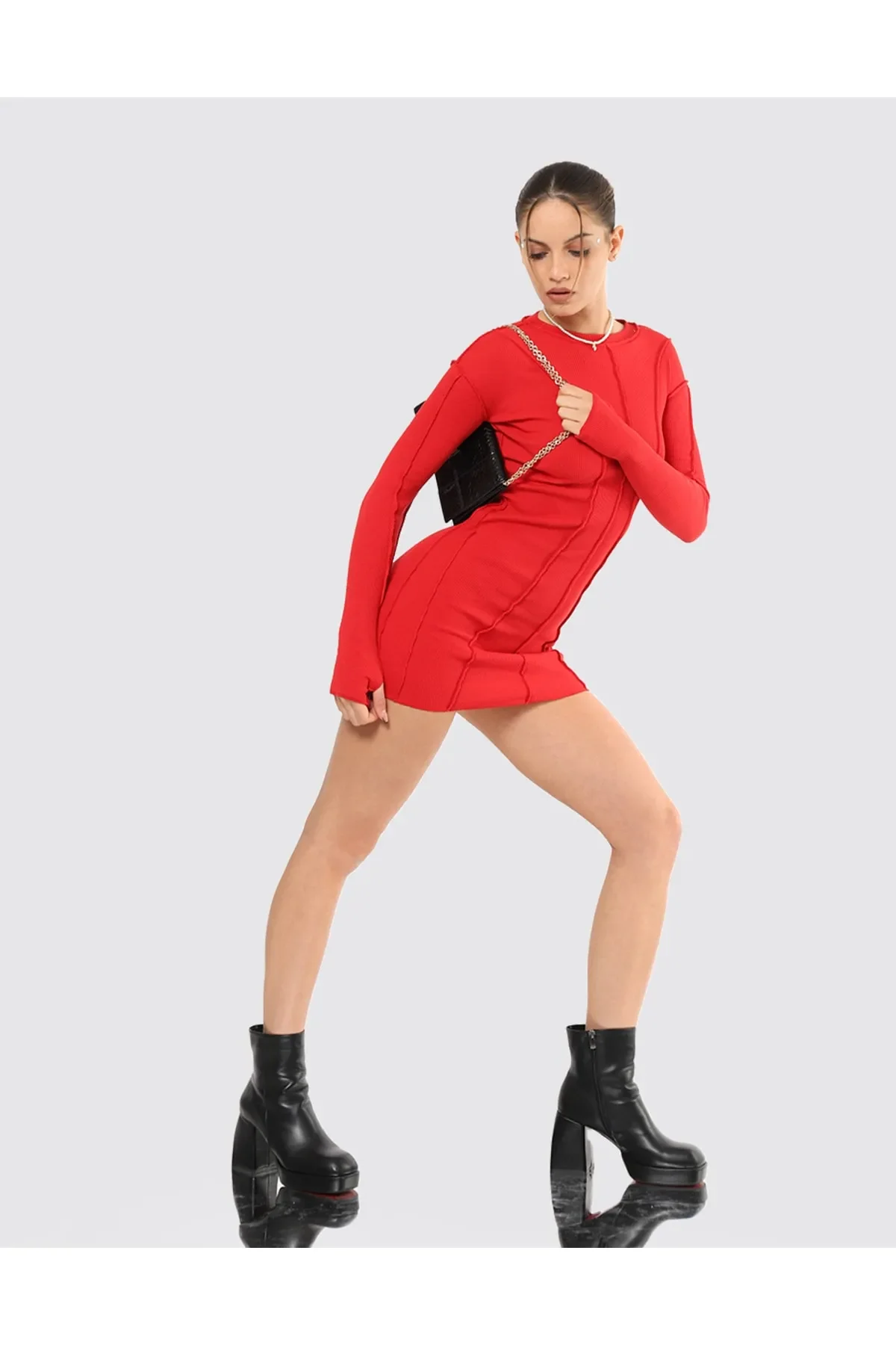 Cesur stilin modern yansıması: Ters dikiş detaylarıyla fark yaratan bu mini kaşkorse elbise, sezonun en trend parçaları arasında yerini alıyor. Hem günlük kombinlerde hem de özel davetlerde stilinizi ön plana çıkarın.