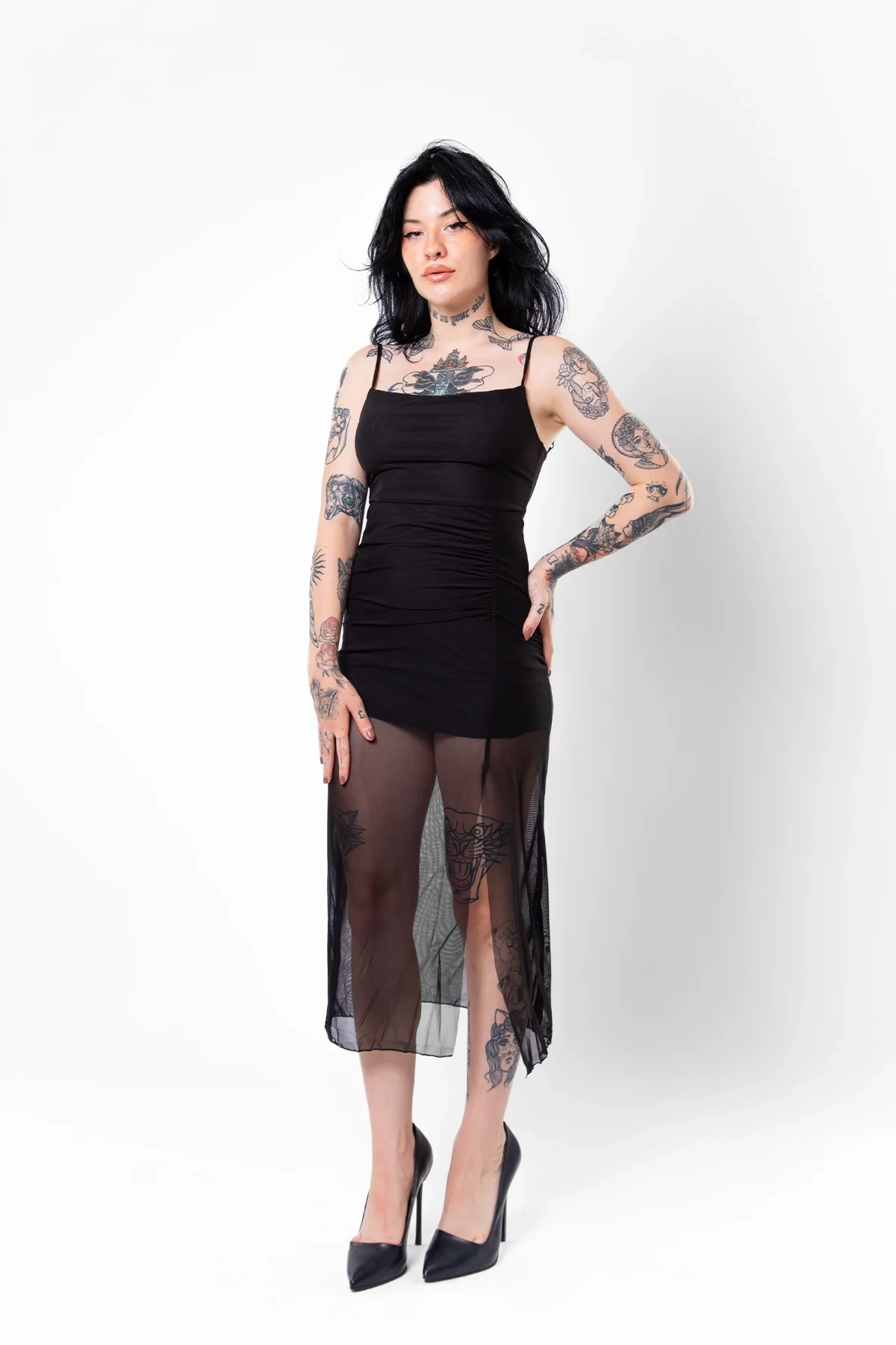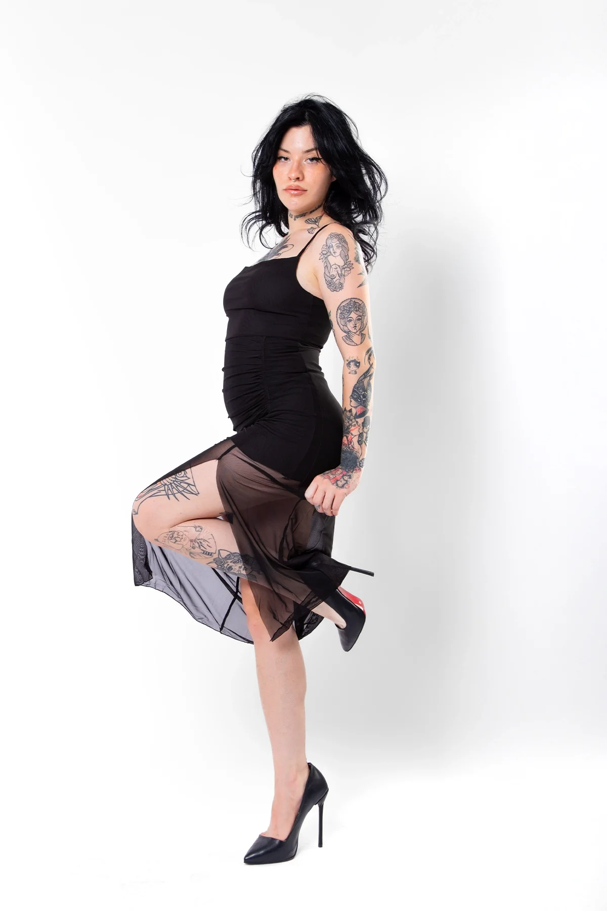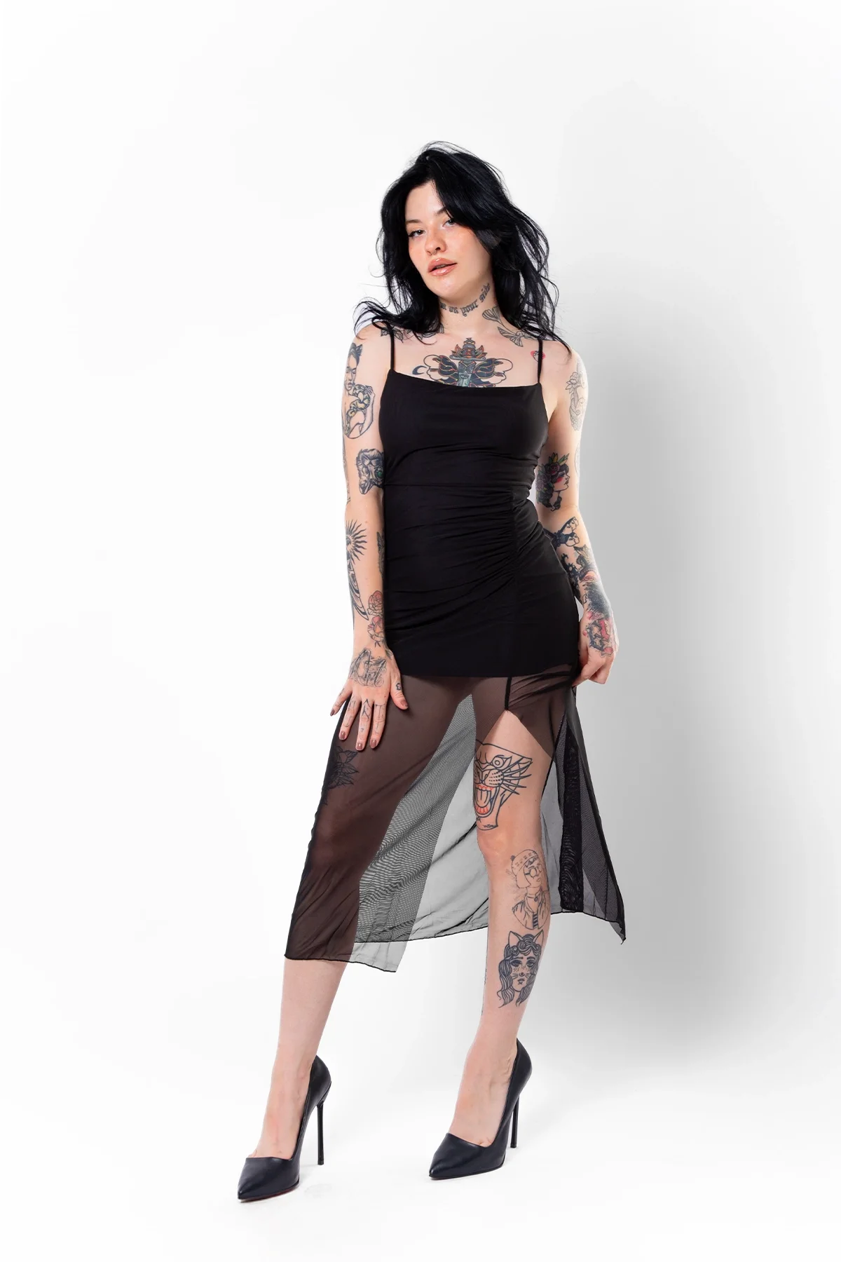Zamansız şıklığın anahtarı olan siyah mini elbise, modern detaylarla yeniden yorumlandı! İnce askıları ve zarif tül detaylarıyla öne çıkan bu tasarım, feminen duruşu ve iddialı görünümüyle stil sahibi kadınların favorisi olmaya aday.