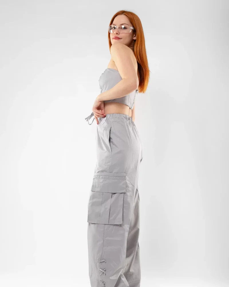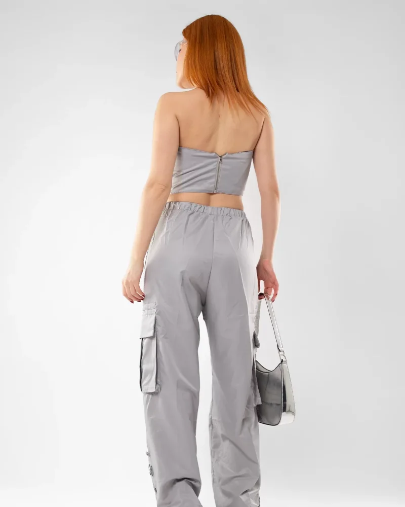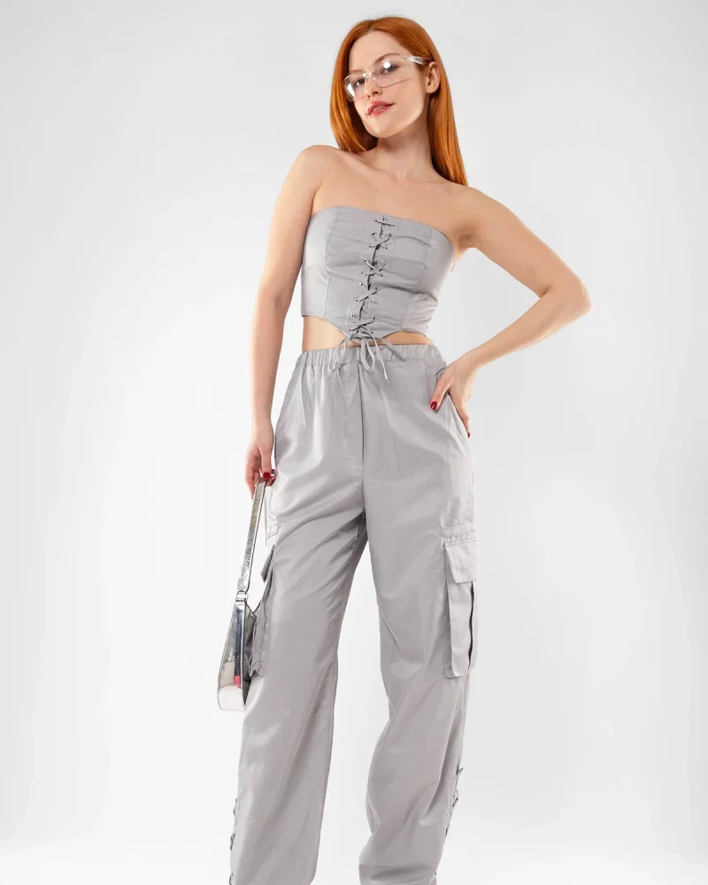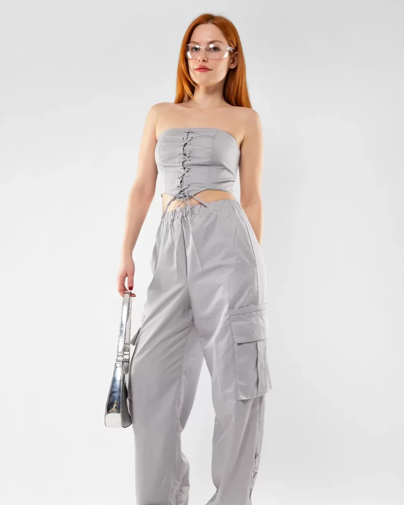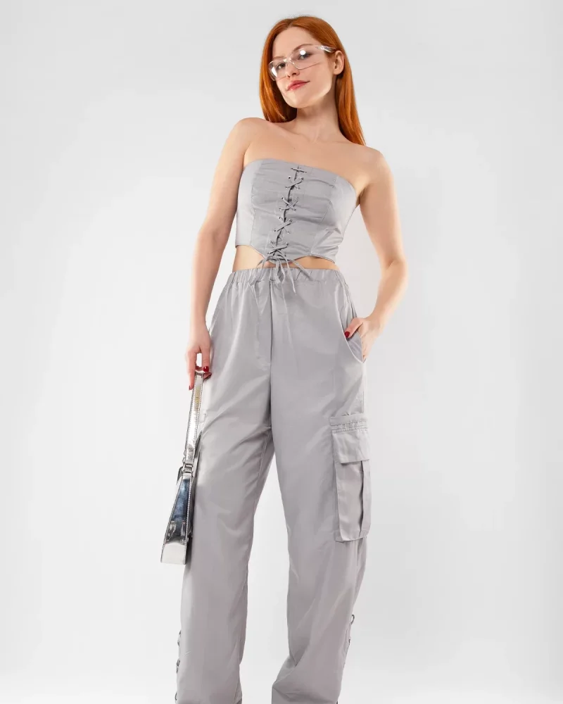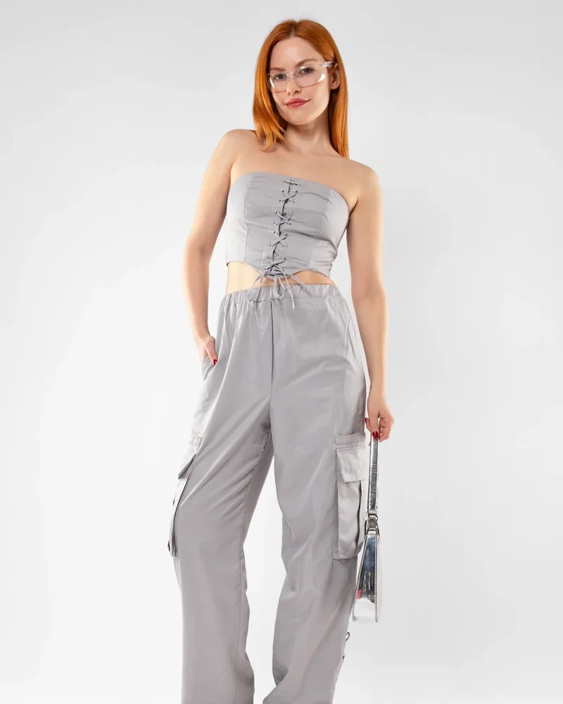Bağlama Detaylı Gri Büstiyer Takım