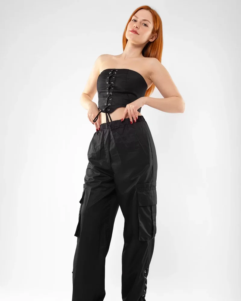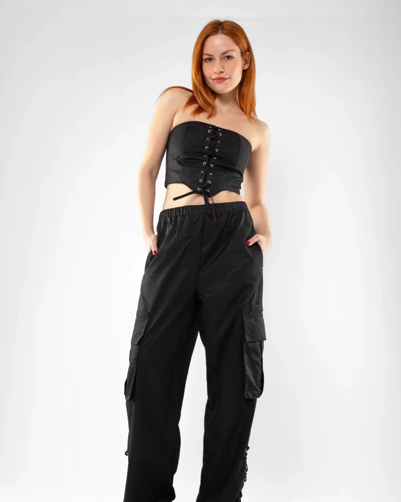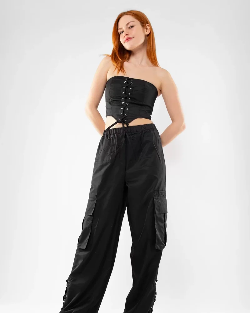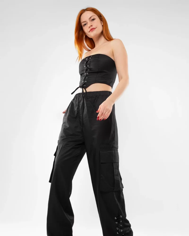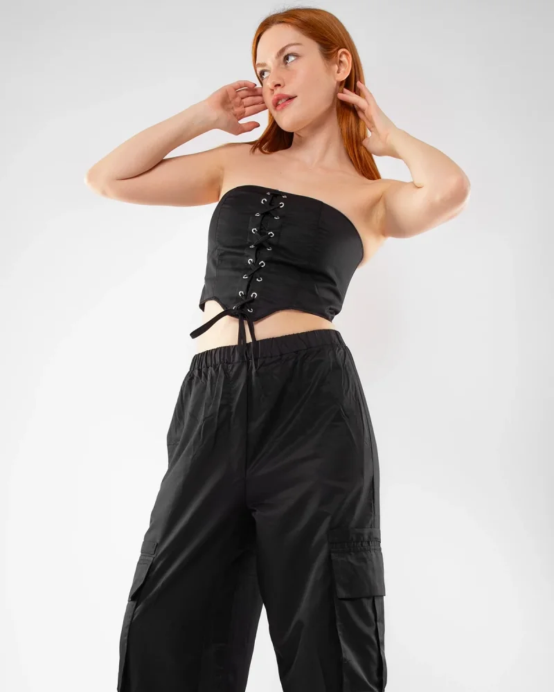 Bağlama Detaylı Siyah Büstiyer Takım