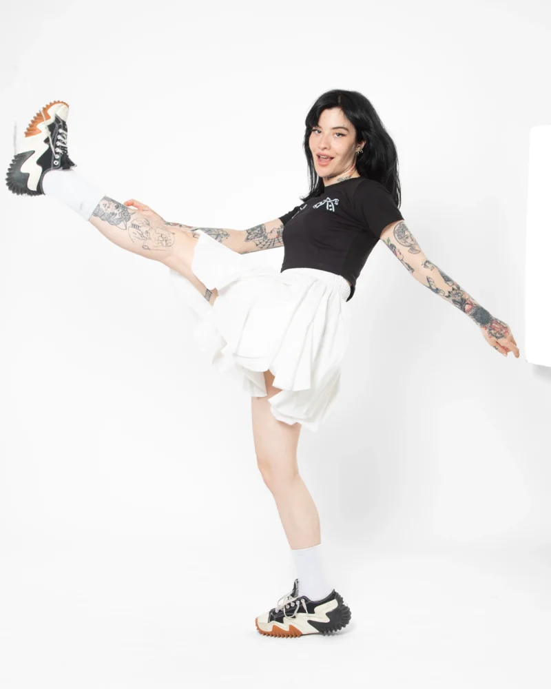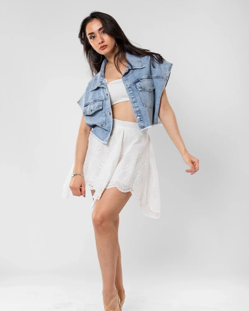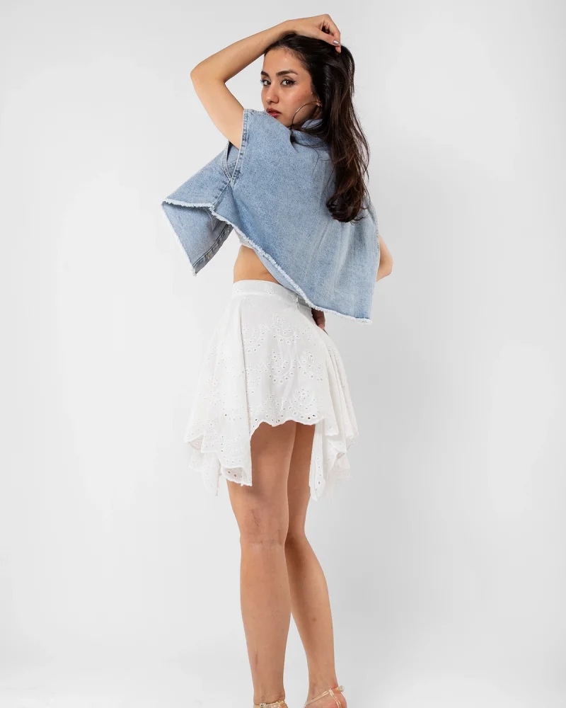 Dantel Detaylı Çapraz Kesim Beyaz Etek
