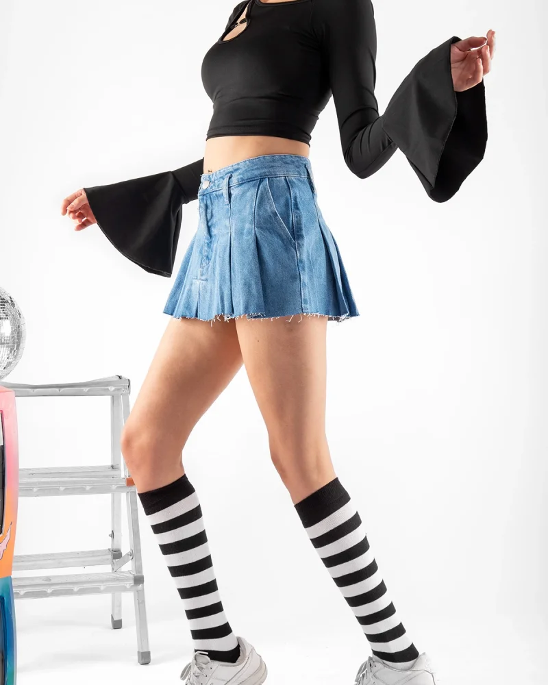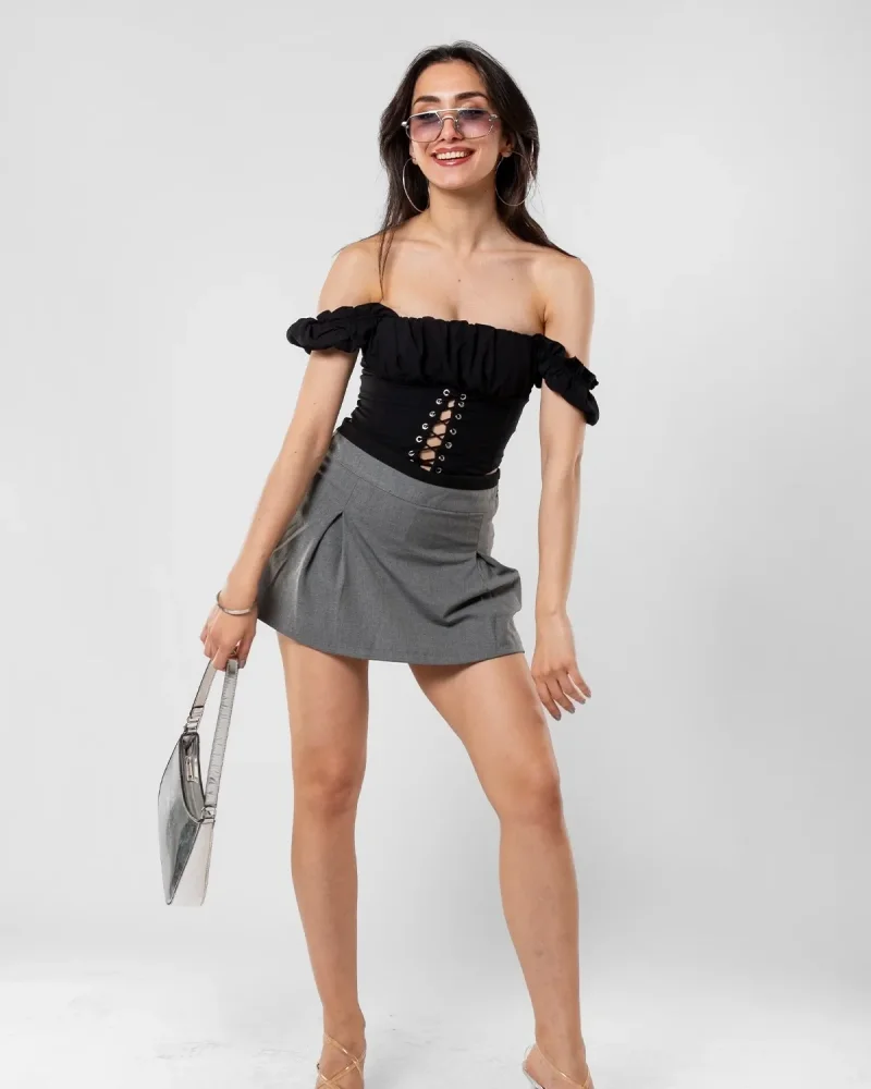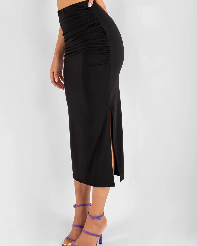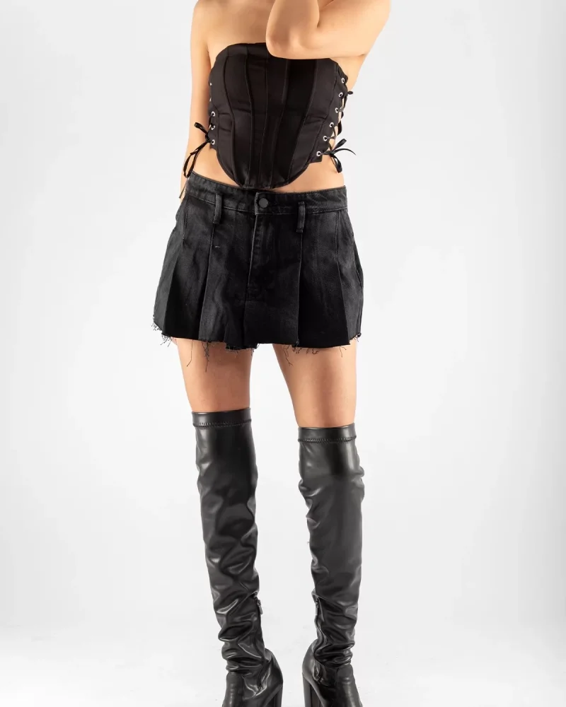 Yırtmaç Detaylı Straplez Etek Siyah Takım