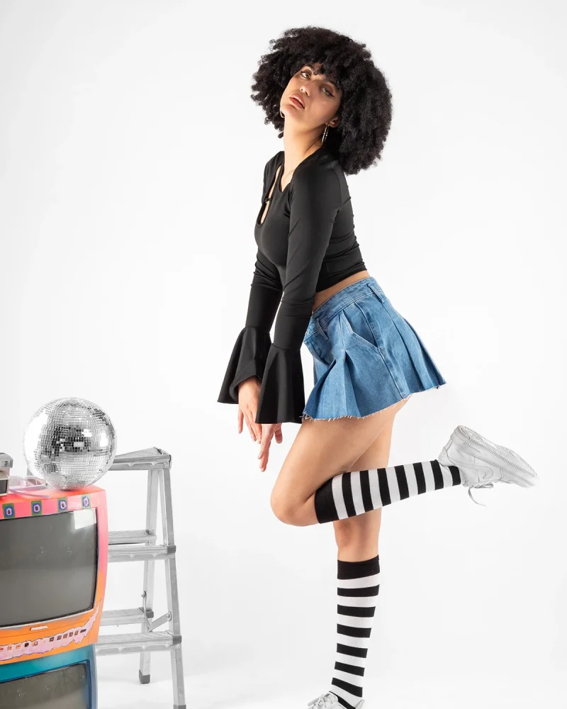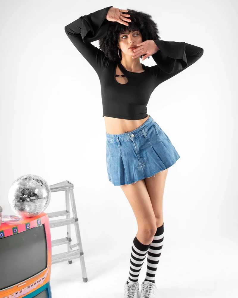 Ters Dikiş Detay Siyah Mini Kaşkorse Elbise
