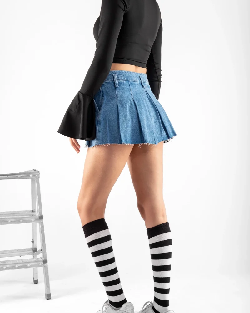Ters Dikiş Detay Lacivert Mini Kaşkorse Elbise
