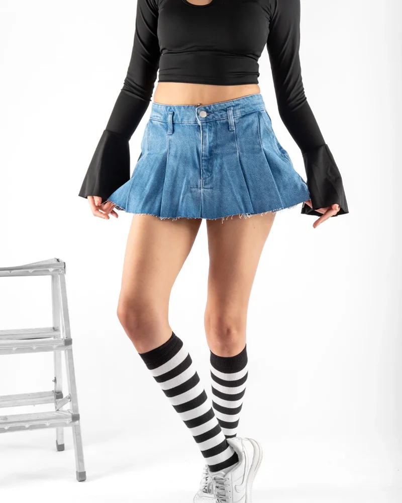Kalp Nakış Detaylı Açık Kar Yıkama Buz Mavisi Kot Şort