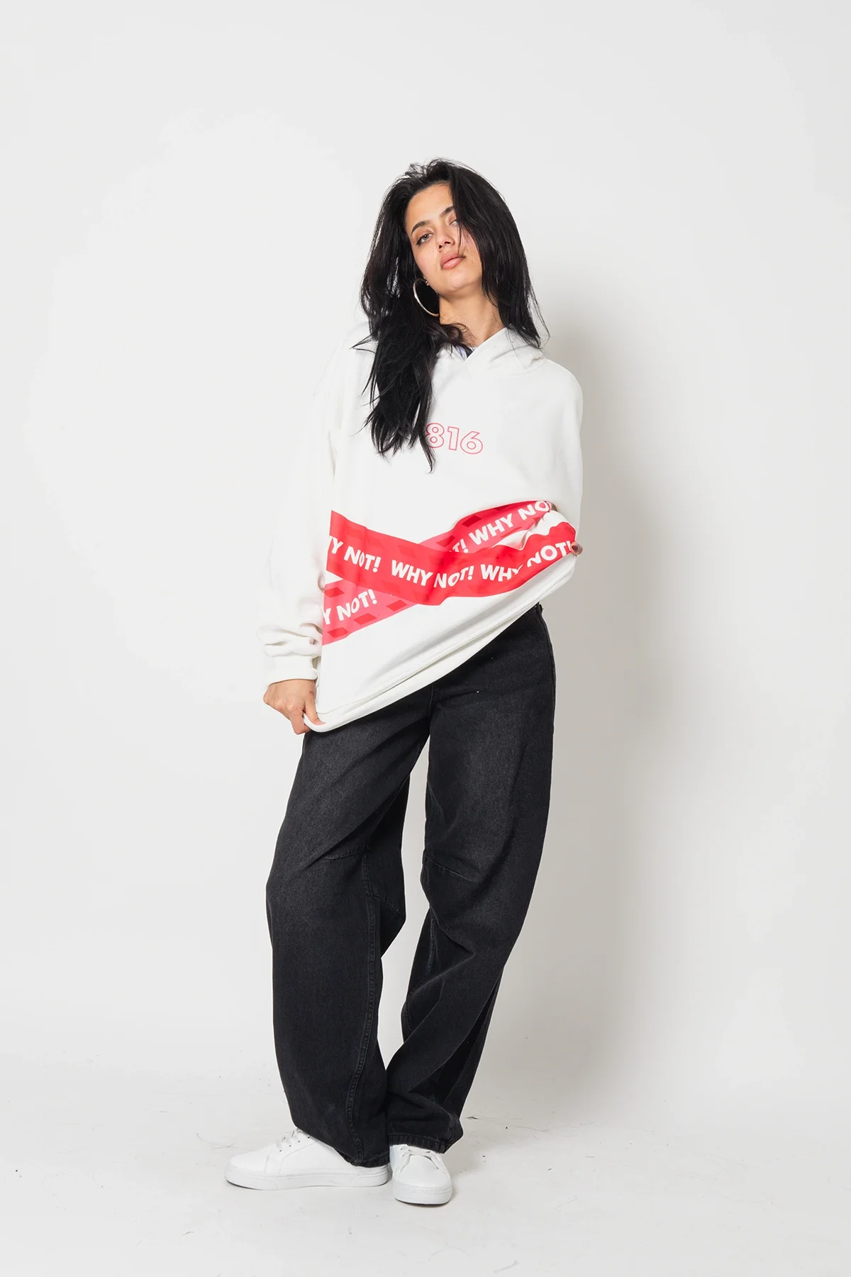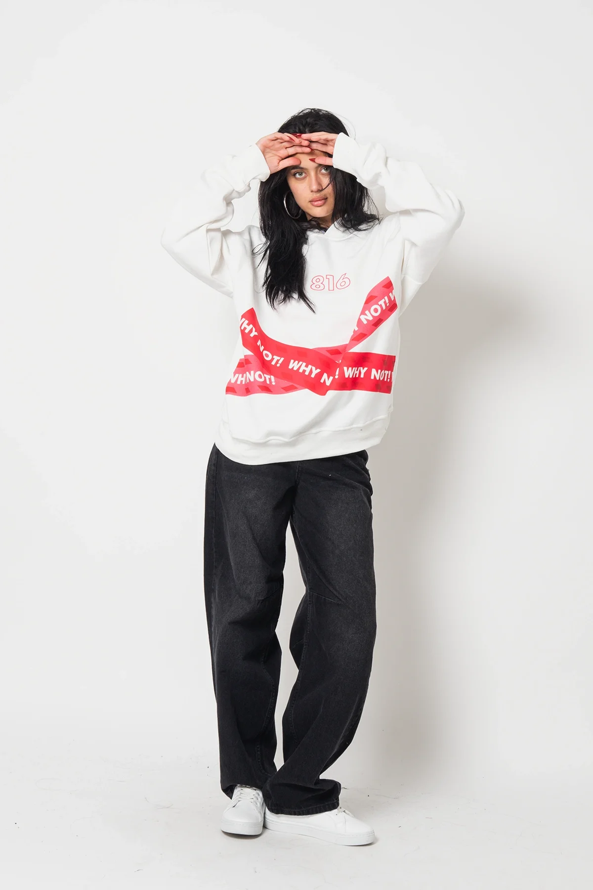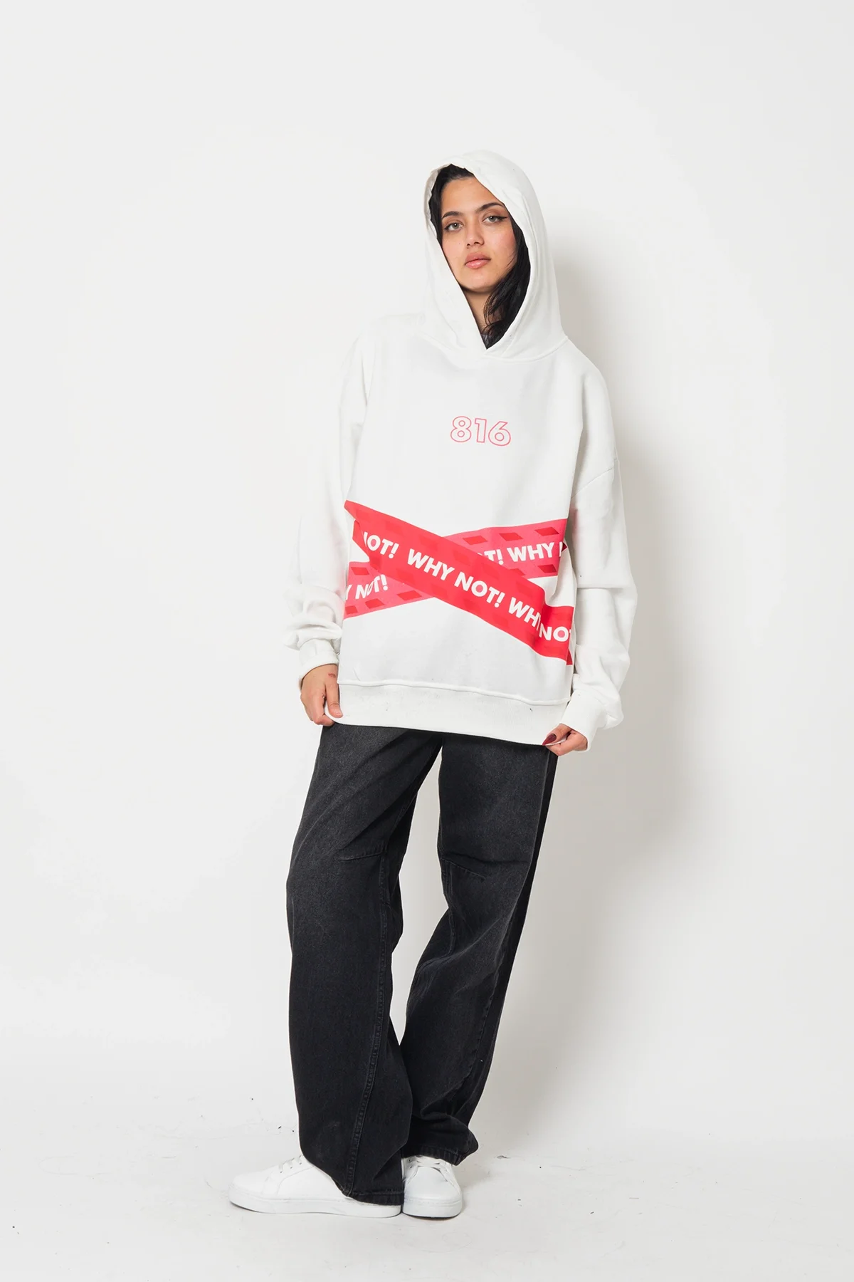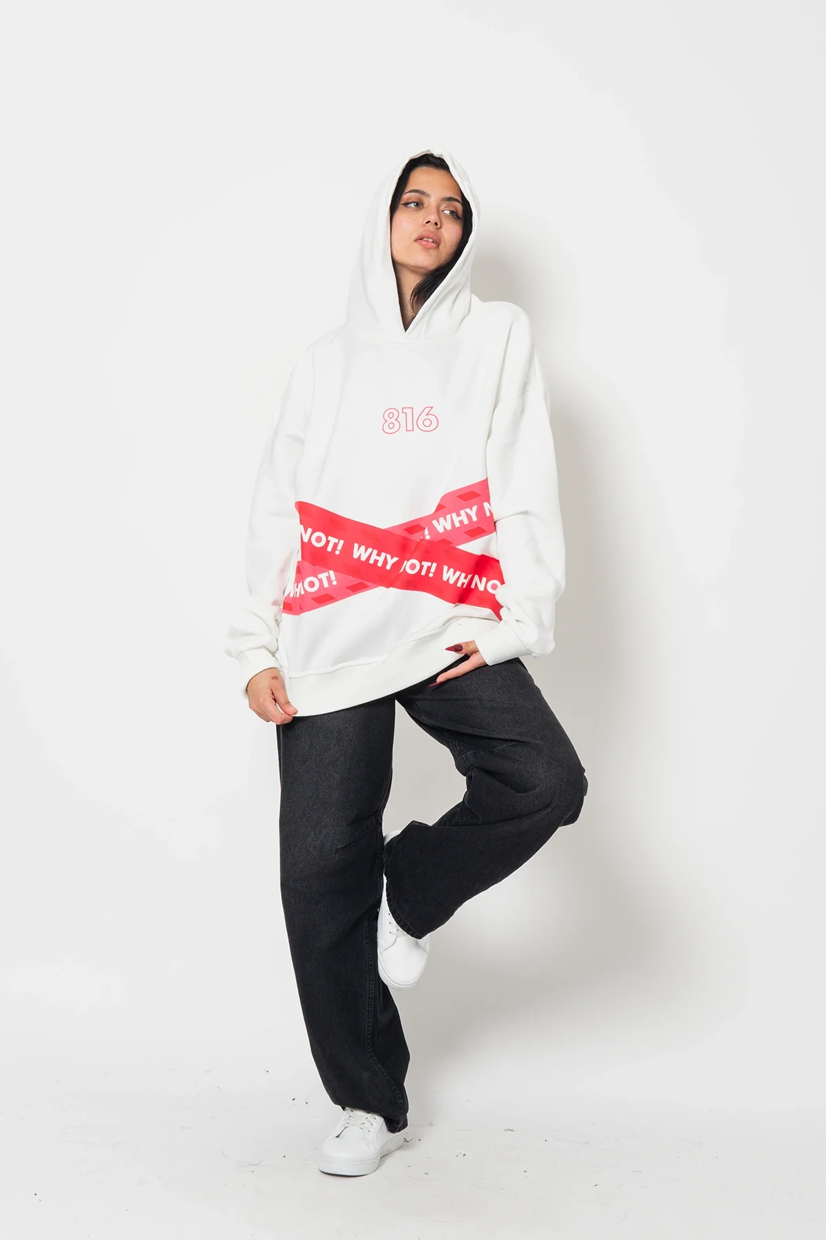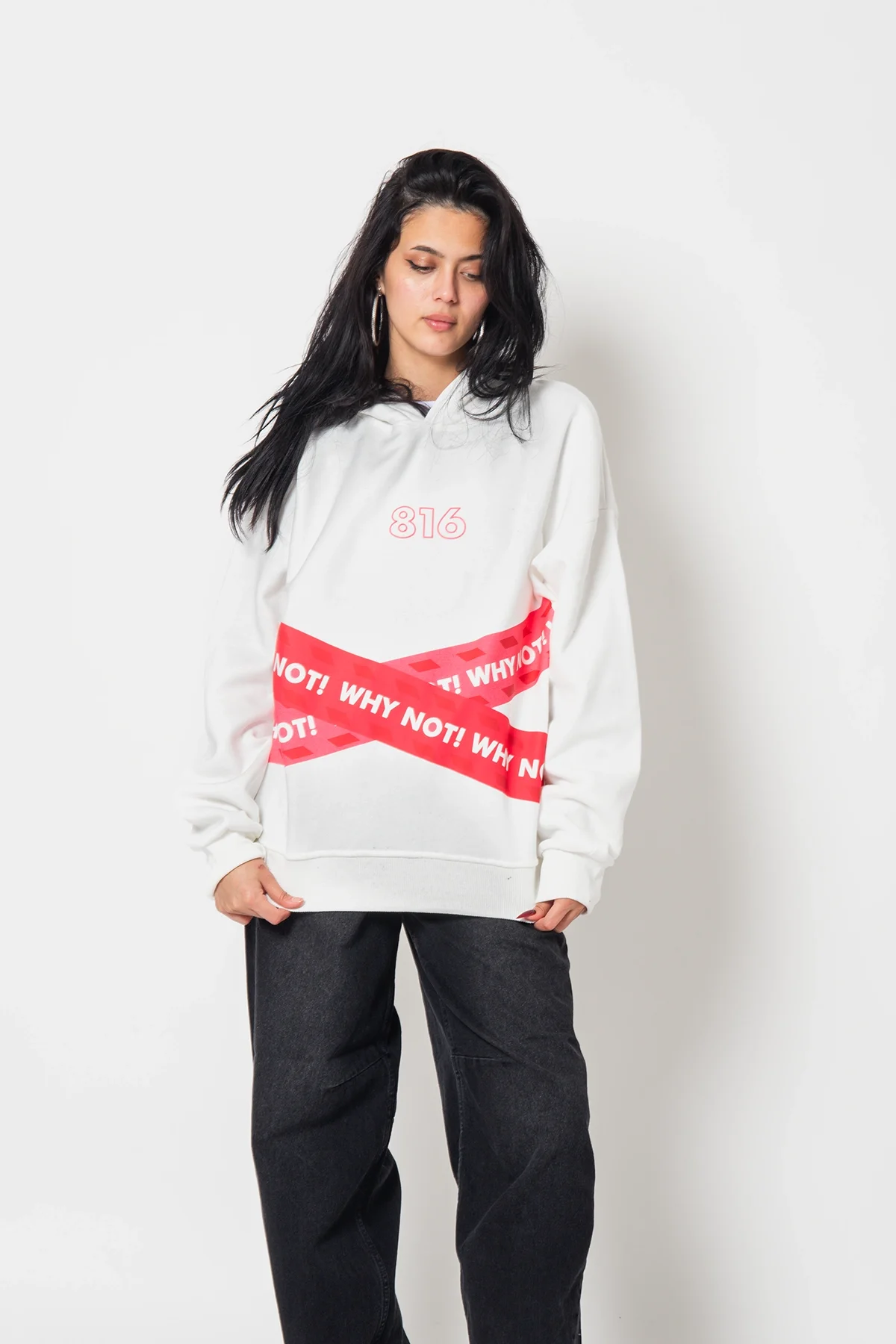 WHY NOT V2 PİNK BASKILI OVERSİZE UNİSEX PREMİUM BEYAZ HOODİE