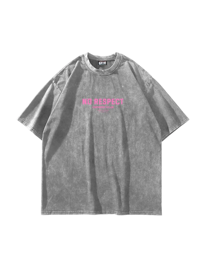 No Respect Baskılı Oversize Unisex Yıkamalı Siyah Tshirt