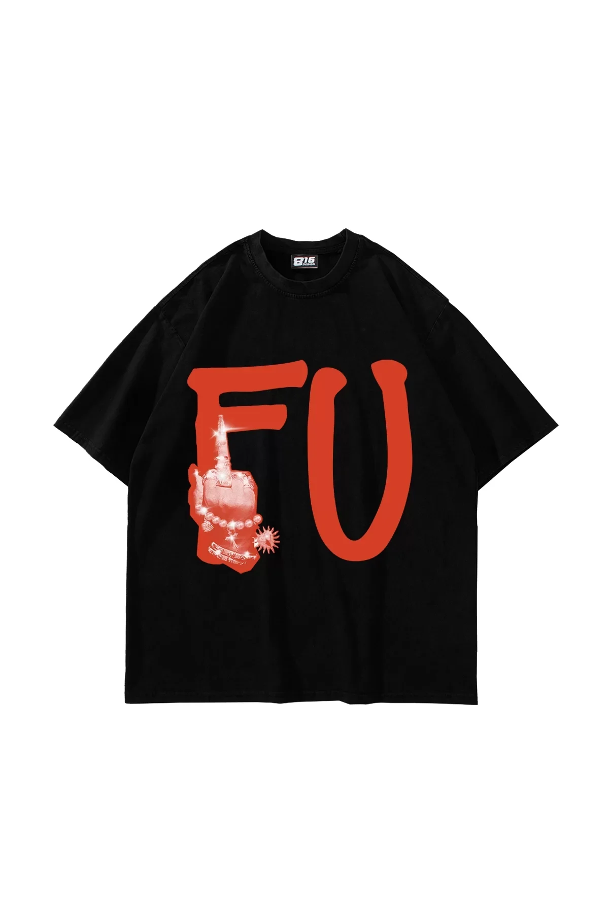 FU. Baskılı Baskılı Oversize Unisex Siyah Tshirt, tarzınızı yansıtmak isteyenler için ideal bir seçenektir.