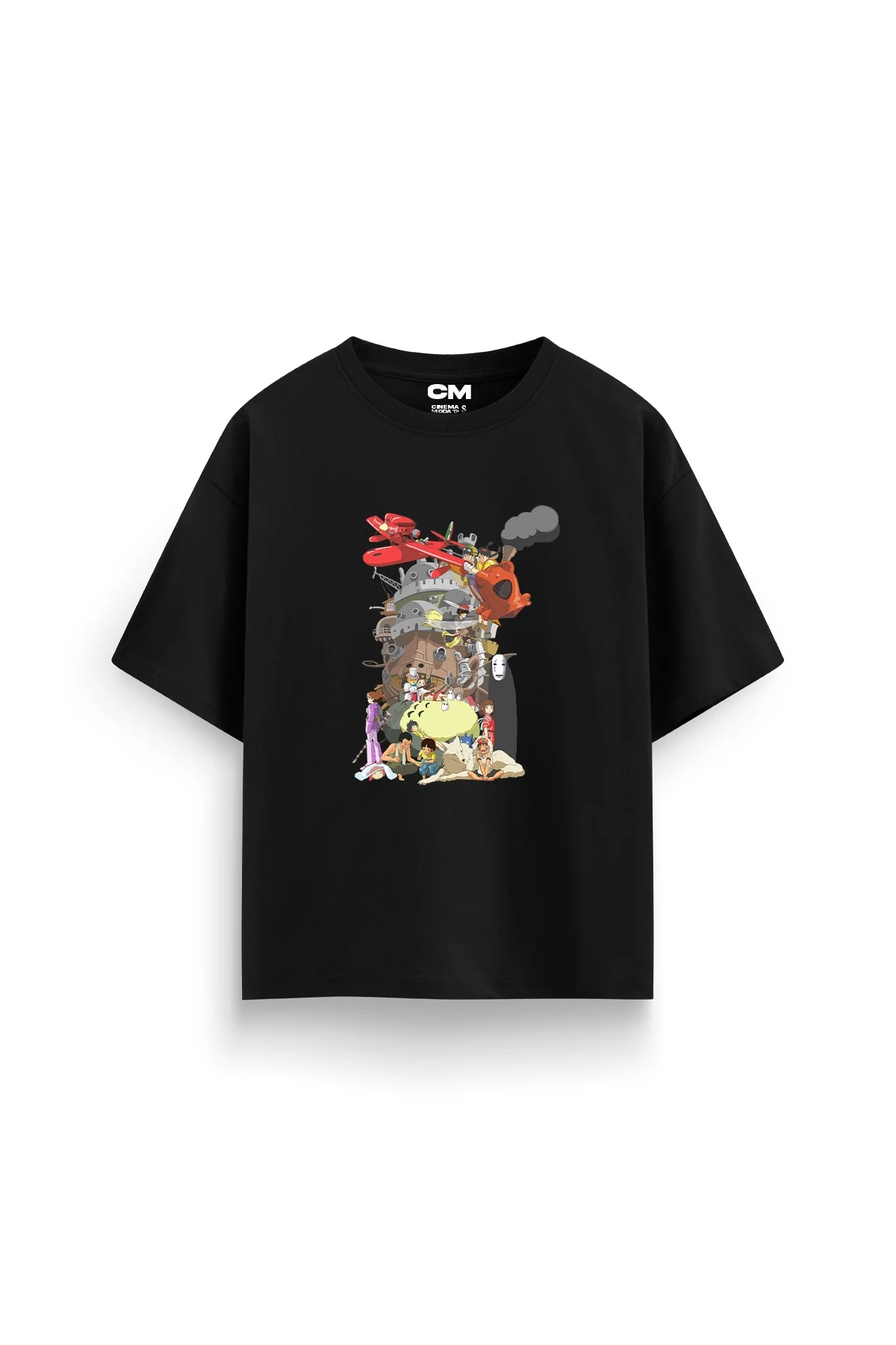 Ghibli Dreams ruhunu yansıtan Bak Moda rahat kalıp 30/1 unisex siyah tshirt, tarzınıza şıklık katmaya hazır!