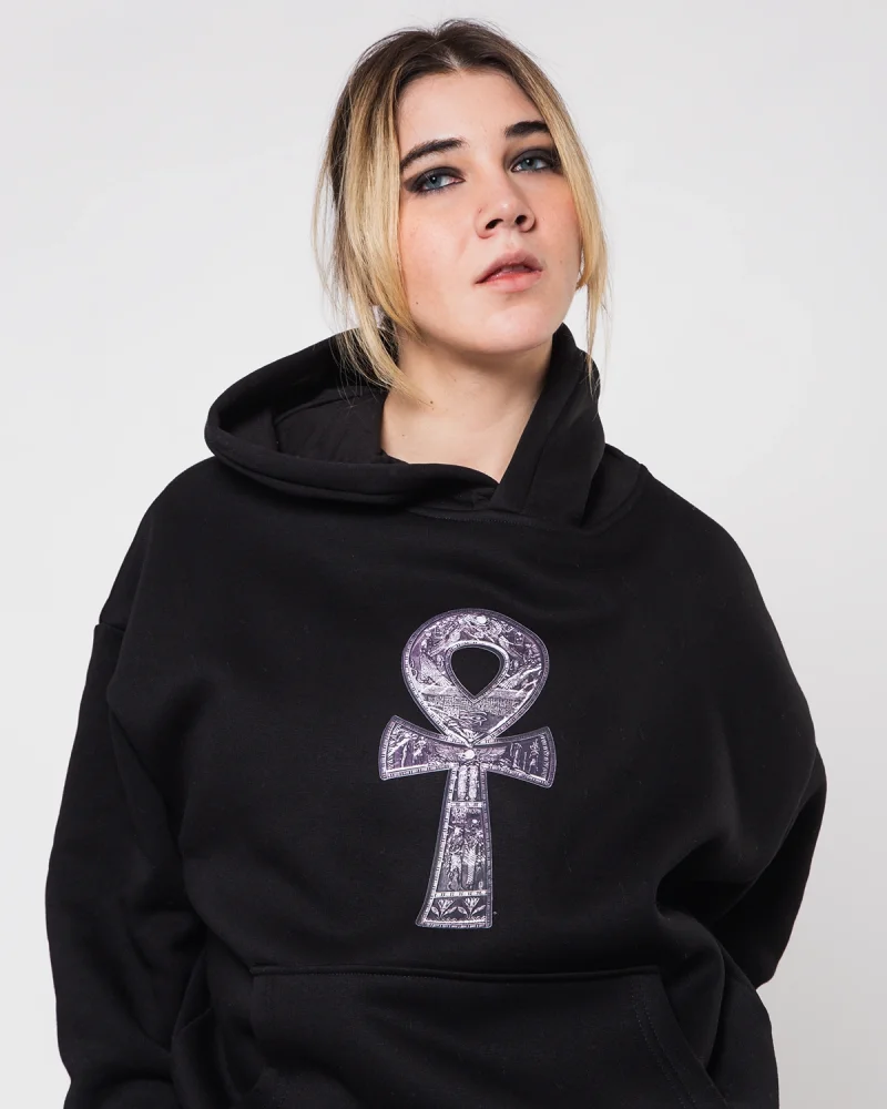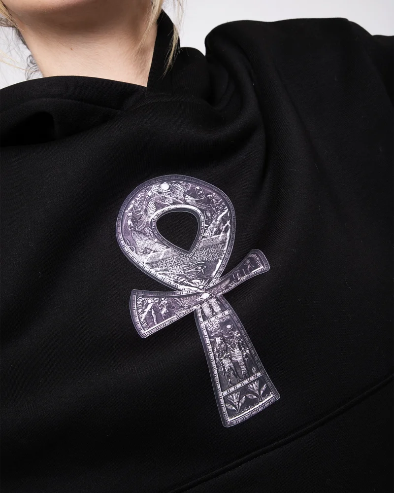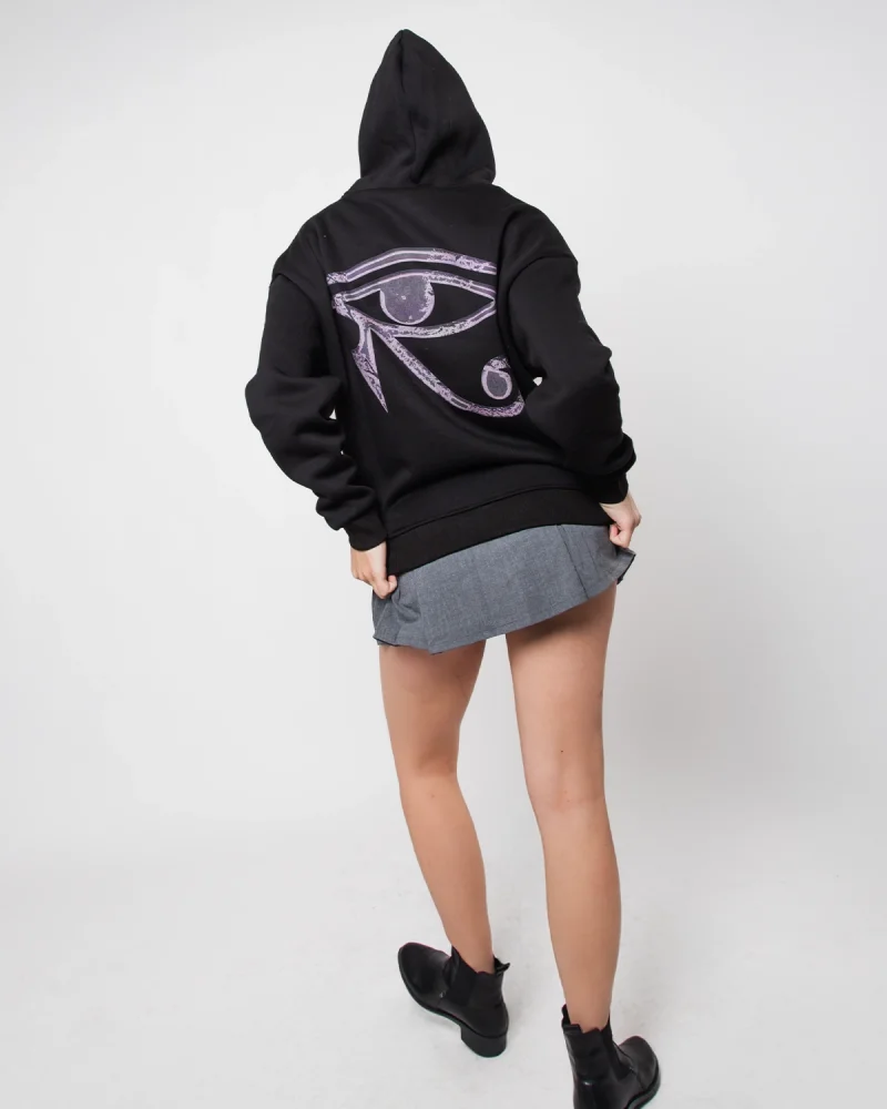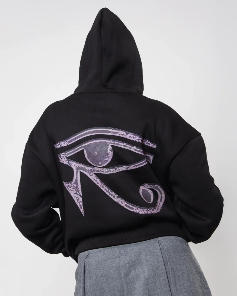 Eye Of Horus Baskılı Oversize Unisex Siyah Hoodie