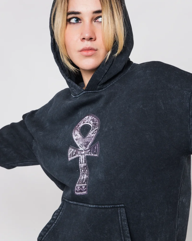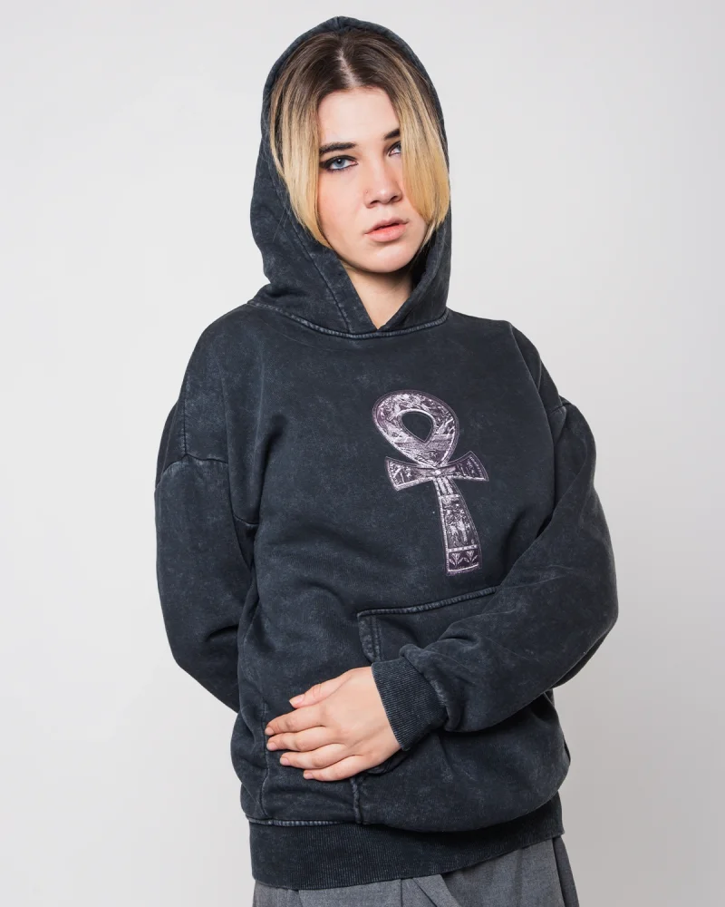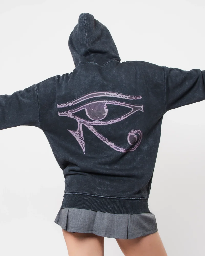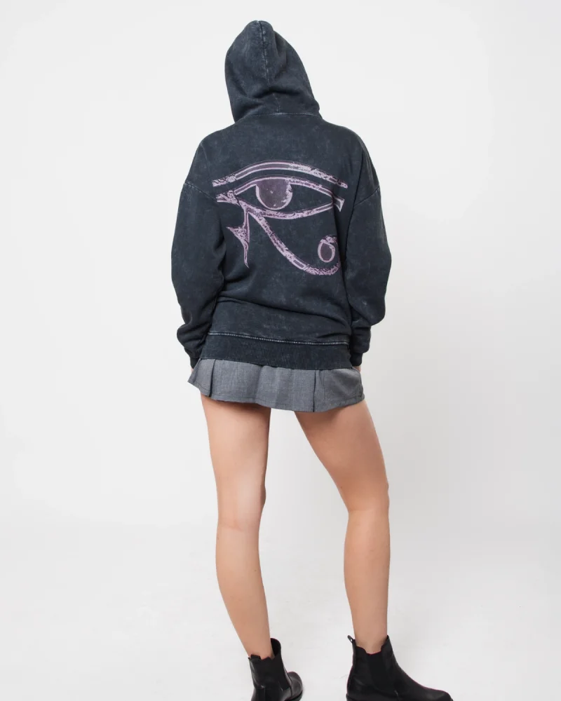 Eye Of Horus Baskılı Oversize Unisex Yıkamalı Siyah Hoodie