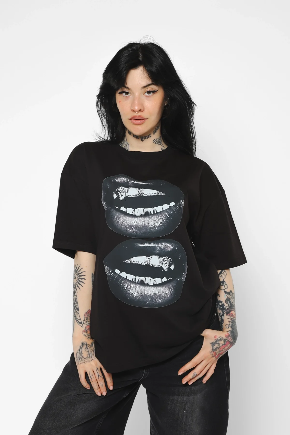 Lip Teeths Baskılı Oversize Unisex Siyah Tshirt, Bak Moda güvencesiyle Giyim > Tshirt kategorisinde sizlerle buluşuyor.