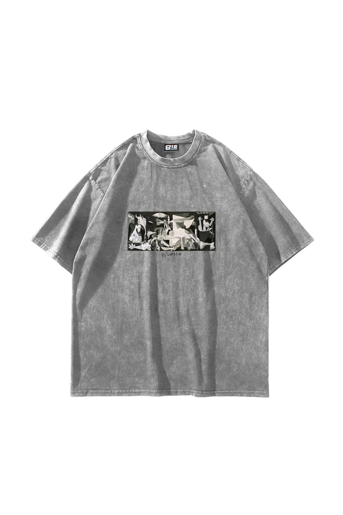 Picasso Guernica baskılı oversize unisex yıkanmış beyaz tshirt ile sokak modasına uyum sağlayın, Bak Moda kalitesiyle şıklığı keşfedin!