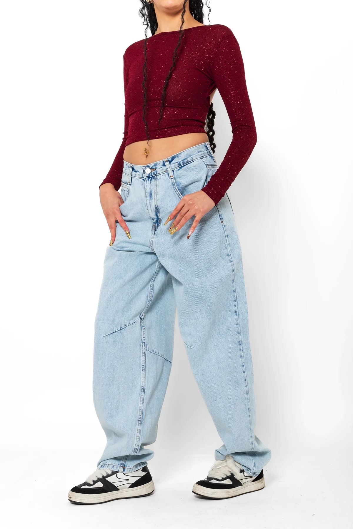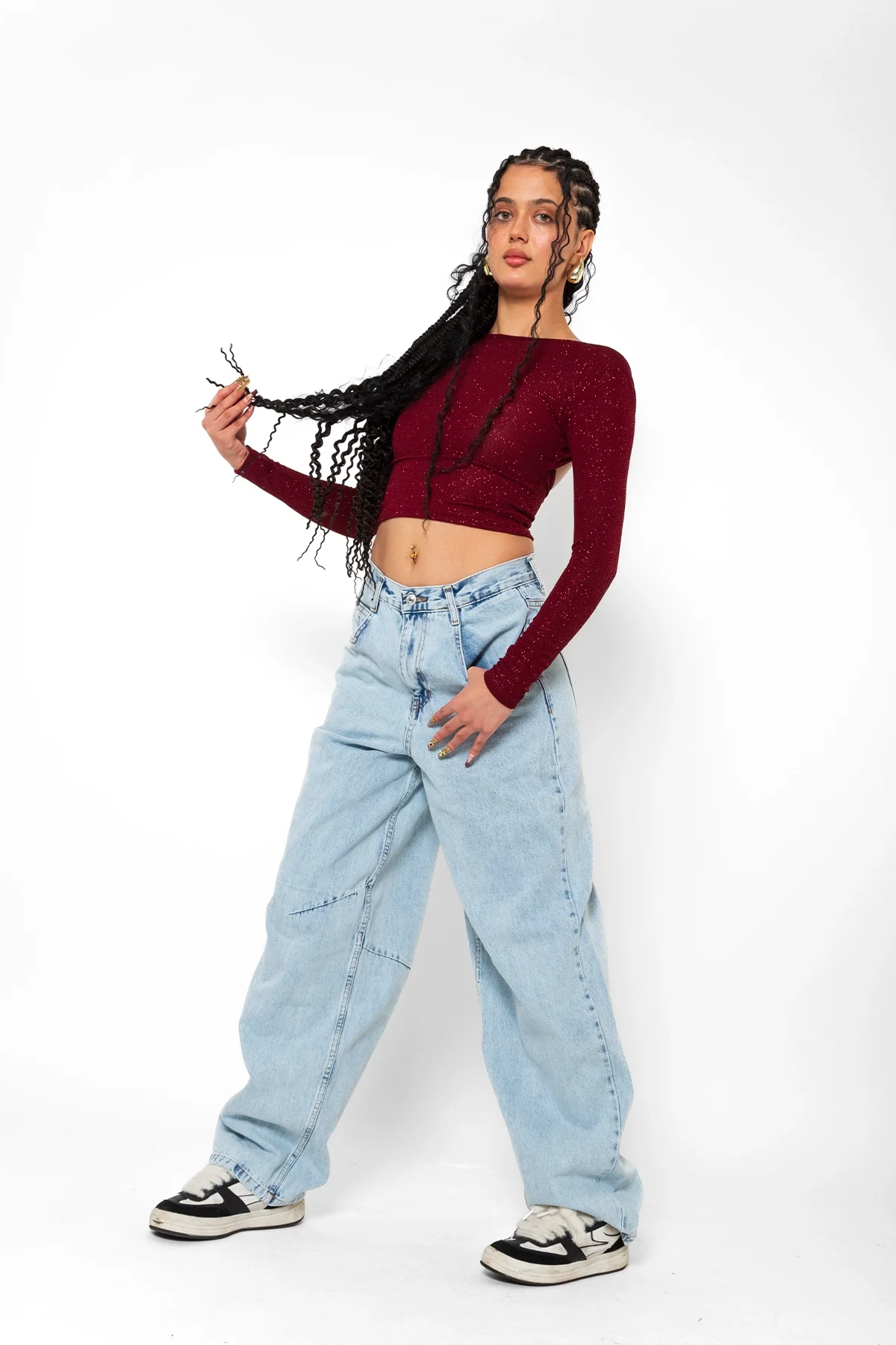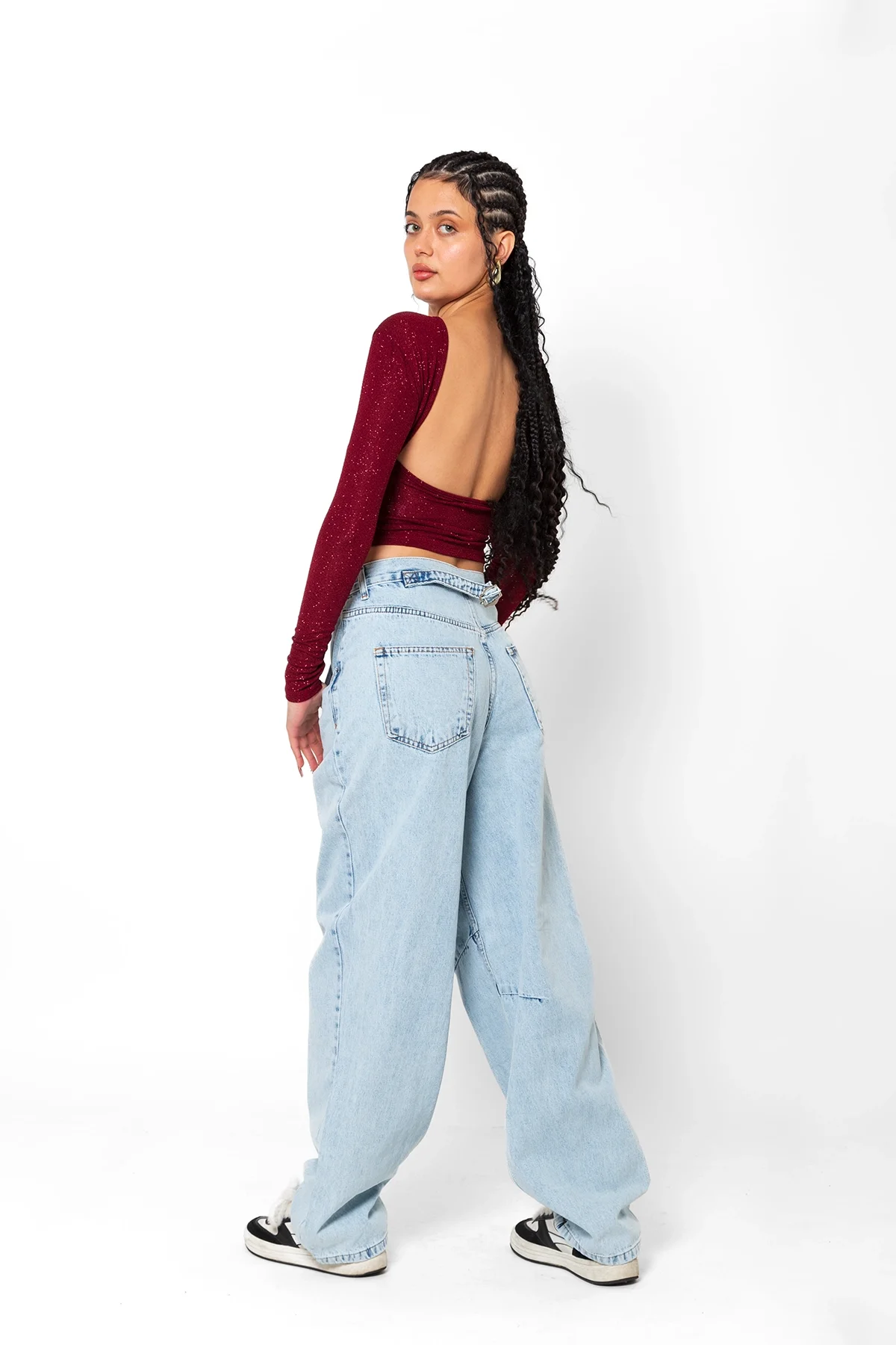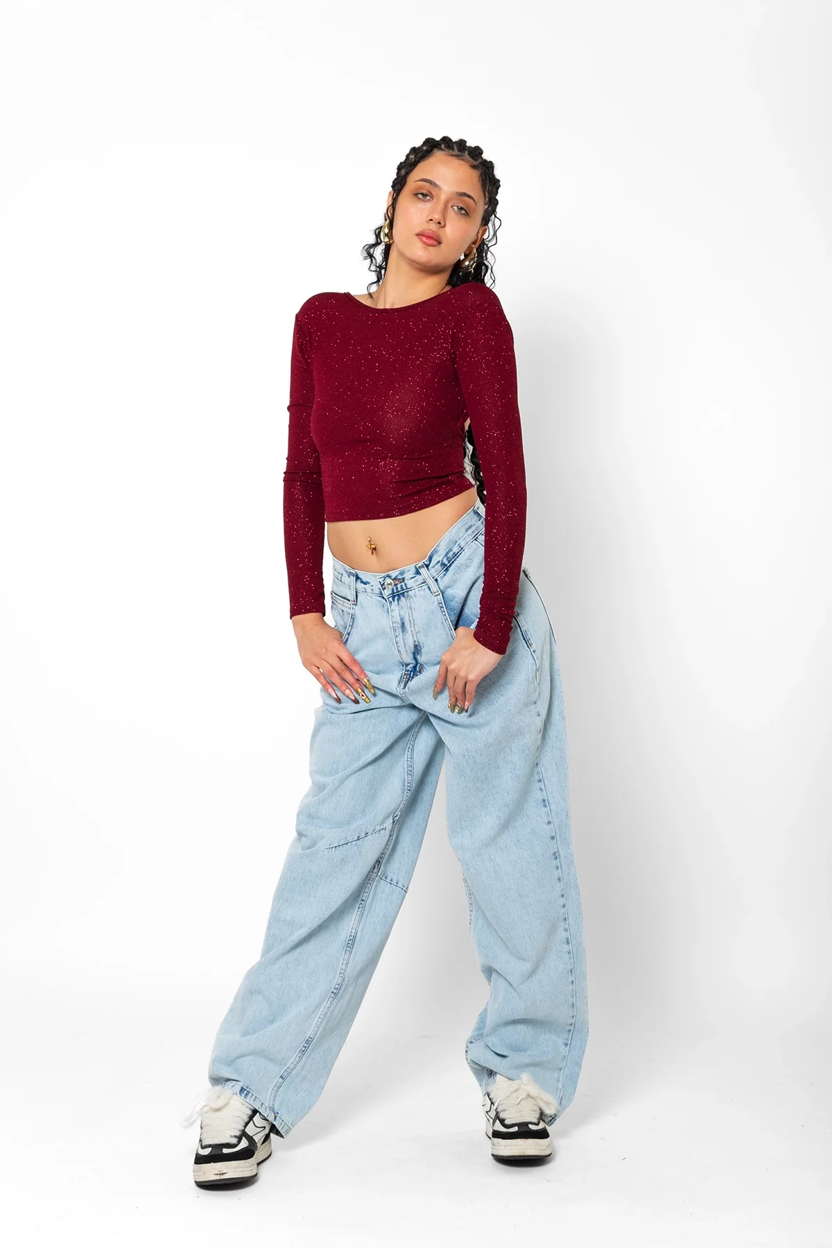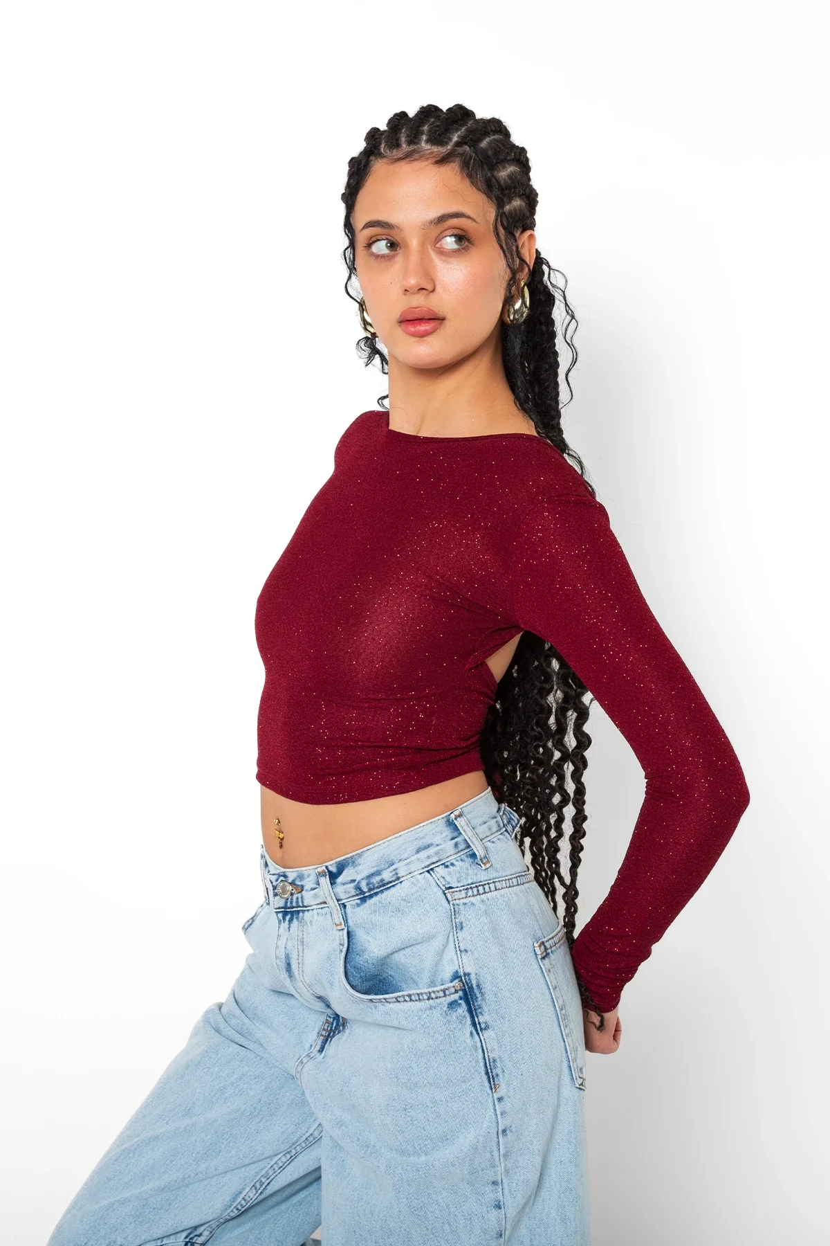 SIRT DEKOLTELİ SİMLİ BORDO CROP