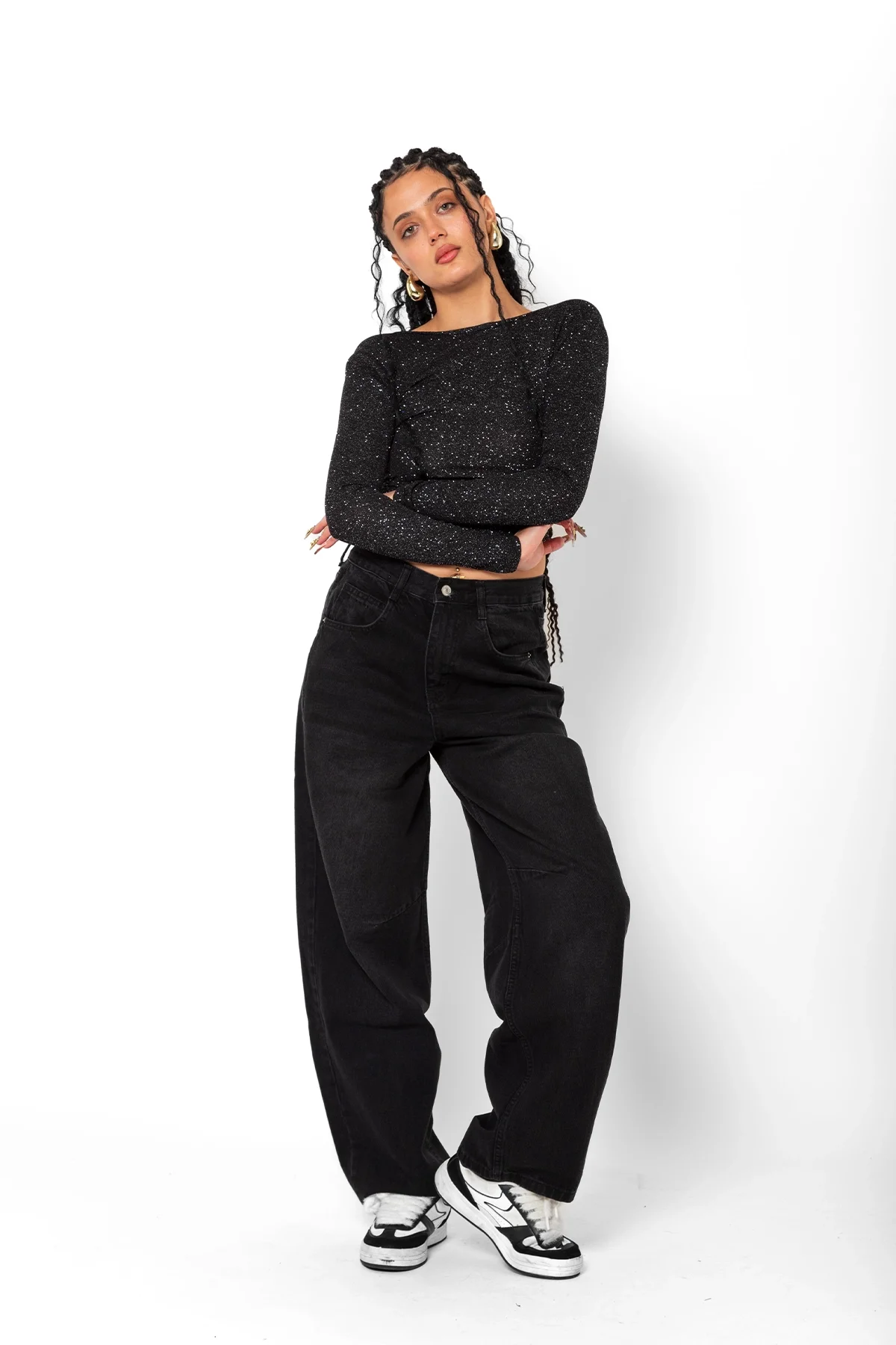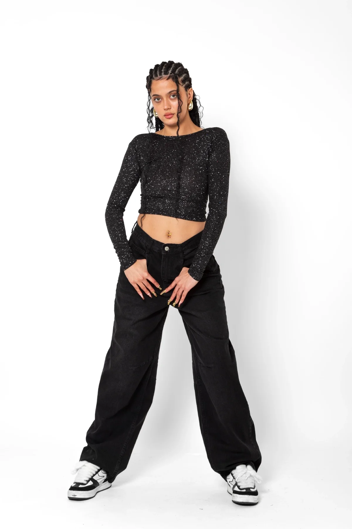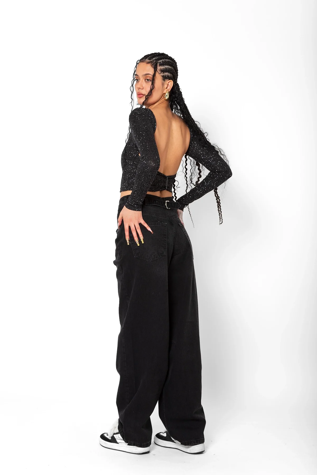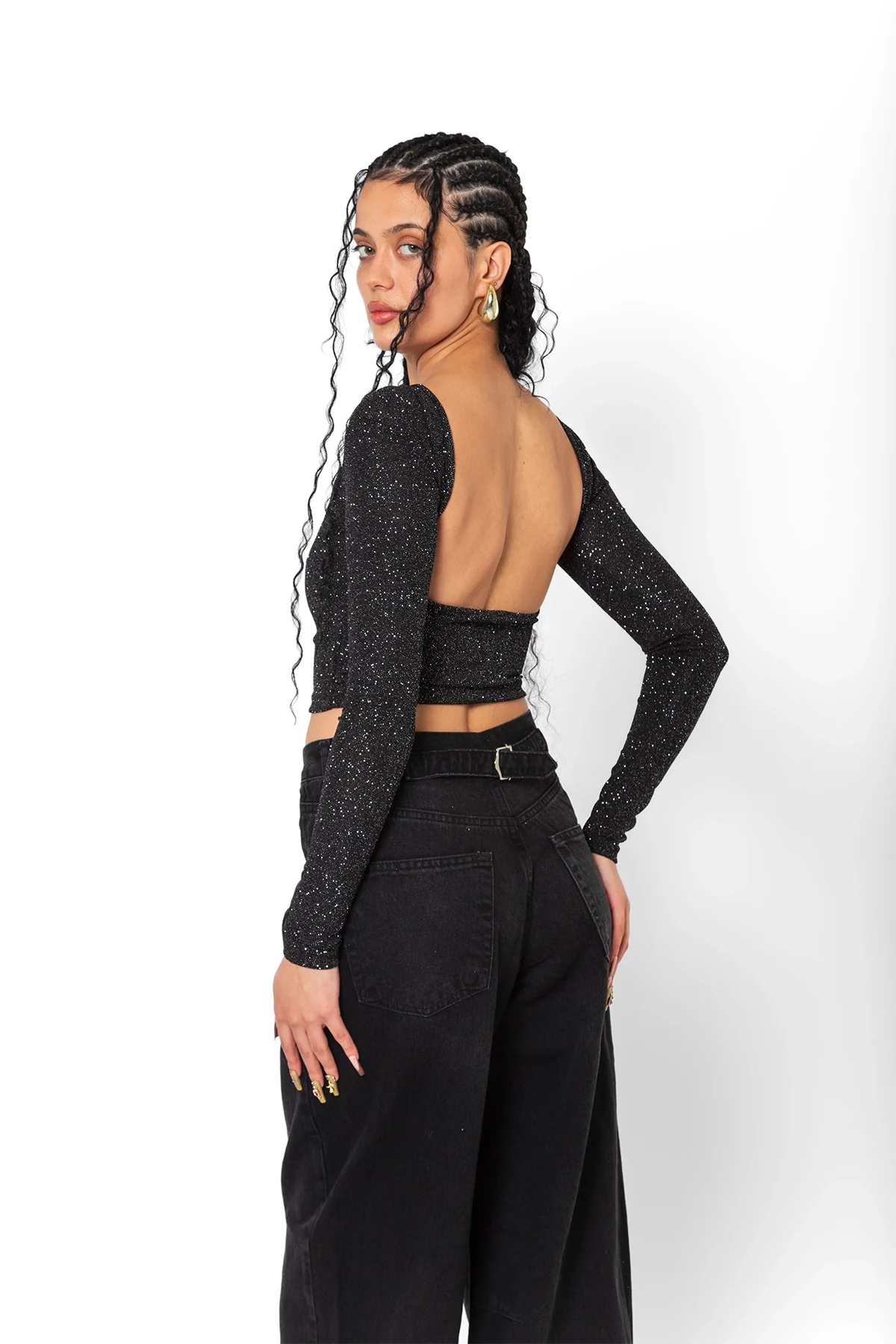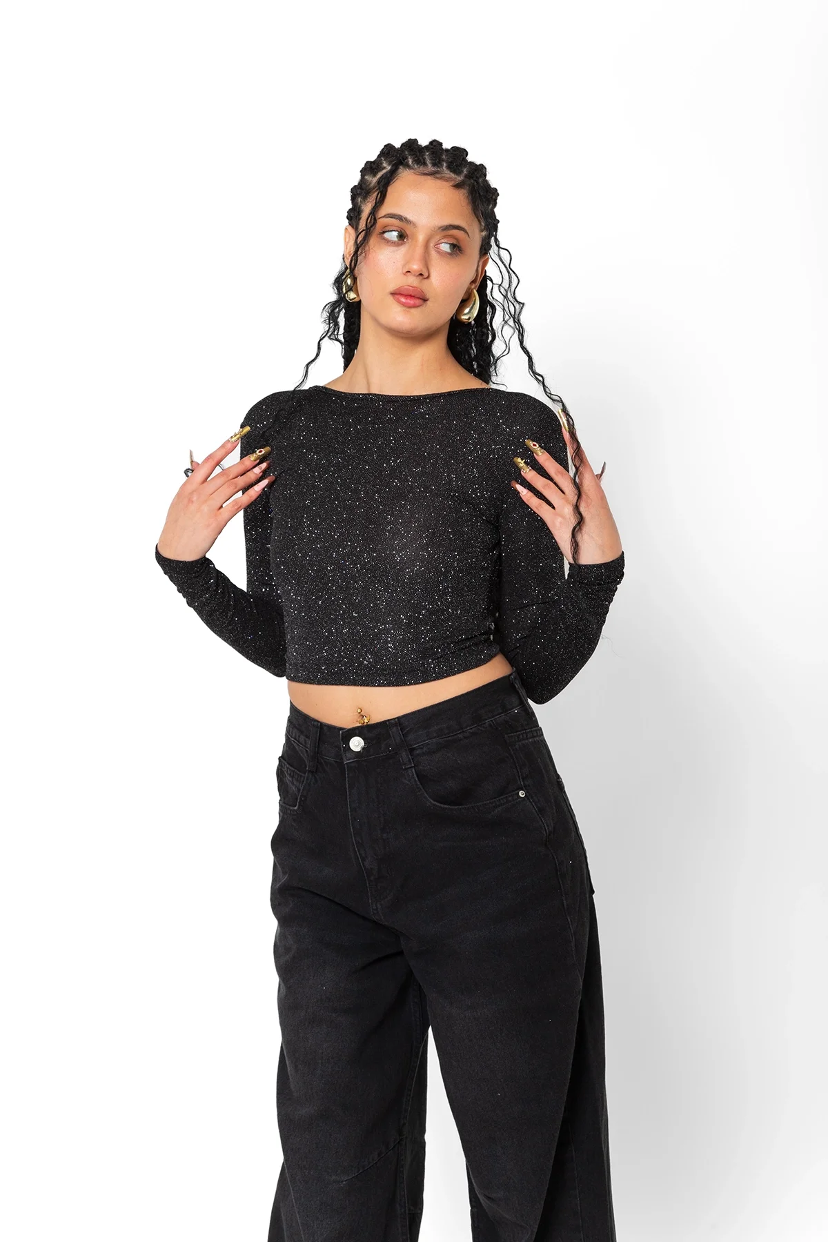 SIRT DEKOLTELİ SİMLİ SİYAH CROP