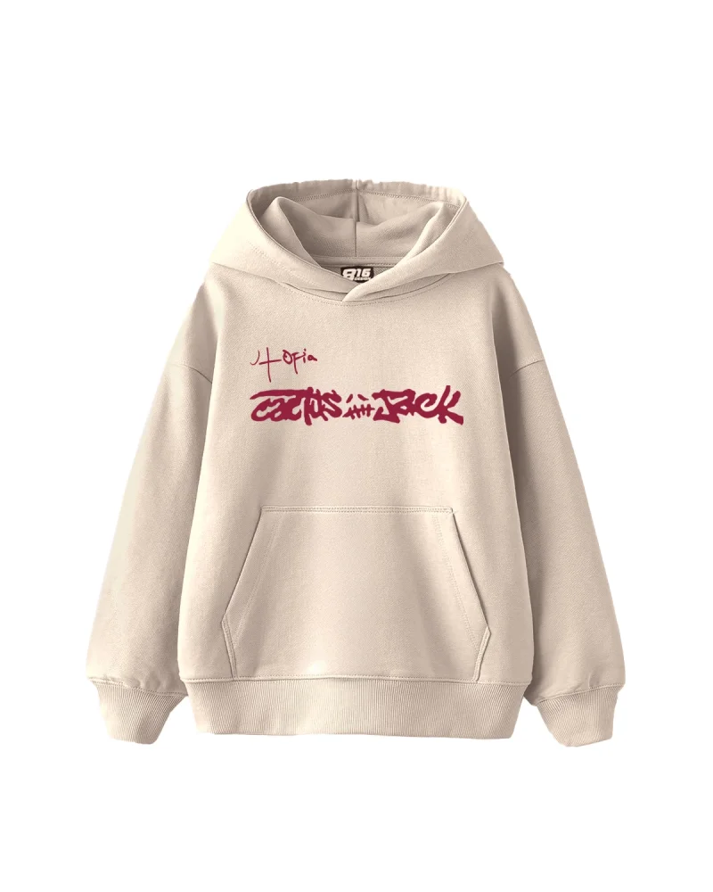 Utopia Cactus Jack Baskılı Oversize Unisex Bej Hoodie