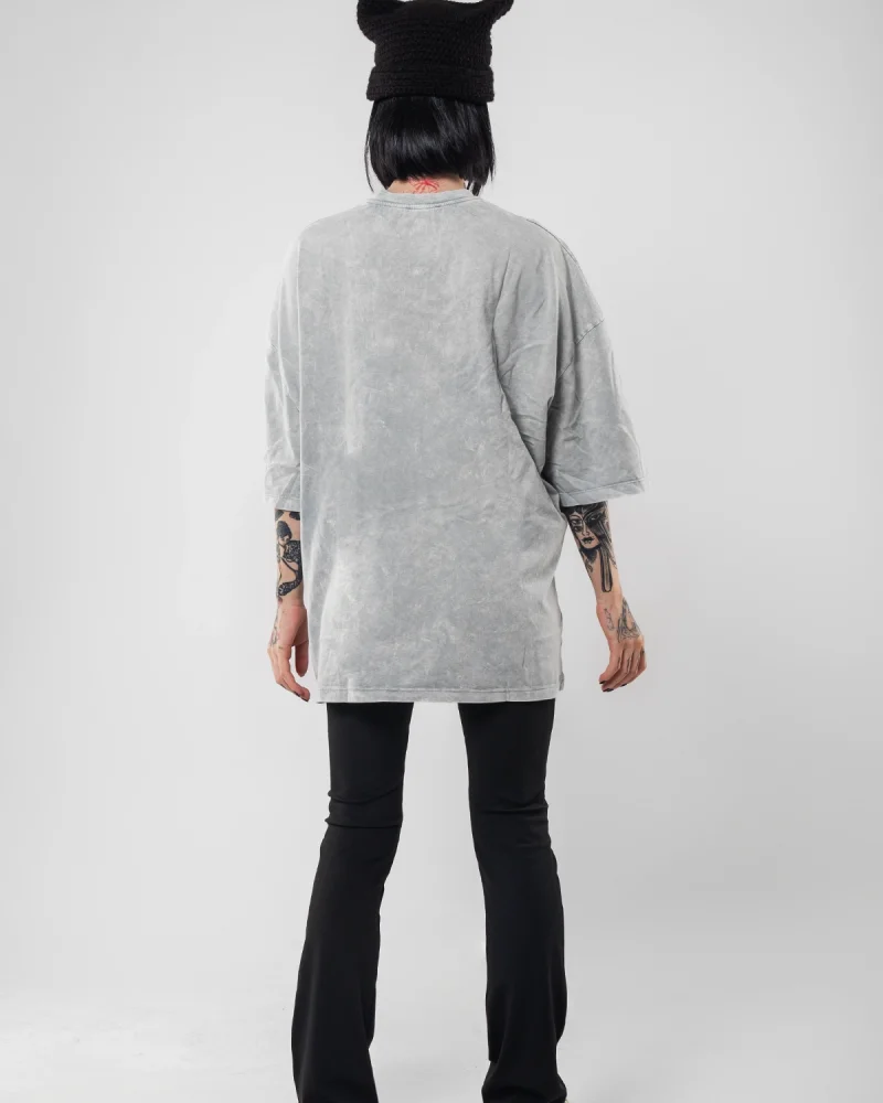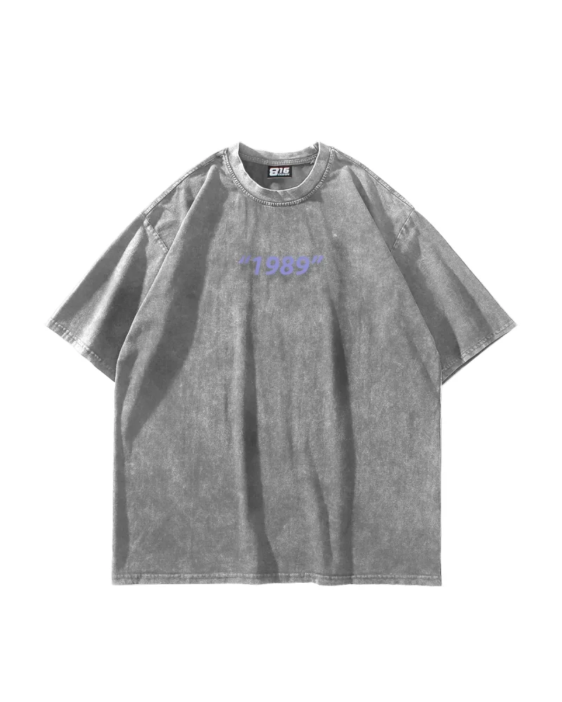 Yıkamalı Siyah 1989 Sırt Baskılı Oversize Unisex Tshirt